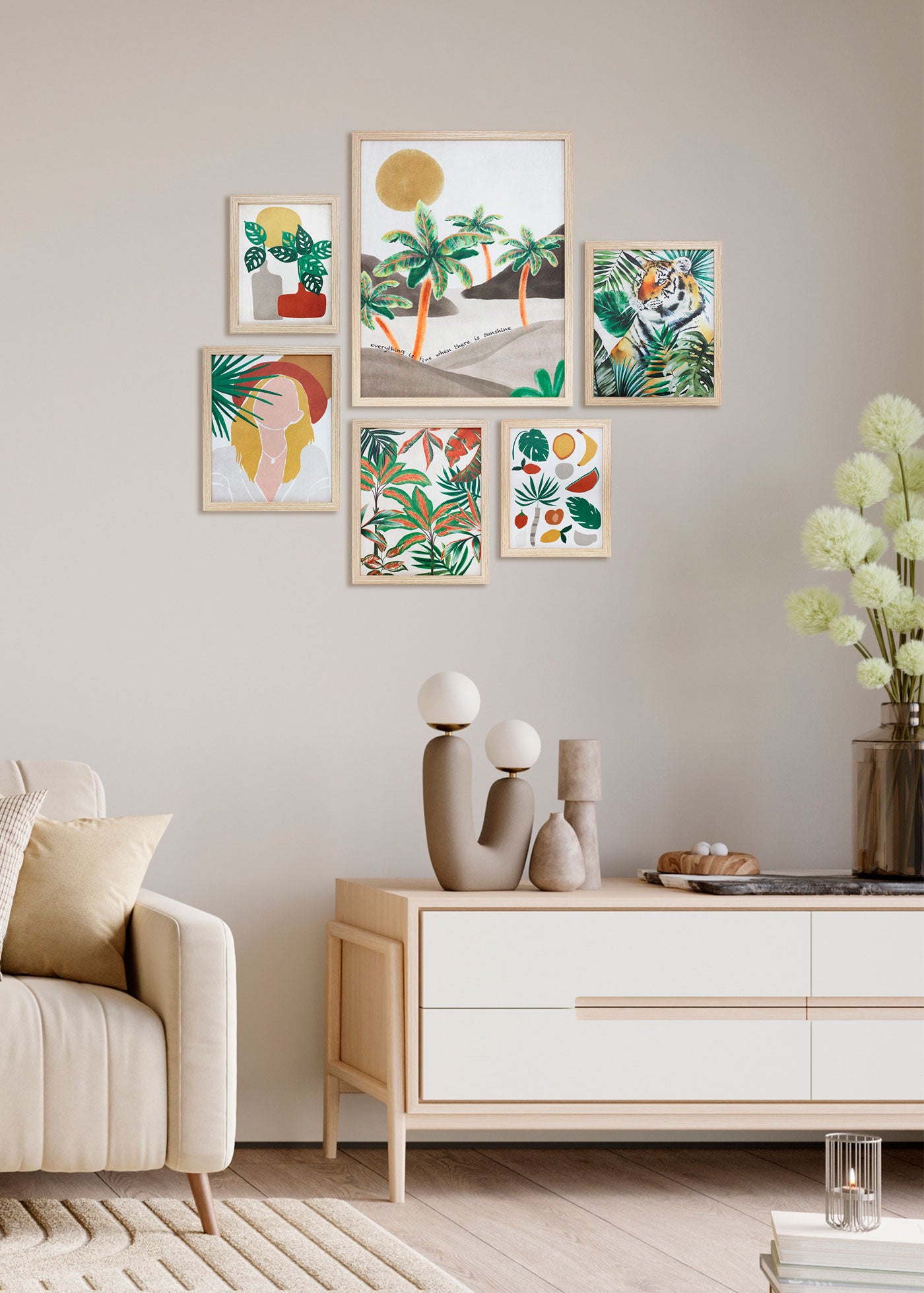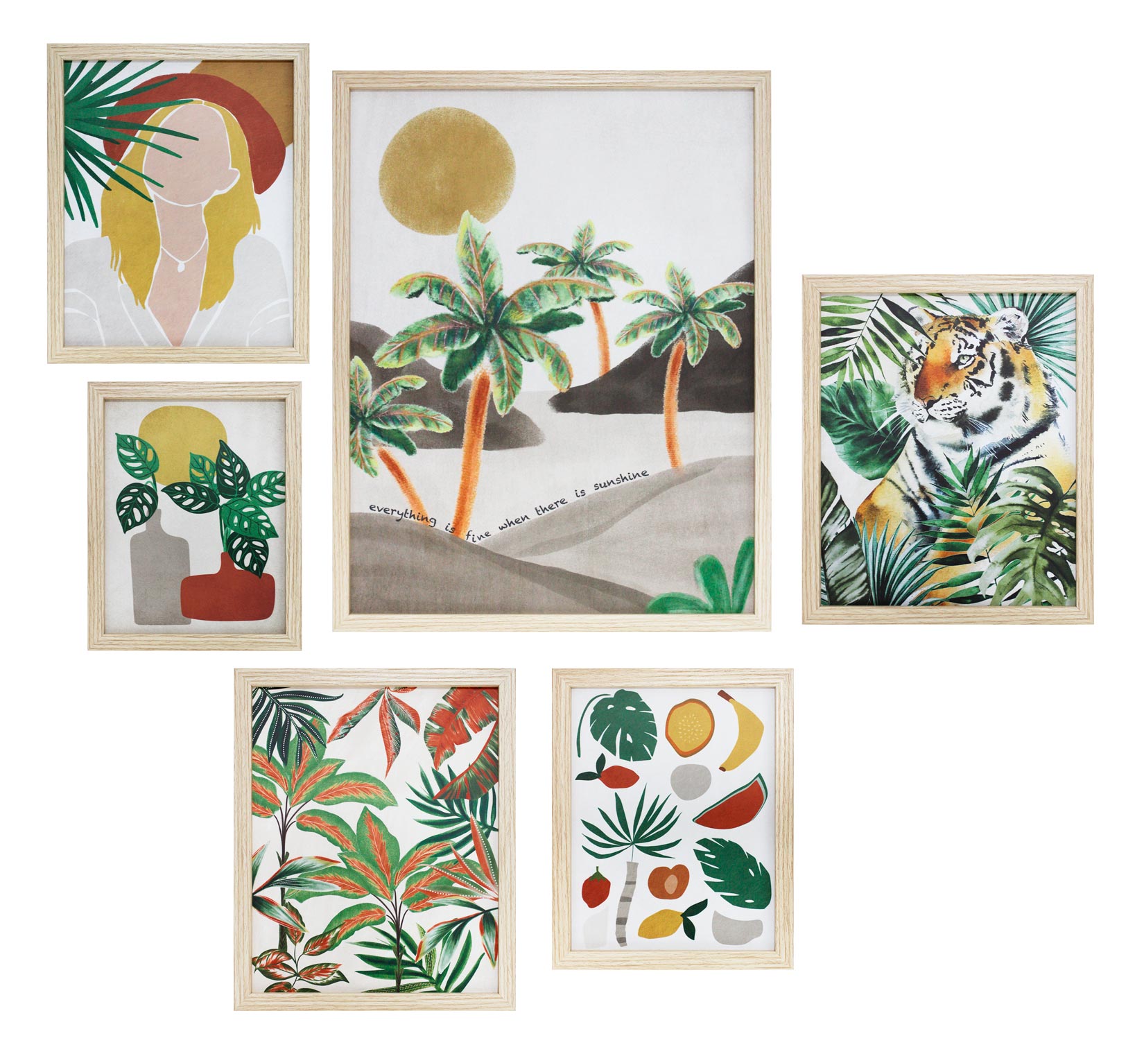 Este set de seis lienzos en poliéster con diseño botánico es una opción versátil y elegante para decorar grandes espacios con un toque orgánico. La impresión con tinta al agua realza cada detalle natural, mientras que los marcos en MDF con acabado madera natural aportan calidez y sofisticación.