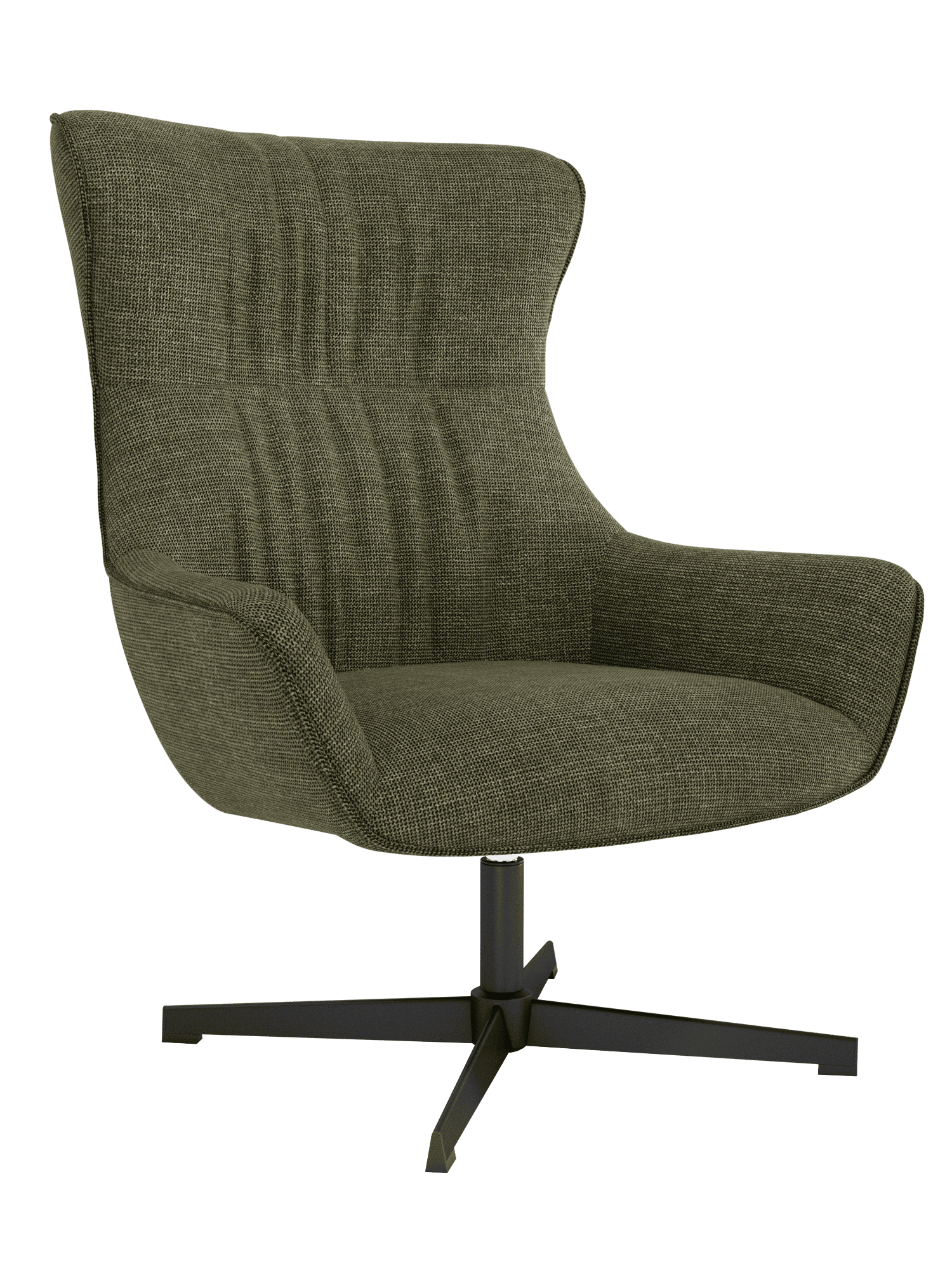 Diseñada para destacar en cualquier ambiente, la butaca BERMUZA ofrece una silueta elegante con respaldo envolvente y detalles de costura que realzan su forma. Gracias a su base giratoria negra, proporciona libertad de movimiento sin renunciar al estilo. Ideal para hogares, despachos o zonas lounge.