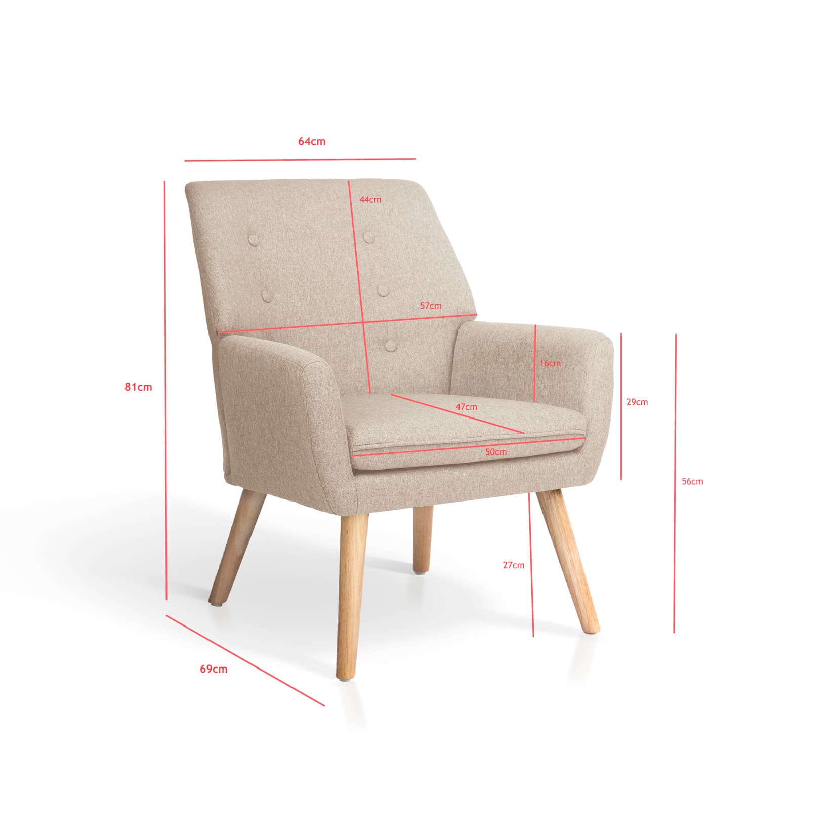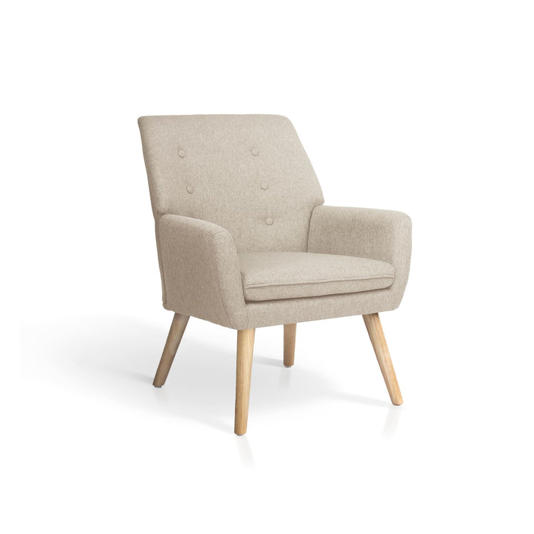 El sillón TALAIASSA destaca por su diseño versátil y actual. Tapizado en tela moteada color arena o gris, incorpora un respaldo decorado con botones y cremallera trasera como detalle distintivo. Incluye un cojín desmontable que suma confort y cuenta con patas de madera natural que aportan calidez al conjunto. Es cómodo, funcional y fácil de montar, ideal para cualquier ambiente del hogar.