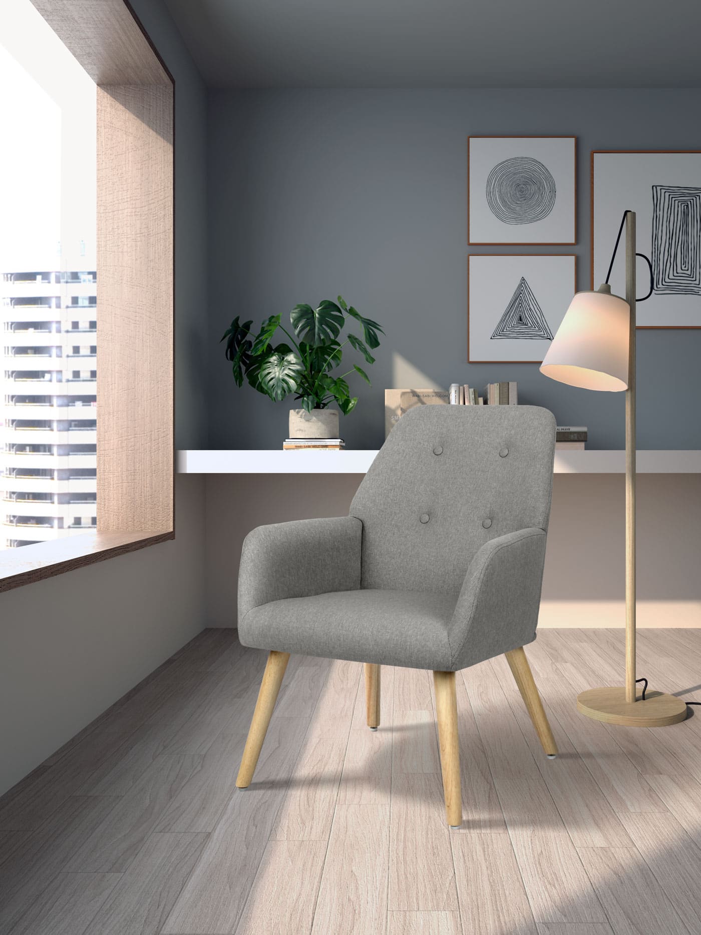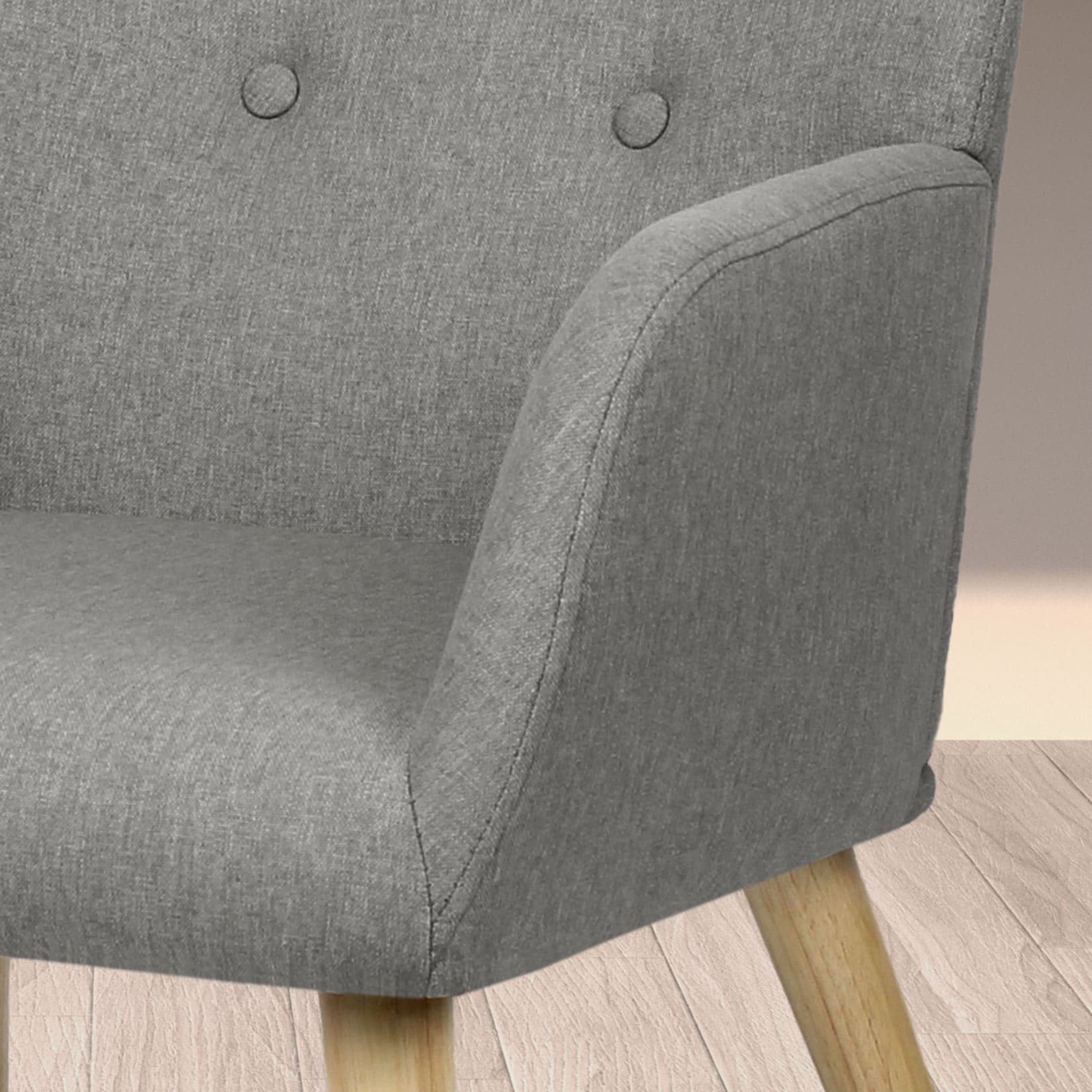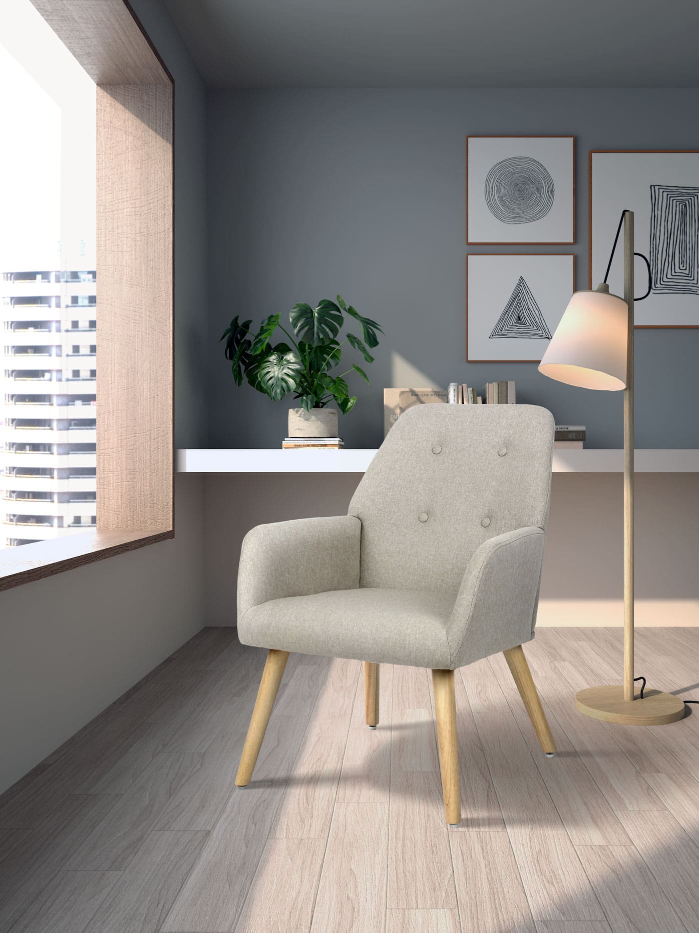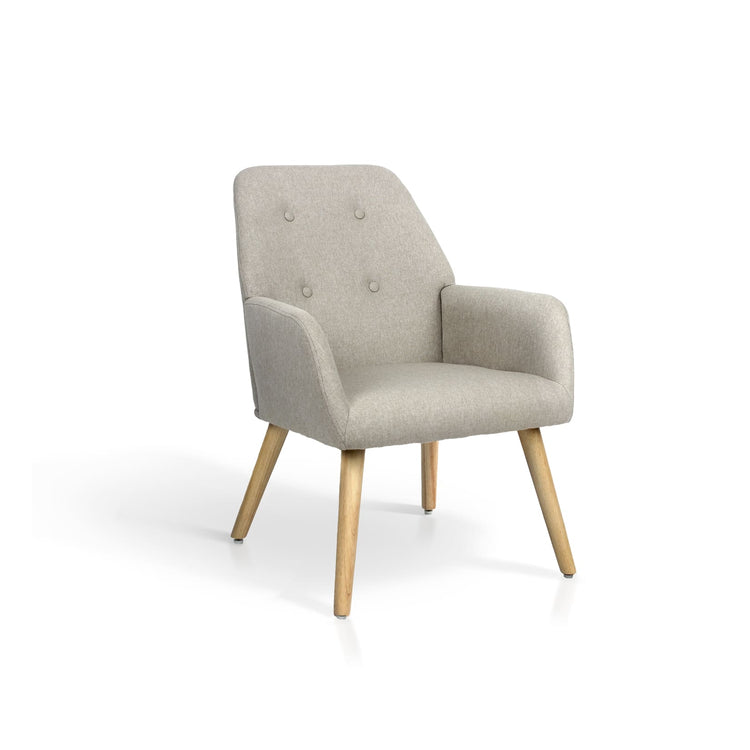 El sillón TORO ofrece una solución compacta y con estilo para cualquier espacio. Tapizado en tela moteada arena o gris, presenta un respaldo decorado con botones y una cremallera trasera como detalle funcional y decorativo. Su diseño compacto, junto con las patas de madera natural, lo convierte en una pieza versátil, cómoda, resistente y fácil de montar.