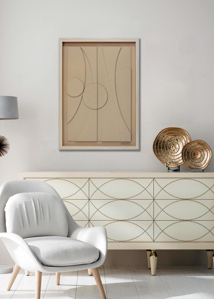 Este cuadro en espuma de poliuretano con relieve 3D en color crema es una pieza elegante y moderna, ideal para ambientes contemporáneos. Su diseño texturizado aporta profundidad y dinamismo, mientras que el marco de MDF en acabado madera natural complementa su estética sofisticada. La trasera reforzada en MDF garantiza firmeza y durabilidad. Además, es combinable con el modelo Collarada para crear composiciones armoniosas.