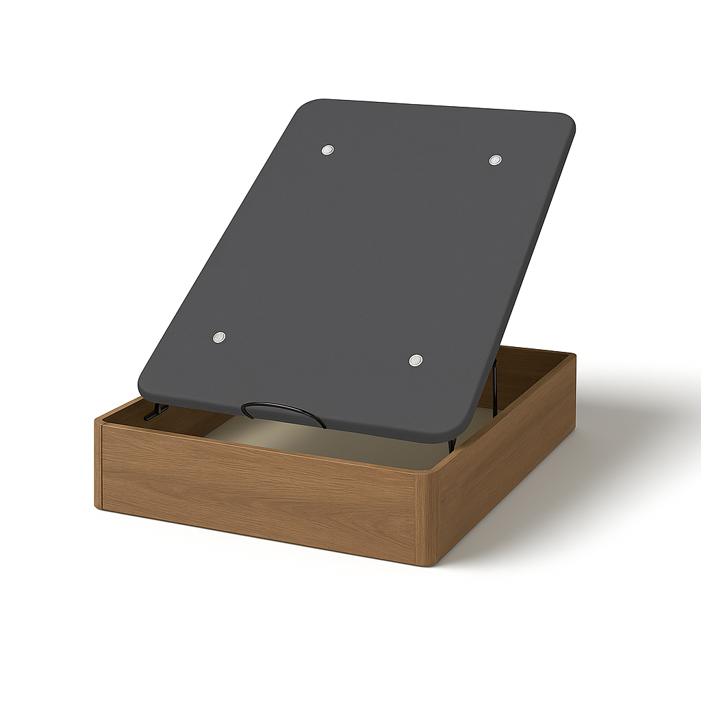 Tapizada con un tejido 3D altamente transpirable y fibras hipoalergénicas, su superficie favorece la circulación del aire y mejora la higiene del descanso. Incorpora cuatro aireadores distribuidos en la tapa que refuerzan la ventilación interior.