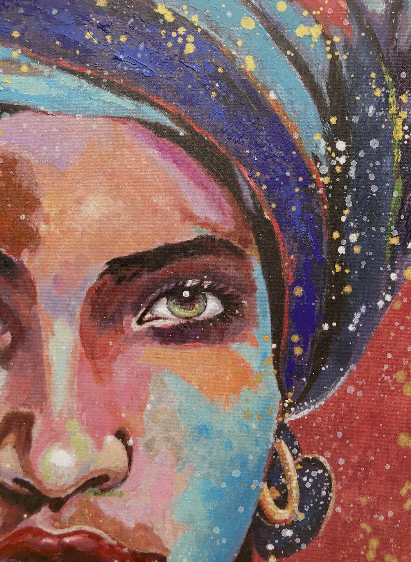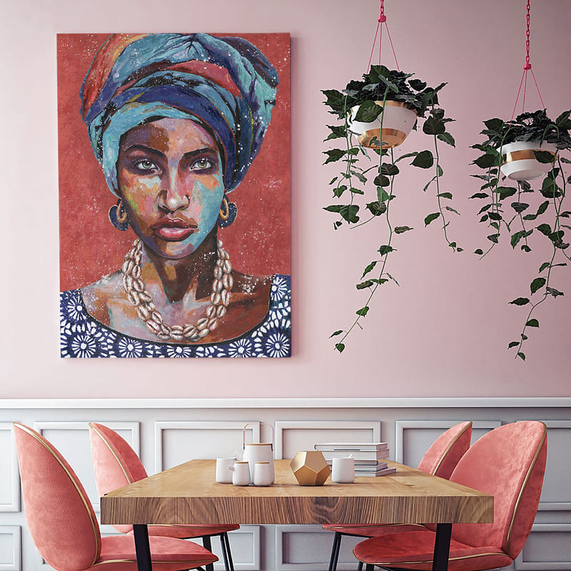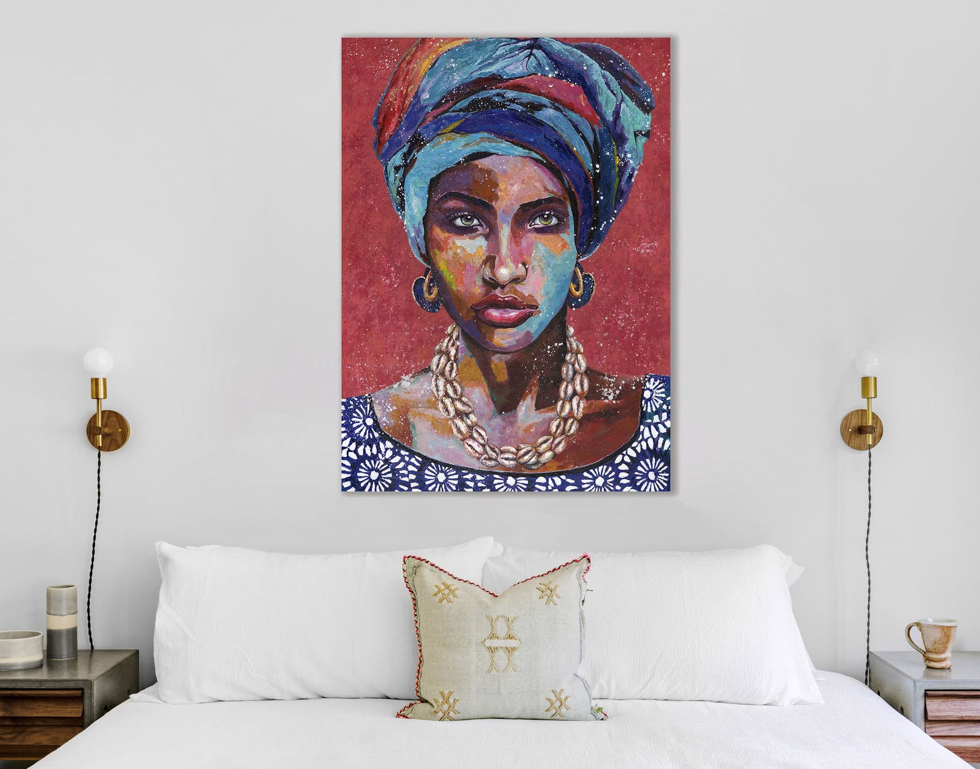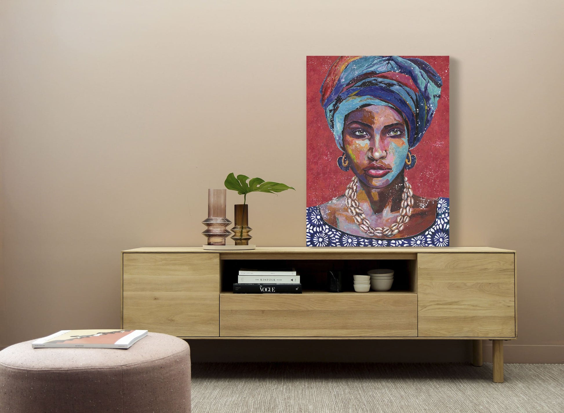 El cuadro CAIMODORRO es una elegante representación artística de una mujer, fusionando impresión con retoques a mano para lograr un acabado expresivo y sofisticado. Su diseño aporta carácter y profundidad a cualquier espacio.