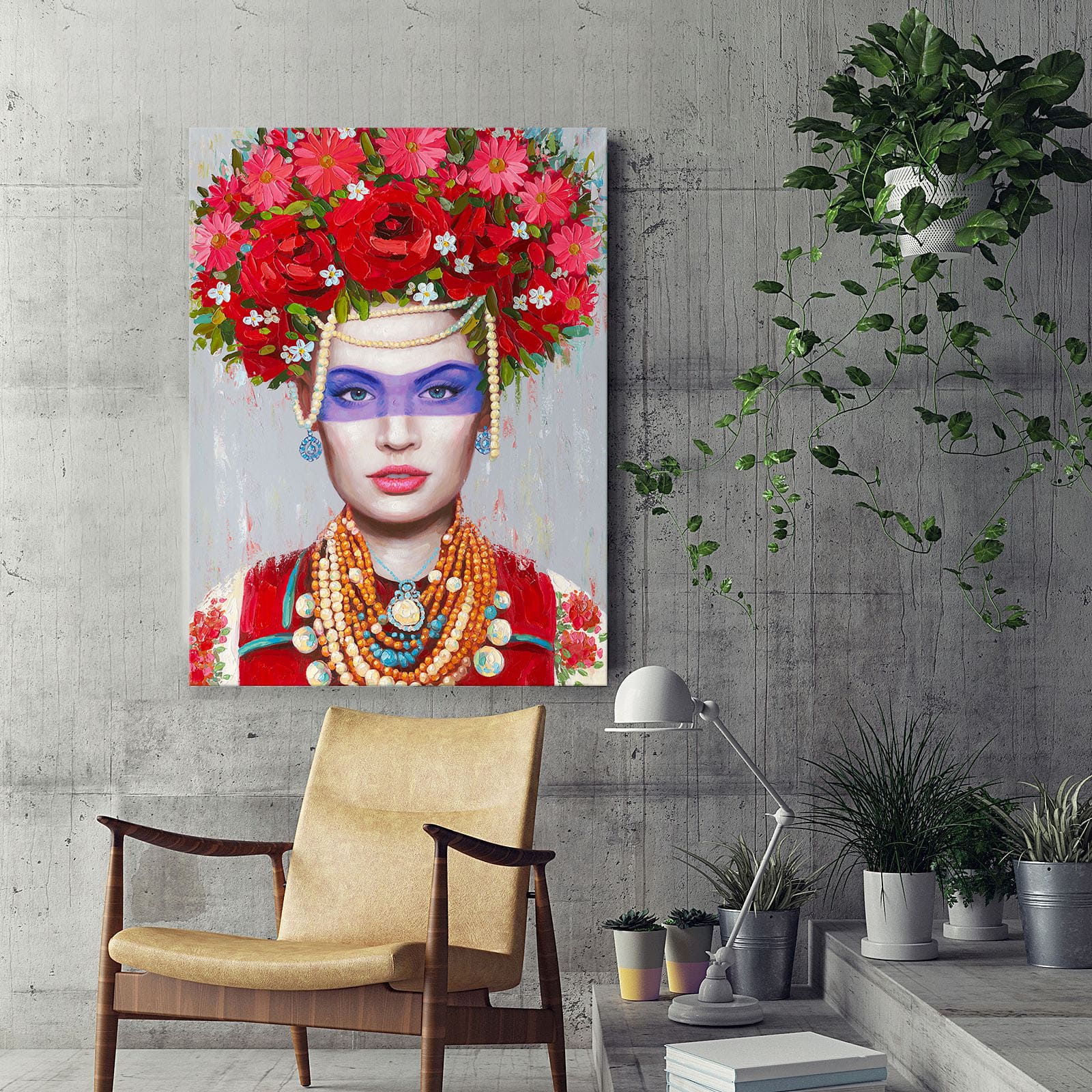 El cuadro CEBOLLERA es una obra pintada a mano sobre lienzo, con la representación artística de una mujer que transmite elegancia y expresión. Su estilo contemporáneo y detallado lo convierte en una pieza perfecta para resaltar en cualquier ambiente.
