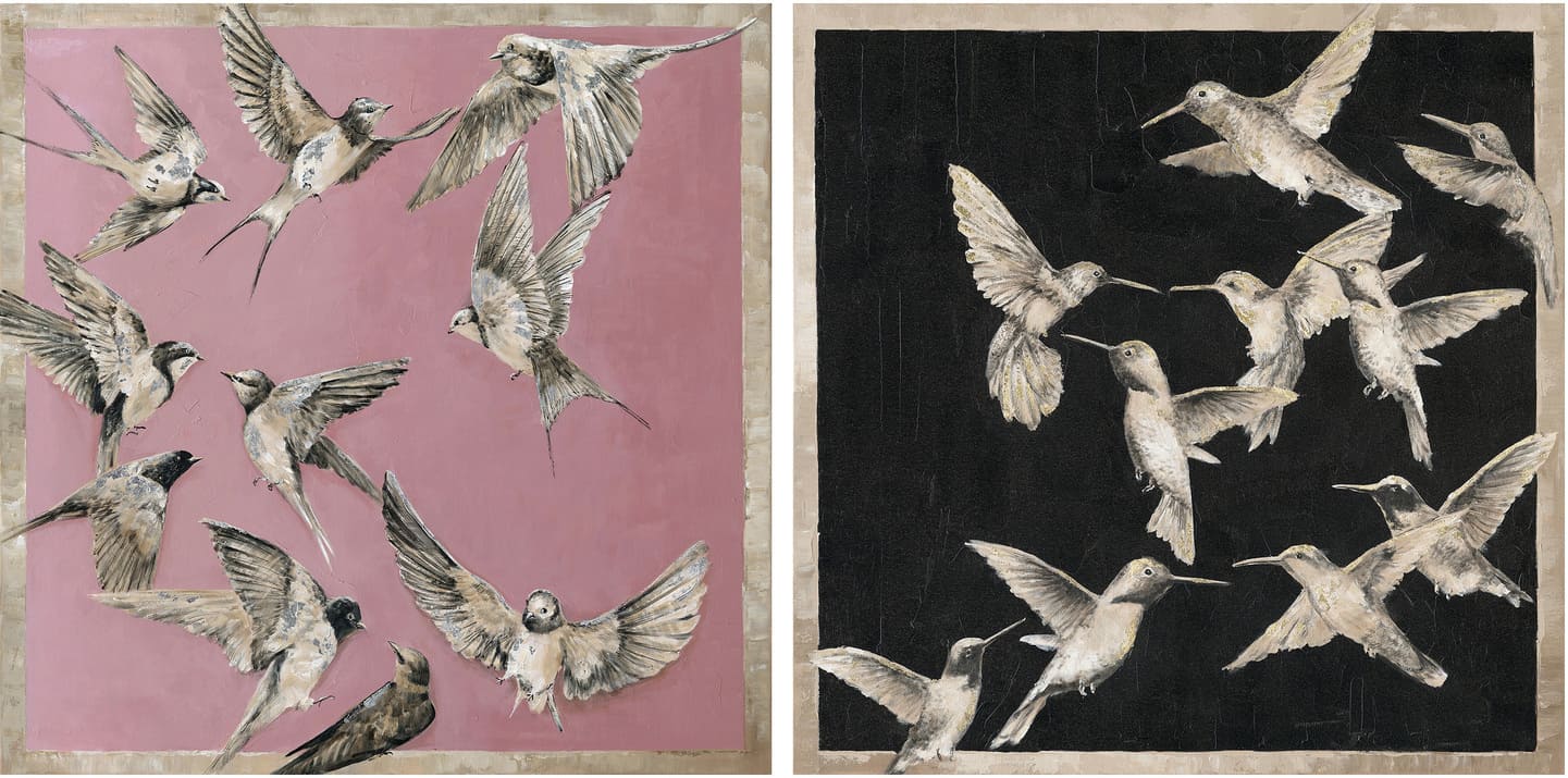 • Técnica: Impresión con retoques a mano y detalles dorados que realzan el diseño de las aves