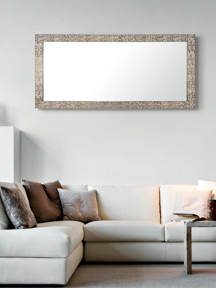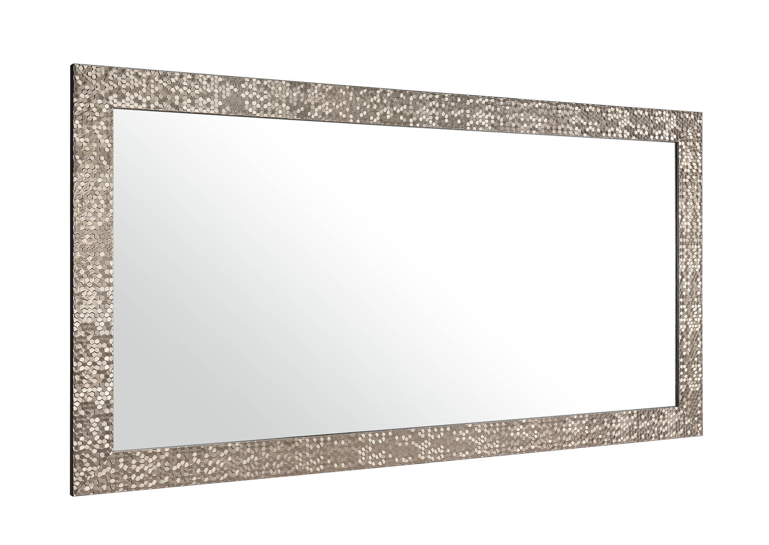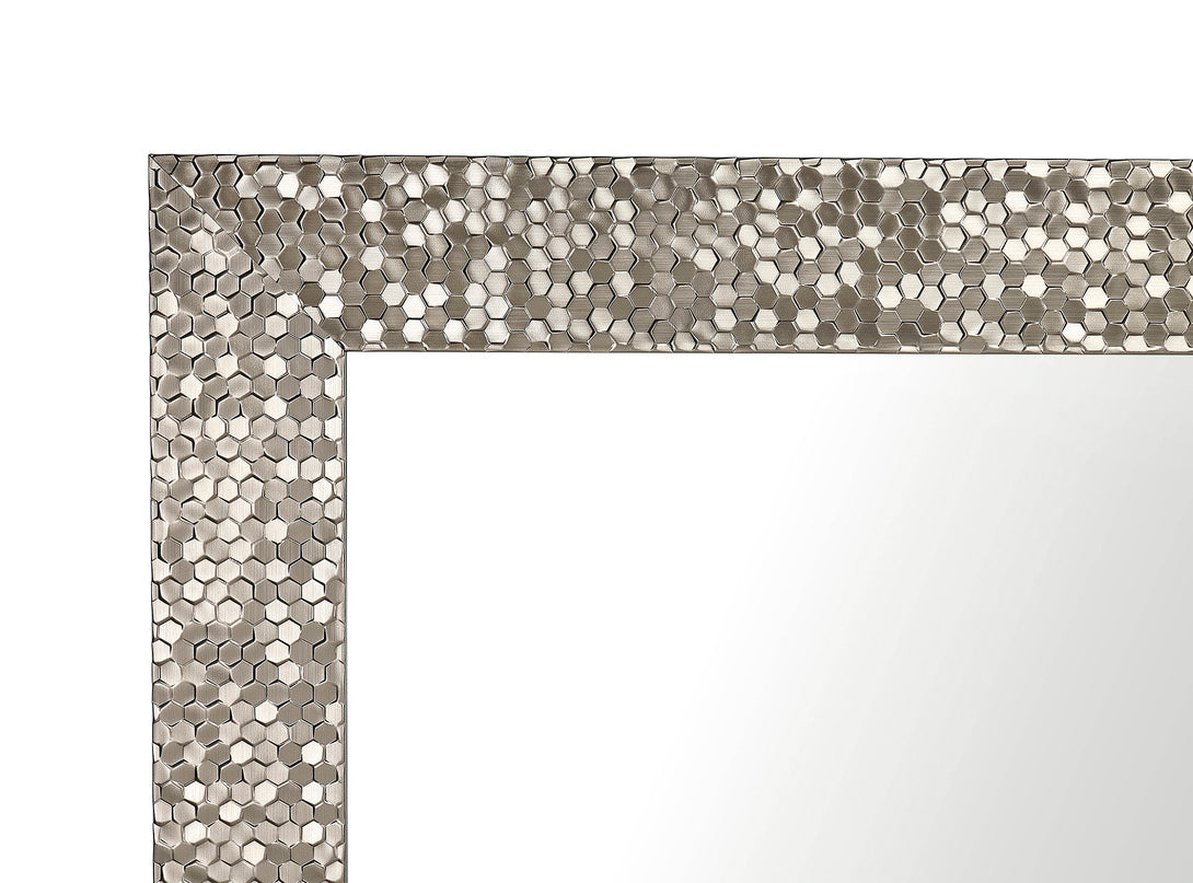Transforma tu espacio con el espejo rectangular LOSAR de 143x73 cm. Su elegante marco de 7 cm en color champagne, formado por pequeños hexágonos perfectamente dispuestos, crea un diseño moderno y sofisticado que añade textura y estilo a cualquier habitación. Ideal para el salón, recibidor o dormitorio, este espejo refleja la luz y amplía visualmente el espacio, aportando luminosidad y elegancia.