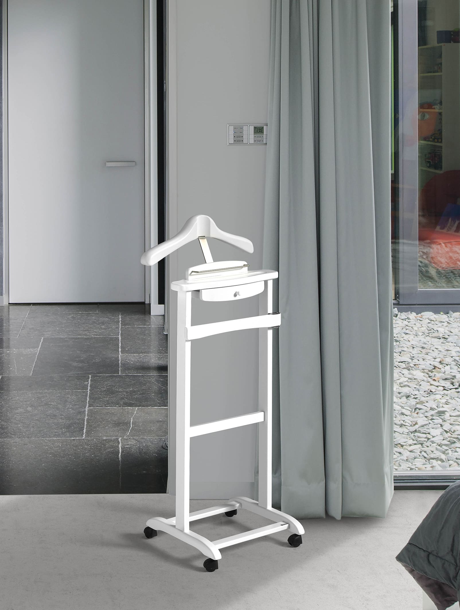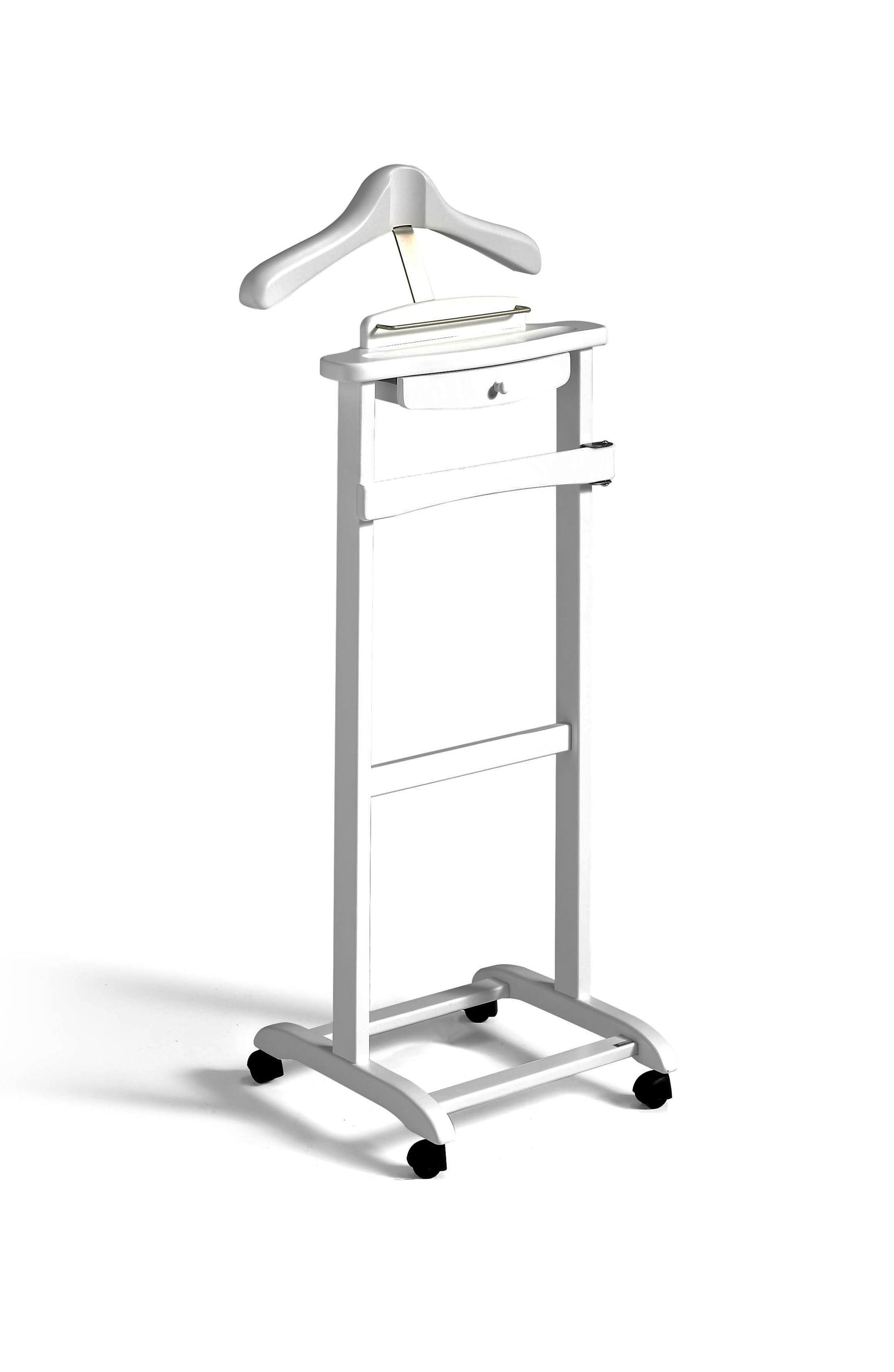 Galán de noche fabricado en madera de haya con toques en metal cromado. Incluye ruedas para facilitar su desplazamiento, un práctico cajón y la pantalonera que es abatible. Lo podrás adaptar lacándolo en cualquiera de nuestros colores disponibles.