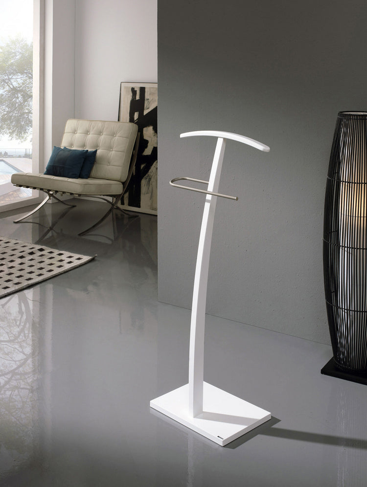 Galán de noche fabricado en madera de haya con base cuadrada y pantalonera bañada en níquel mate. Este galán con su diseño sencillo y estilizado se adapta a cualquier estilo y su amplia gama de acabados permite personalizarlo de una manera exclusiva.