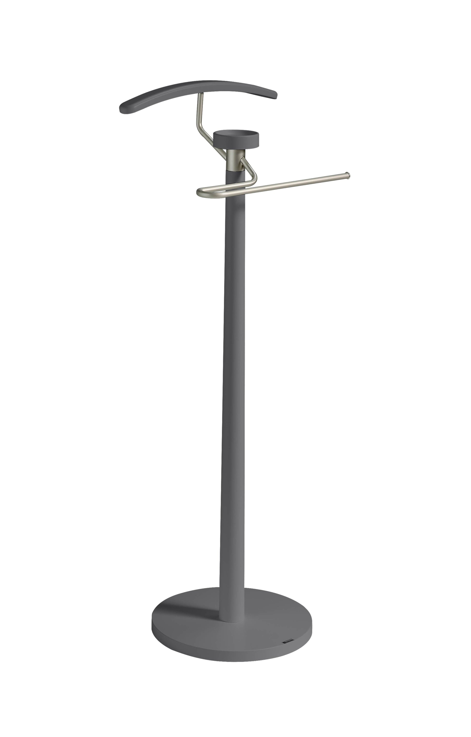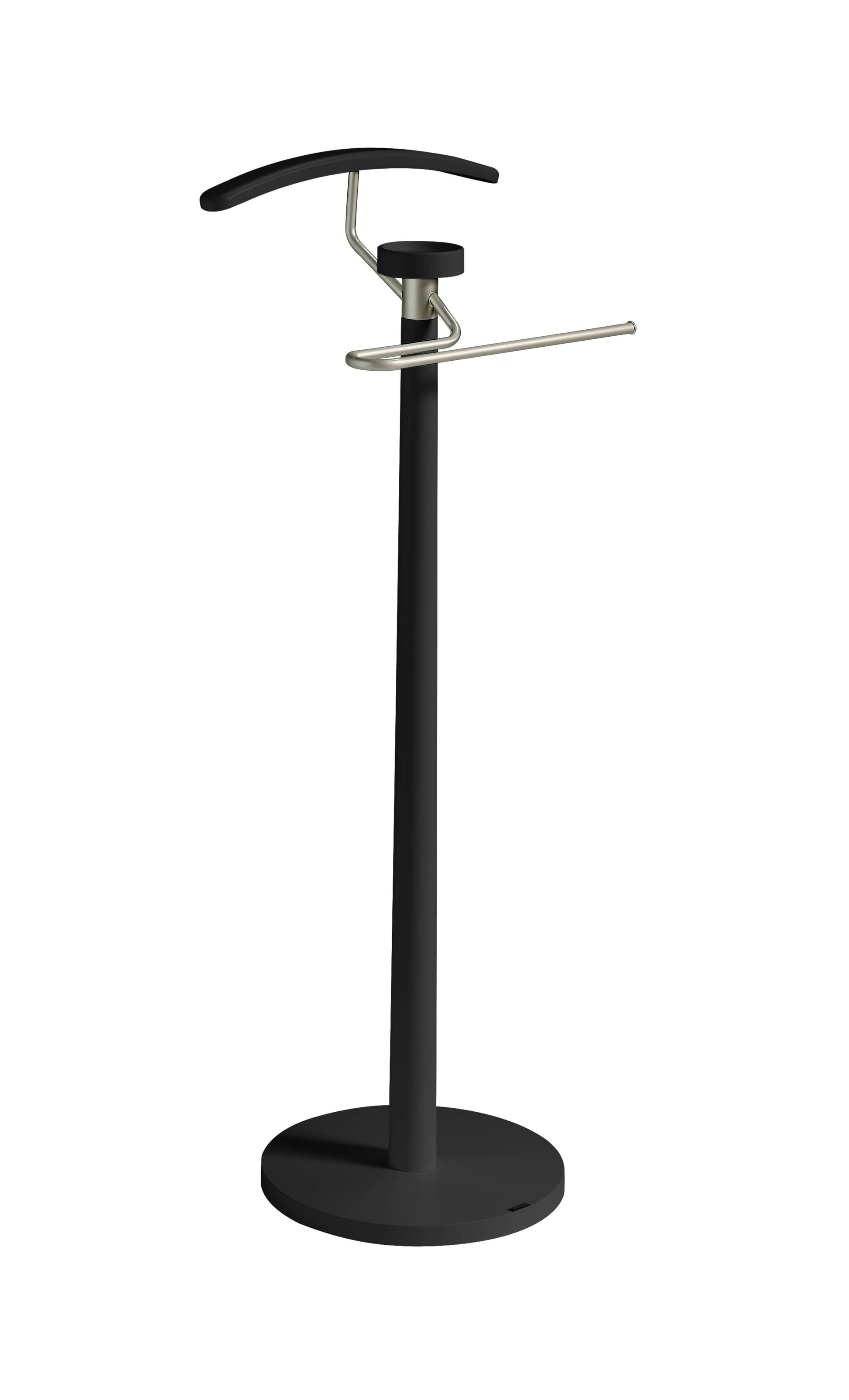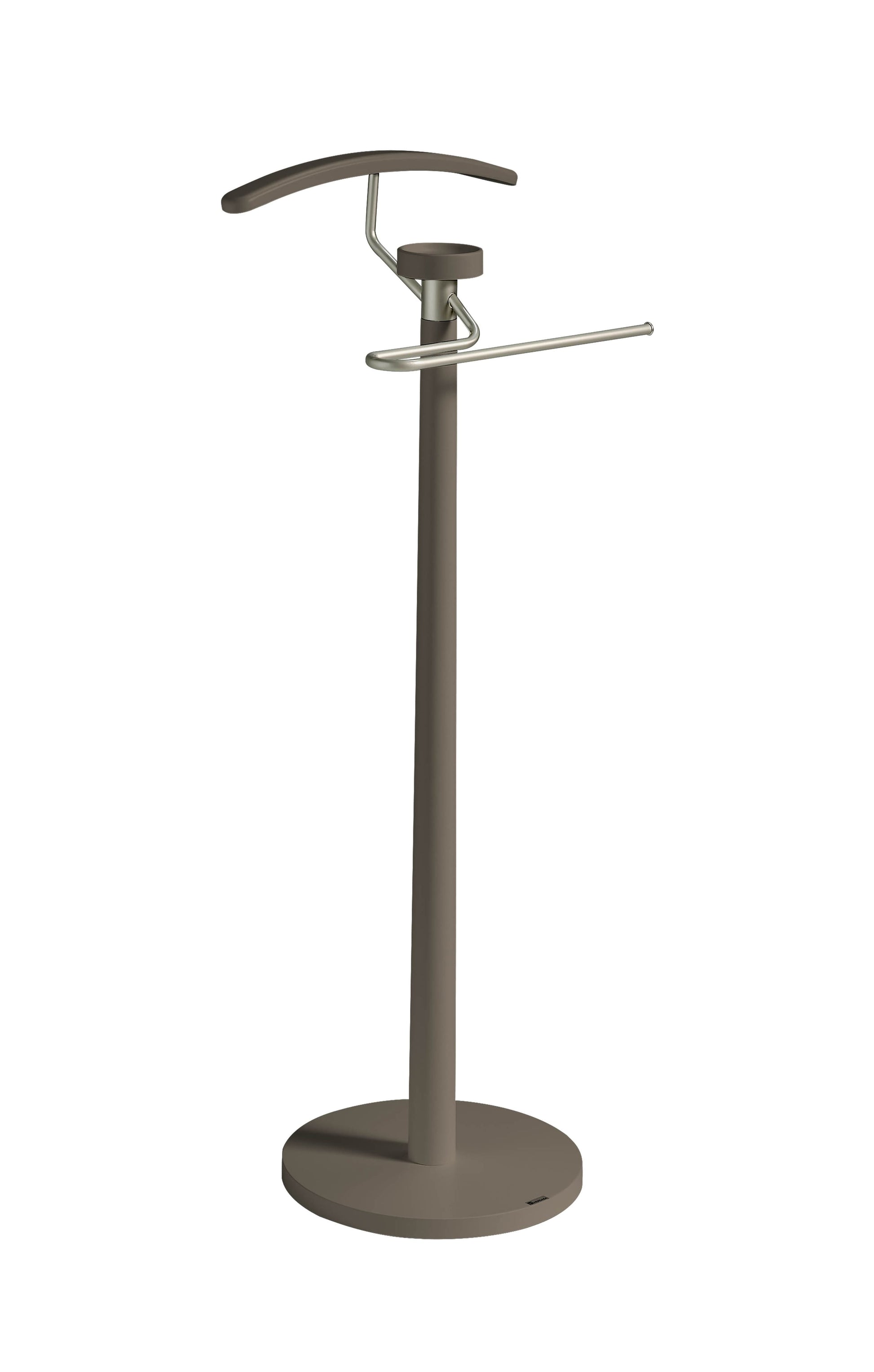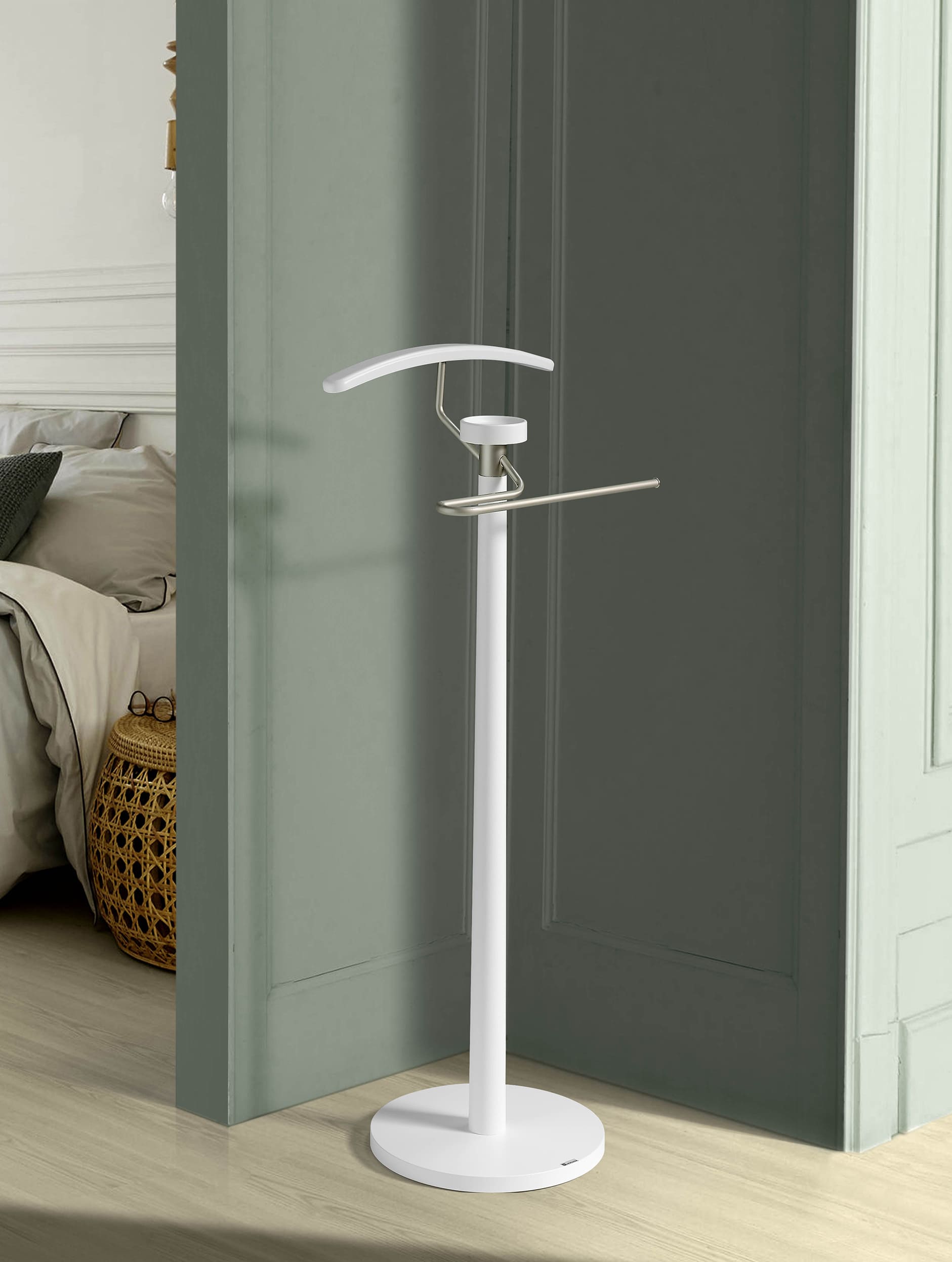 Galán de noche fabricado en madera de haya con detalles metálicos cromados. Dispone de la percha, una pantalonera y una pequeña bandeja redonda para dejar joyas o monedas. Diseño moderno que podrás personalizar, eligiendo entre una amplia oferta de colores.