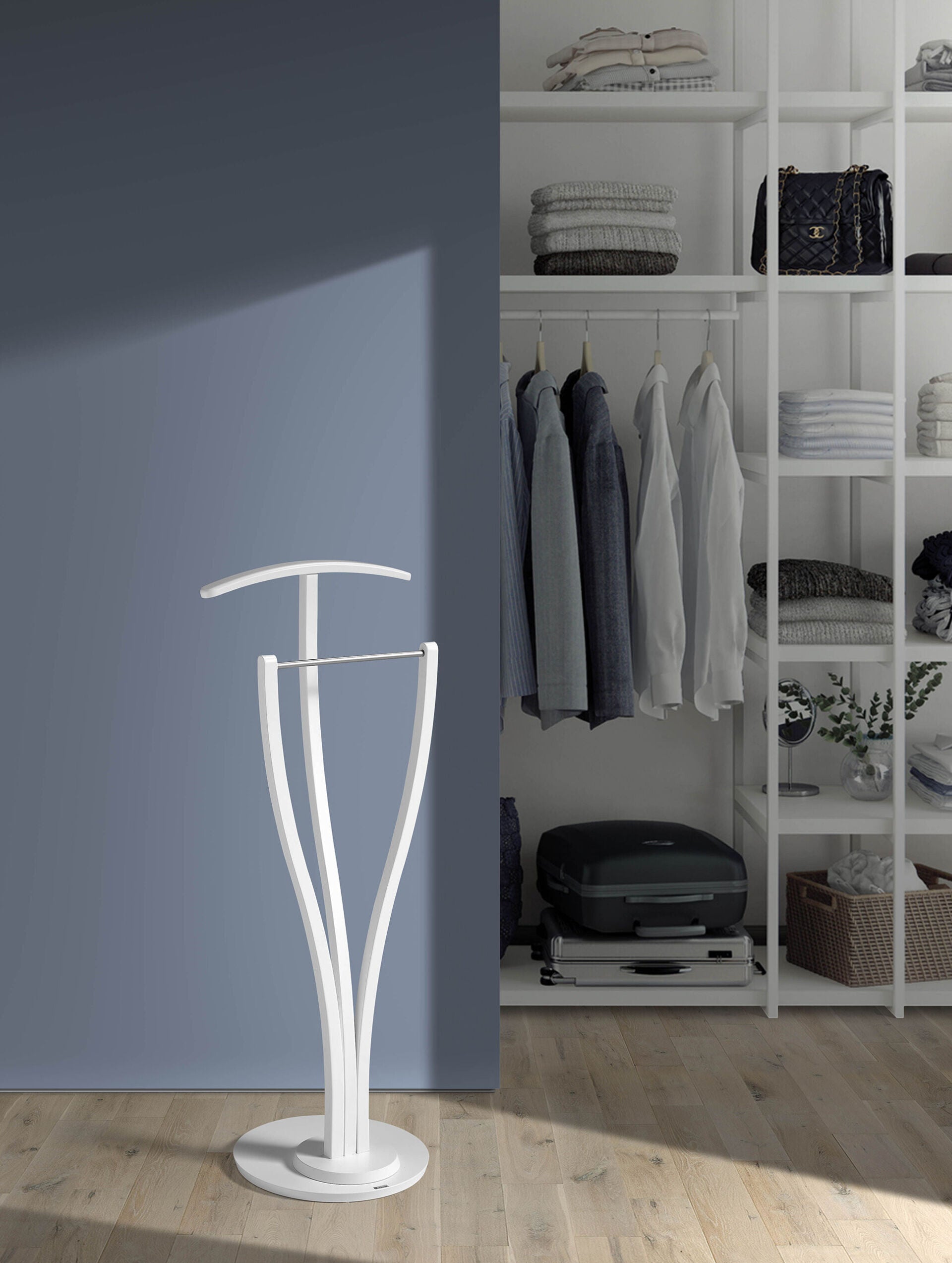 Galán de noche fabricado en madera de haya con pantalonera metálica cromada. Original diseño en líneas curvadas que dará un toque único al dormitorio. Personalízalo a tu gusto escogiendo entre nuestra amplia variedad de colores.