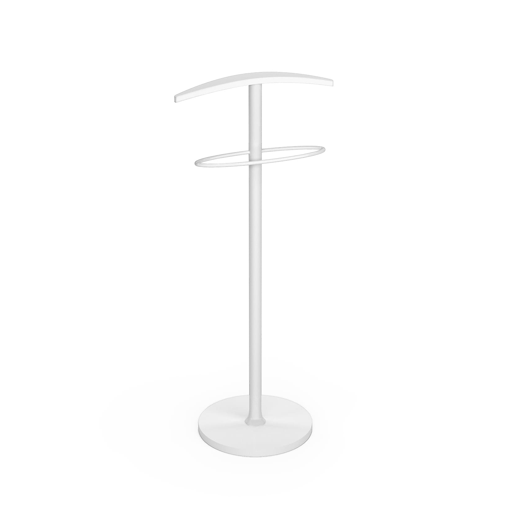 Incorpora un herraje metálico con pintura microtexturizada en color blanco o negro, que aporta un toque contemporáneo y garantiza resistencia frente al uso diario. Gracias a su percha curvada y su anilla metálica para pantalones, es perfecto para mantener la ropa organizada y sin arrugas.