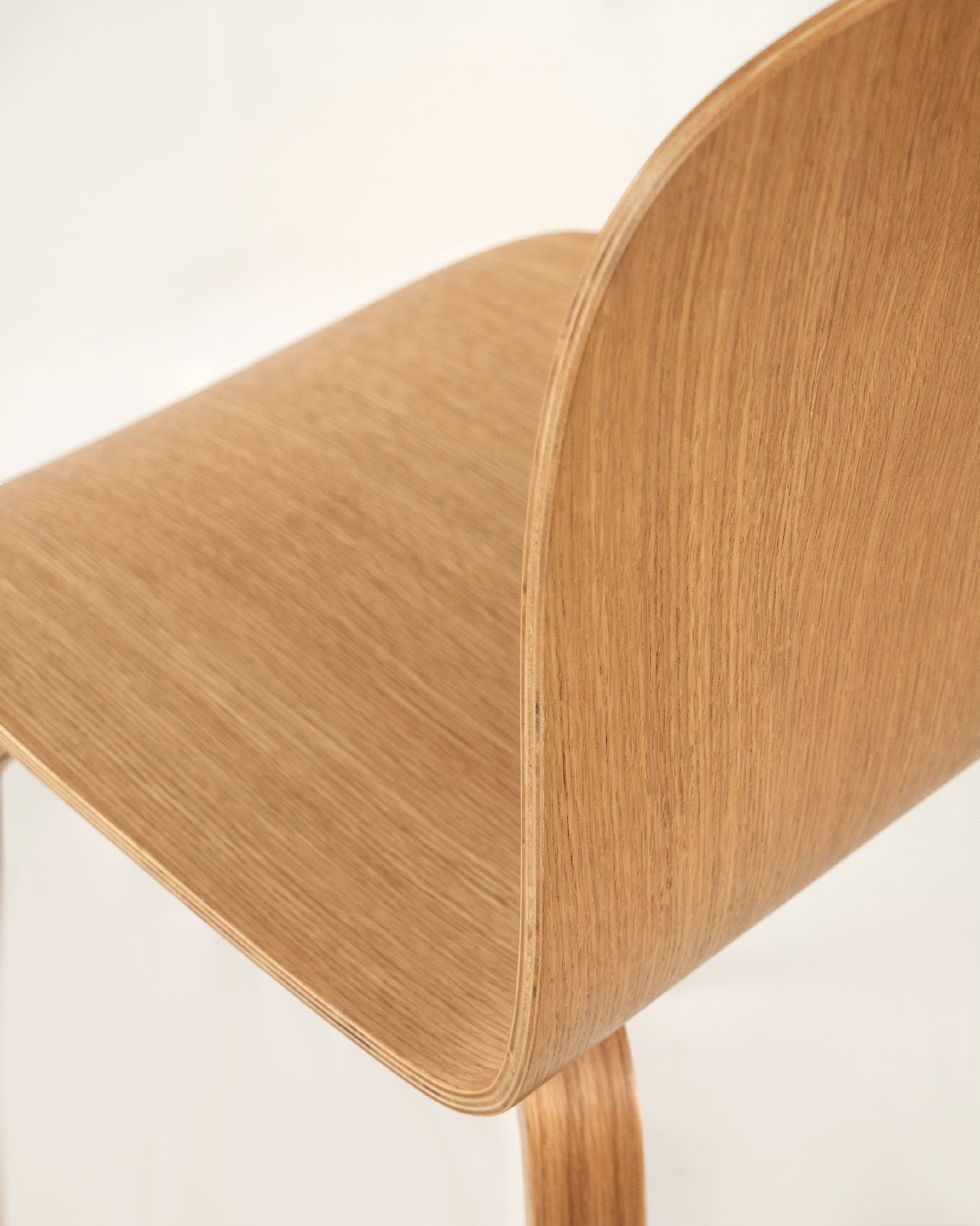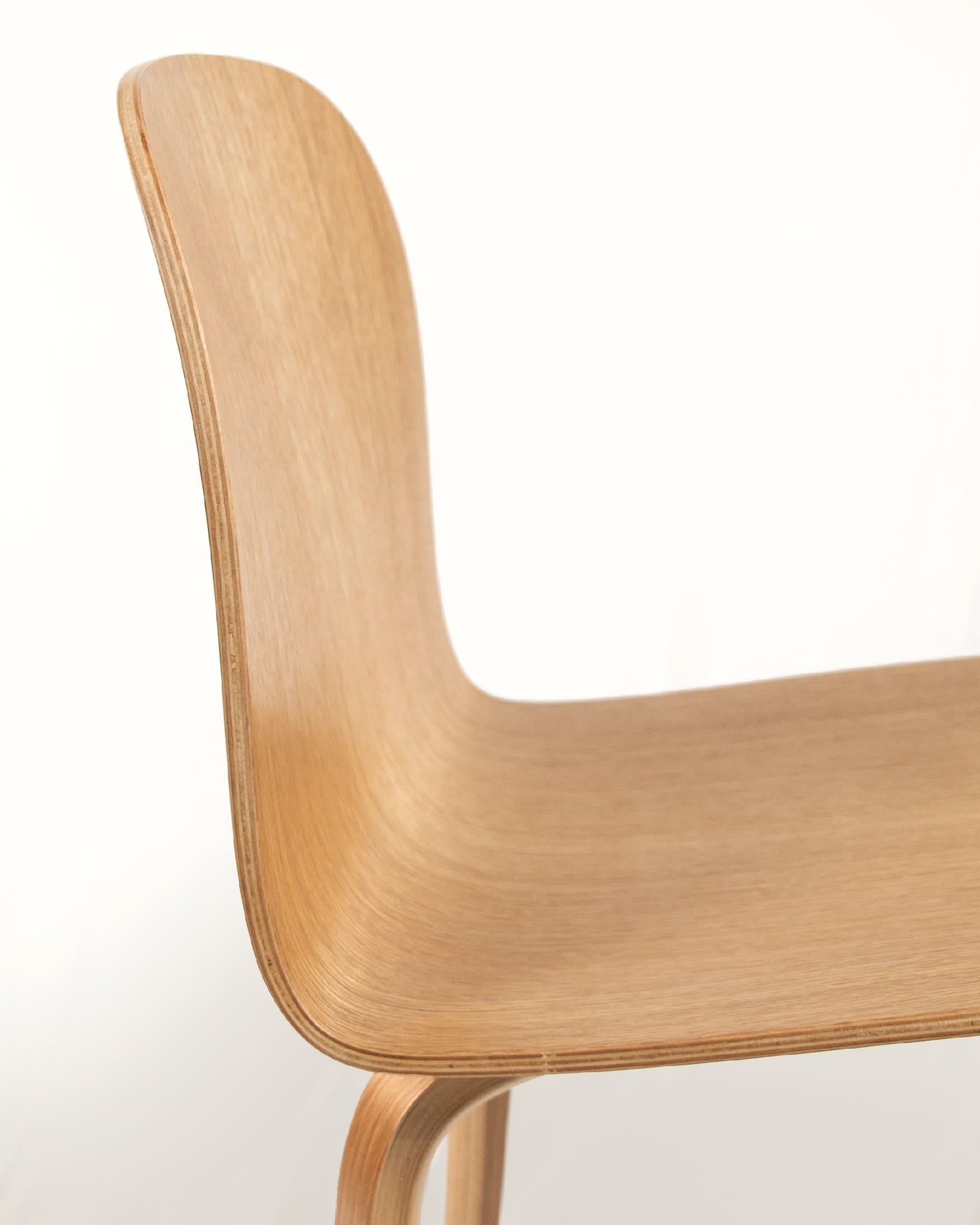 La silla UGÍJAR destaca por su diseño minimalista y atemporal, con líneas suaves y estructura íntegramente en madera de roble natural. Una opción versátil, funcional y elegante tanto para espacios domésticos como profesionales.