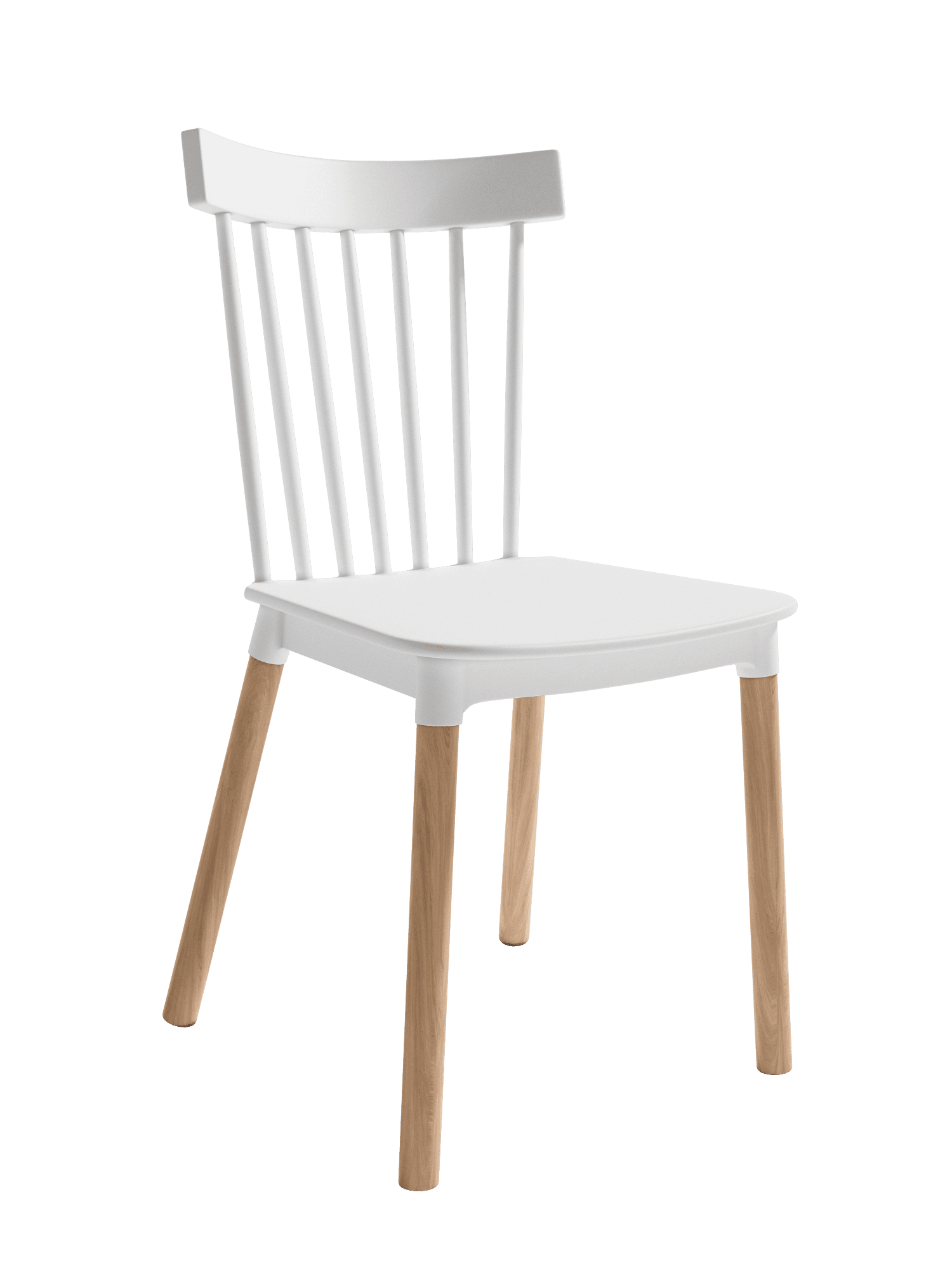 Con un diseño clásico reinterpretado en clave moderna, la silla AZABA combina una estructura de polipropileno con patas de madera para lograr un equilibrio entre tradición y funcionalidad. Su respaldo de barrotes verticales y su asiento plano la hacen ideal para comedores, cocinas o espacios de hostelería con carácter acogedor.