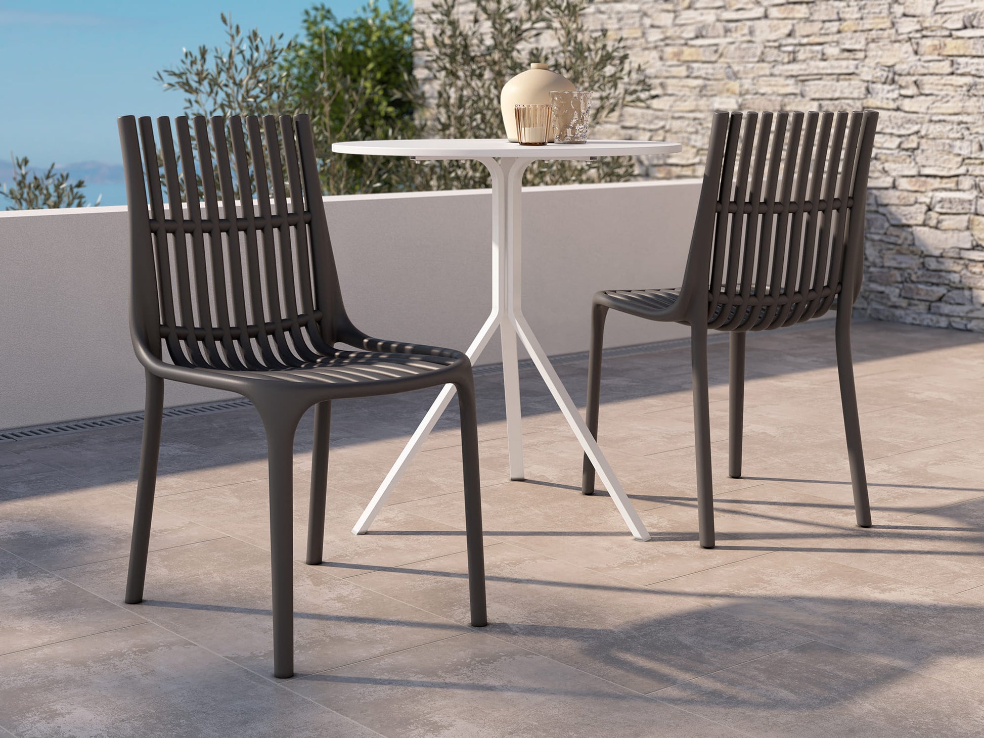 La silla GORGO ofrece una combinación ideal entre resistencia, ligereza y diseño funcional. Fabricada en polipropileno, es apilable y apta para exteriores, lo que la convierte en una opción práctica tanto para espacios domésticos como contract.