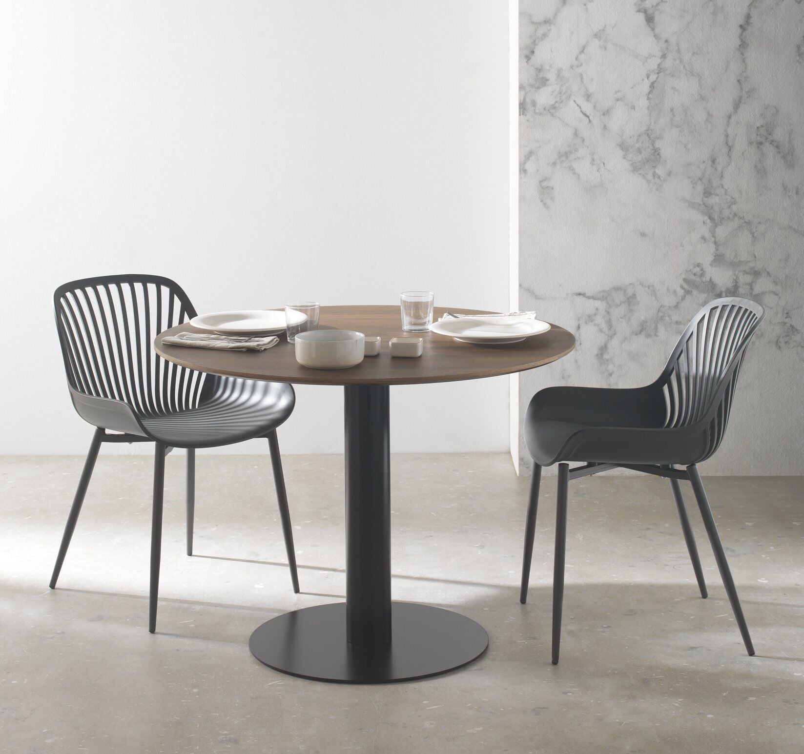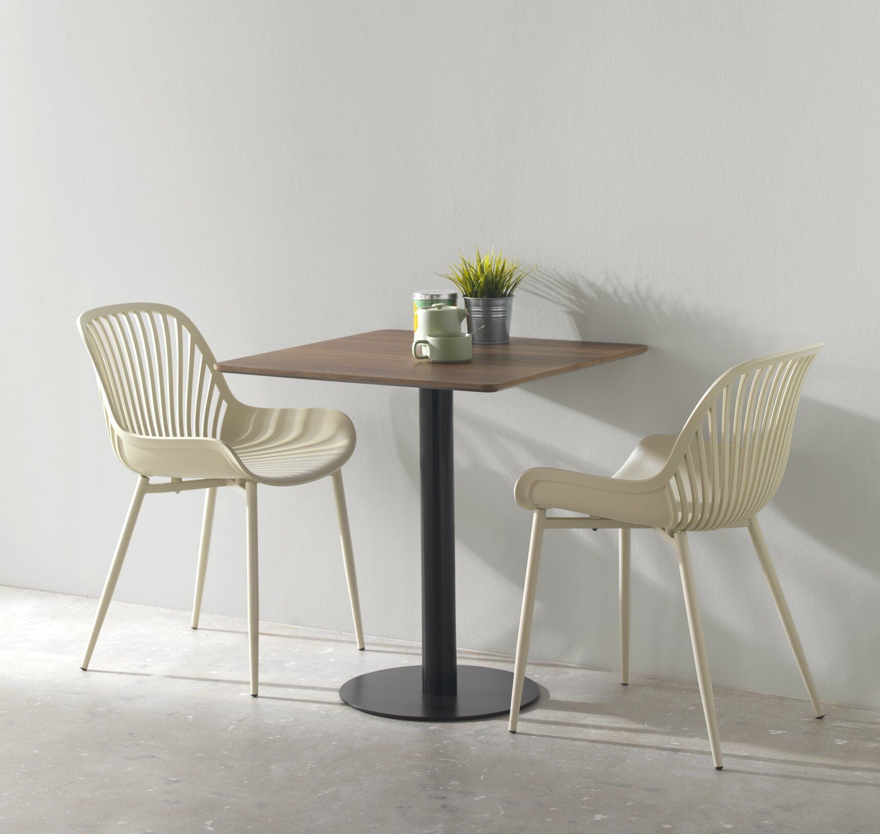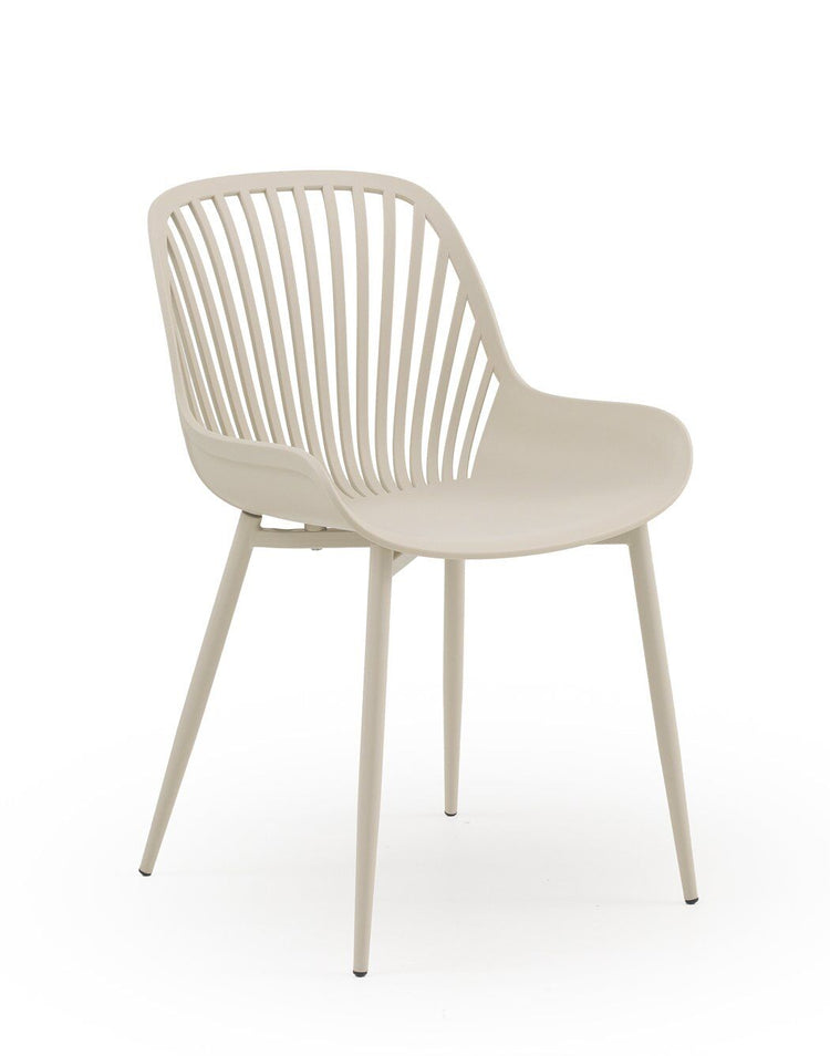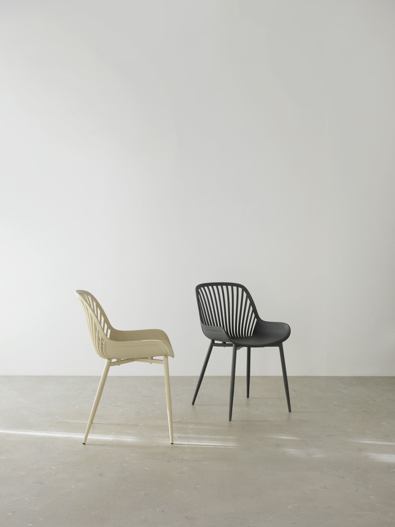 El modelo NÁGIMA ofrece una fusión moderna entre la solidez del polipropileno y la estabilidad de unas patas metálicas fijas. Su diseño curvado y cómodo se adapta bien a comedores contemporáneos, salas de espera o espacios contract. Disponible en gris oscuro o crema, combina funcionalidad y estética minimalista. No es apilable, pero no requiere montaje, lo que facilita su instalación inmediata.