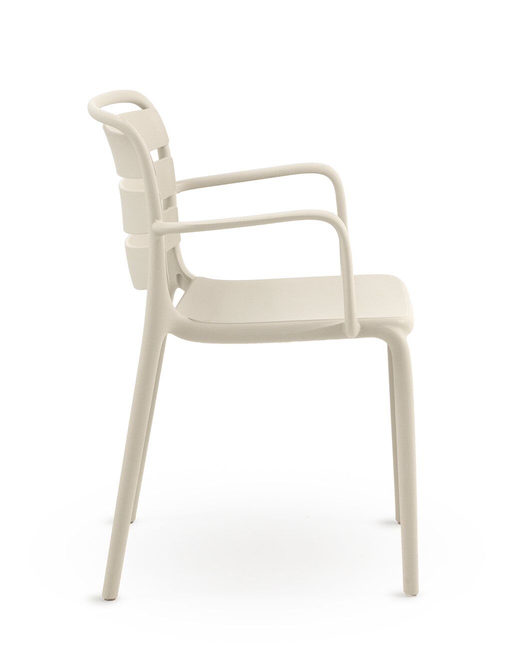El modelo MONEGRILLO es un sillón de polipropileno que destaca por su diseño contemporáneo, funcionalidad y resistencia. Ideal tanto para espacios interiores como exteriores cubiertos, su forma envolvente con reposabrazos integrados proporciona mayor comodidad. Es ligero, apilable y no requiere montaje, lo que lo convierte en una opción muy práctica. Disponible en los colores crema o pistacho, aporta un toque fresco y moderno.