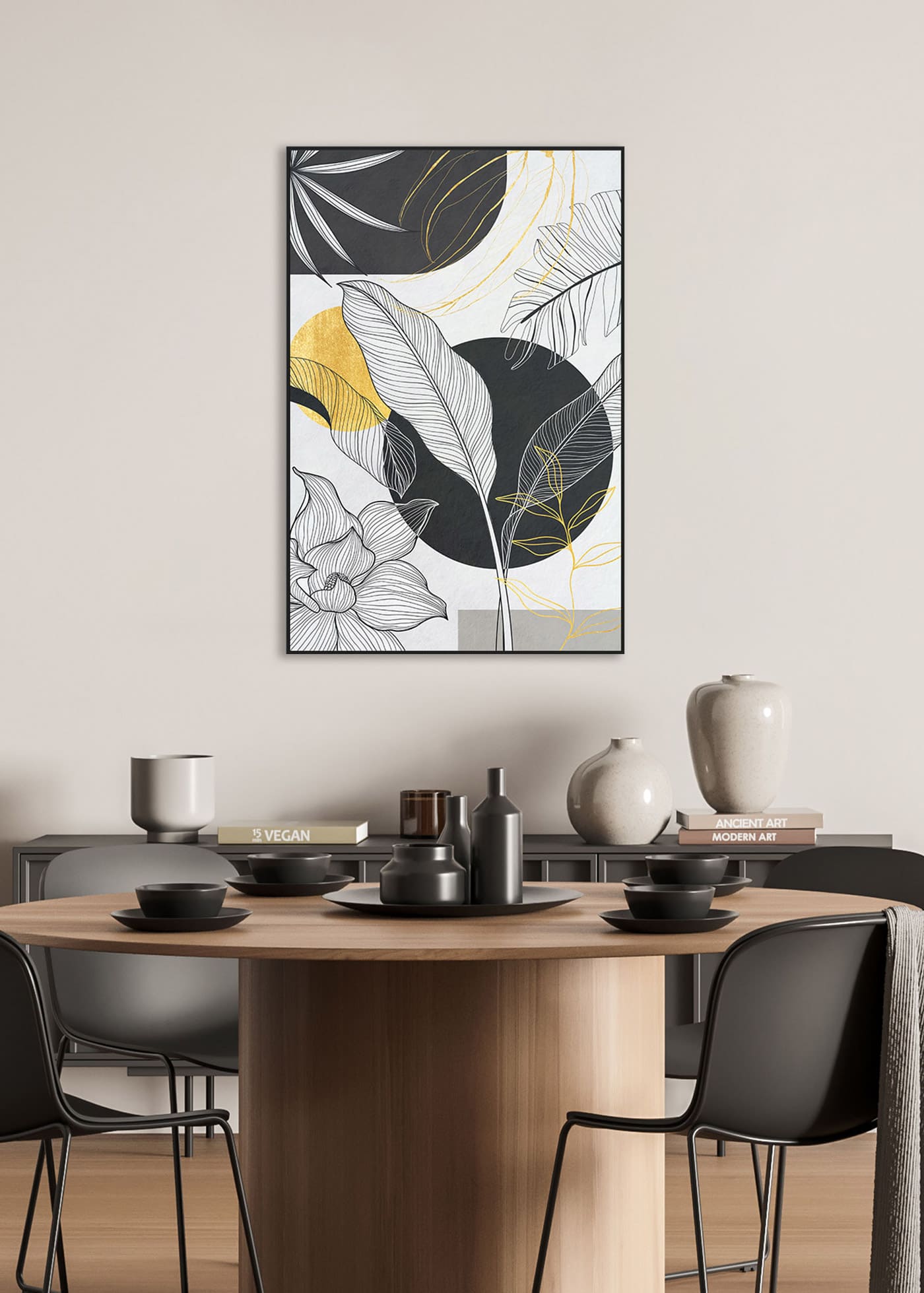 - Marco: Poliestireno negro, ideal para complementar cualquier estilo contemporáneo.