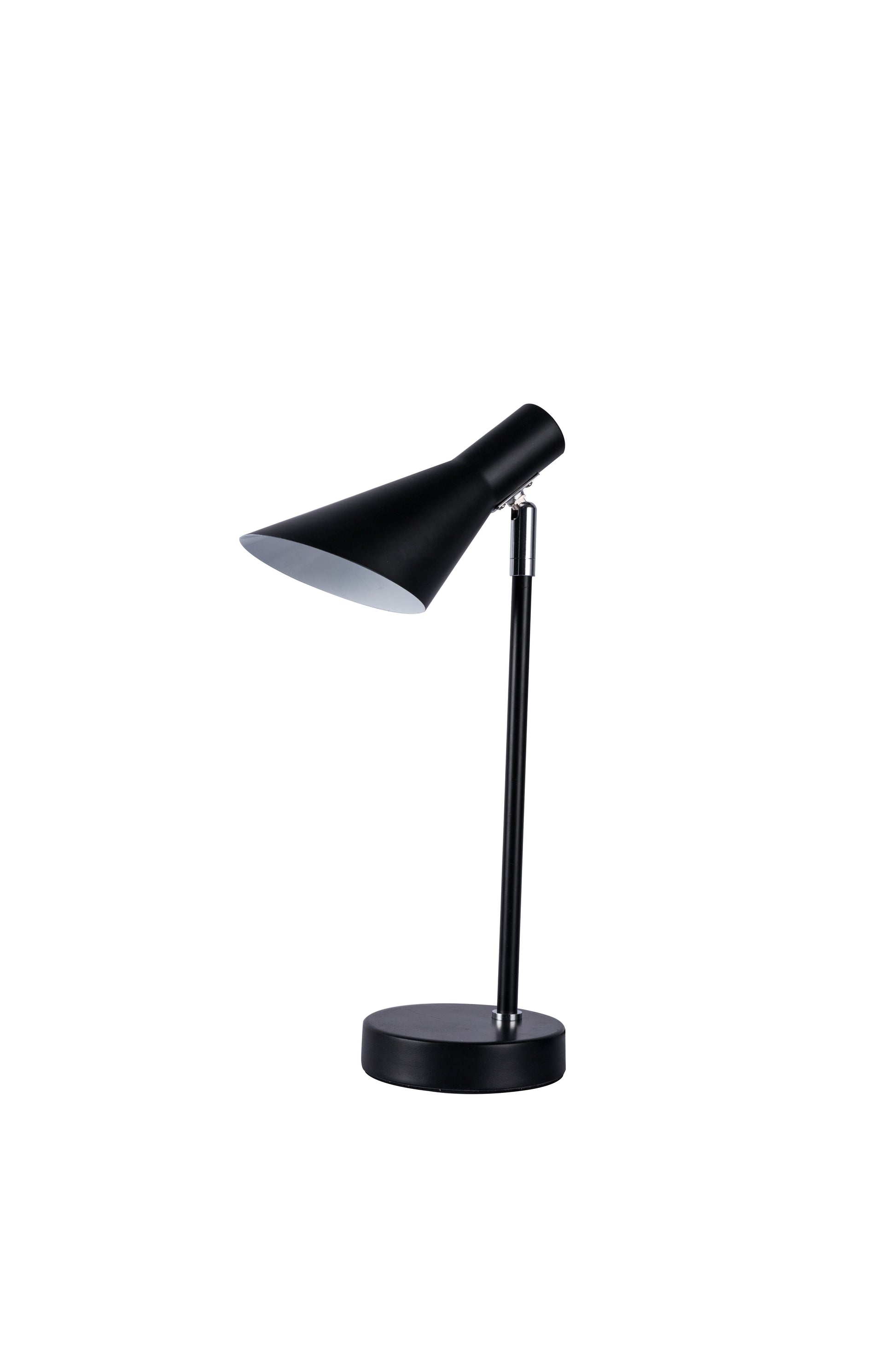 Lámpara de mesa PEÑA NEGRA. Esta lámpara de metal en color negro presenta un diseño minimalista con una tulipa ovalada ajustable, lo que te permite dirigir la luz fácilmente a la posición que prefieras. Compatible con bombillas A++, A+, A, B, C, D, E. Con una altura de 50 cm, es perfecta para añadir iluminación focalizada a cualquier espacio.