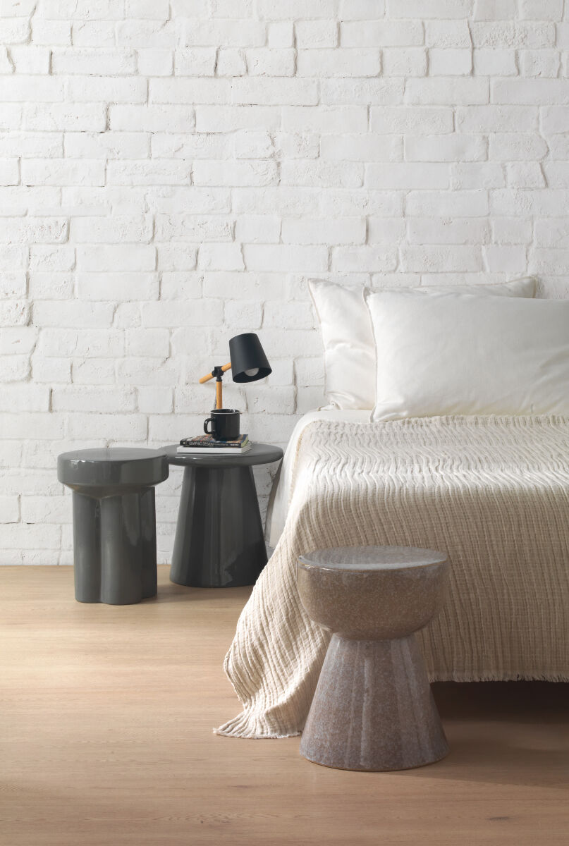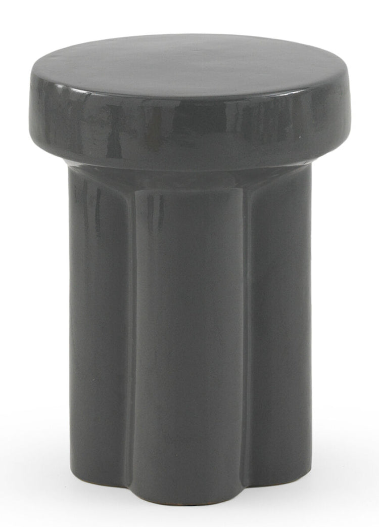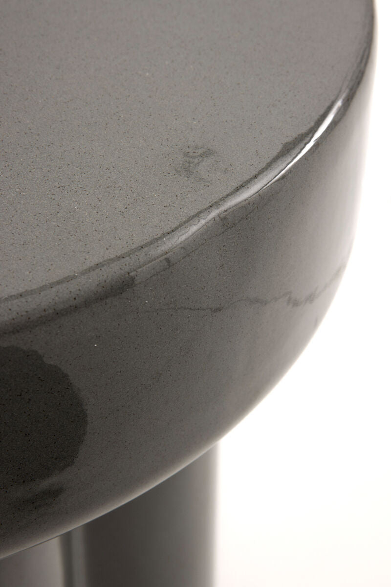 La mesa auxiliar GUADAMÍA está fabricada en cerámica de color gris con diseño de forma redonda y acabado brillante. Ideal para aportar un toque elegante y funcional a cualquier espacio interior.