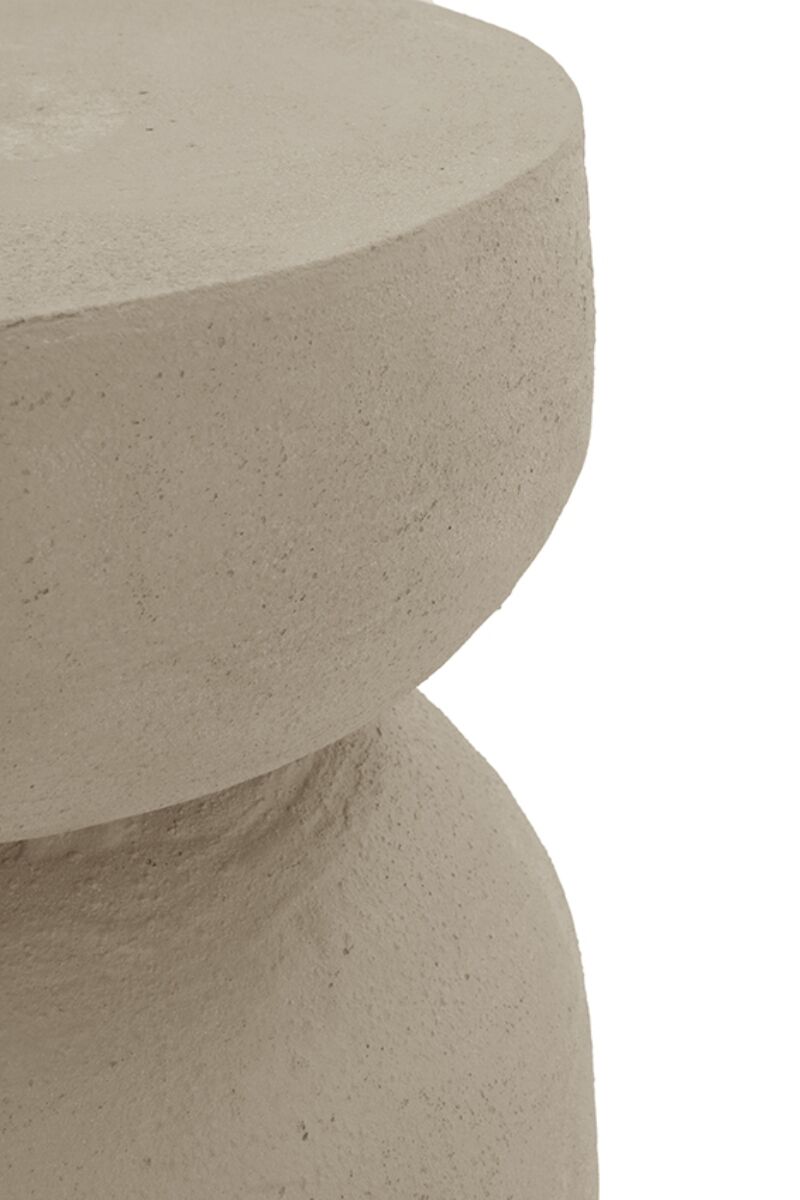 La mesa auxiliar TOMASÓN está fabricada en poliresina con forma redondeada y acabado cemento de tacto rugoso, disponible en color blanco o arena. Su diseño sencillo y natural la convierte en una pieza ideal para complementar cualquier ambiente interior, aportando funcionalidad y estilo.