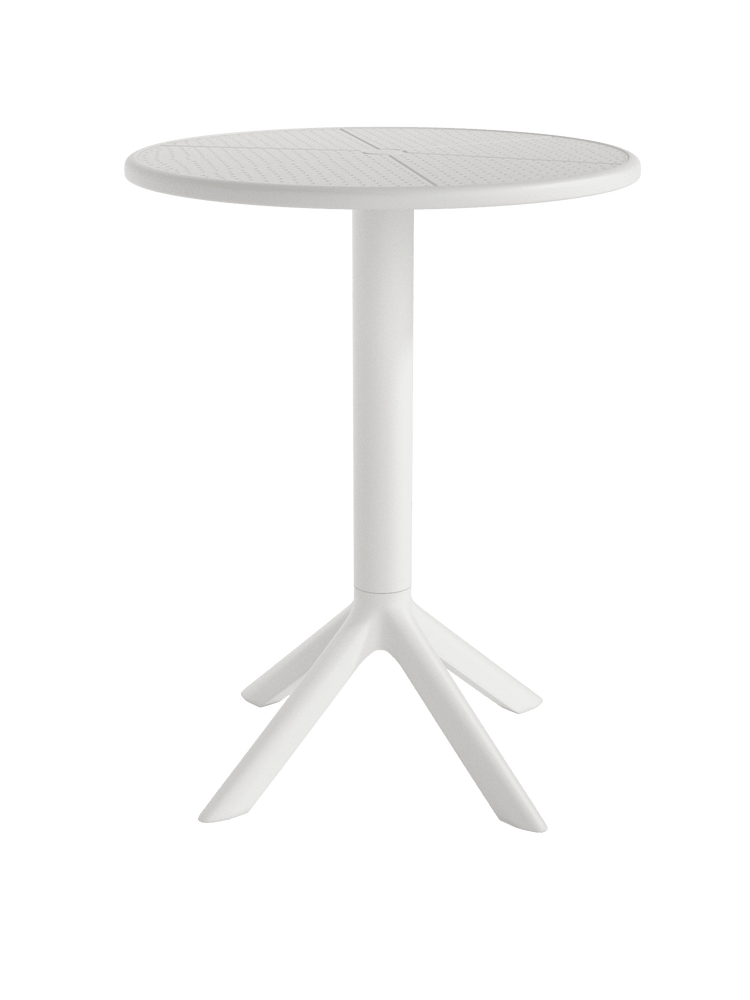 Colorida, ligera y resistente, la mesa MUSÑIA está fabricada íntegramente en polipropileno, lo que la convierte en una opción ideal para exteriores. Su diseño redondo y su base de cuatro apoyos proporcionan estabilidad sin renunciar a un aspecto desenfadado y moderno.