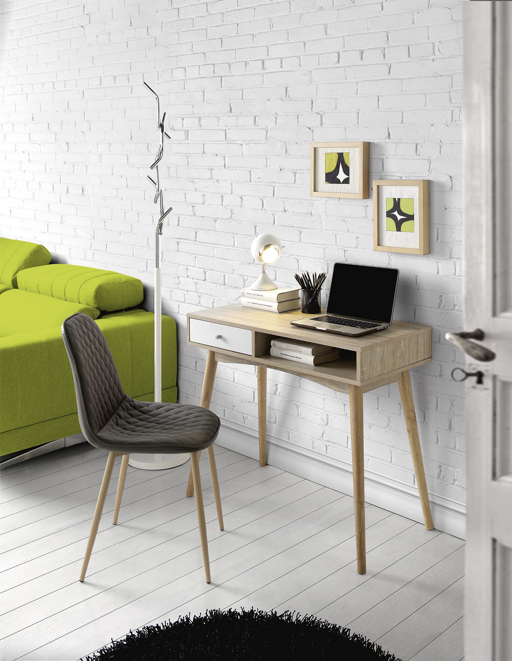 El escritorio POYO es una opción funcional y estilizada, ideal para quienes buscan aprovechar al máximo su espacio. Fabricado en melamina roble con patas de madera y un cajón con frente blanco, ofrece un diseño sencillo y elegante. Además del cajón, cuenta con un compartimento bajo la tapa principal, brindando almacenamiento adicional para mantener todo organizado. Con unas medidas de 90x45 cm y una altura de 78 cm, es perfecto para espacios más pequeños sin sacrificar funcionalidad.