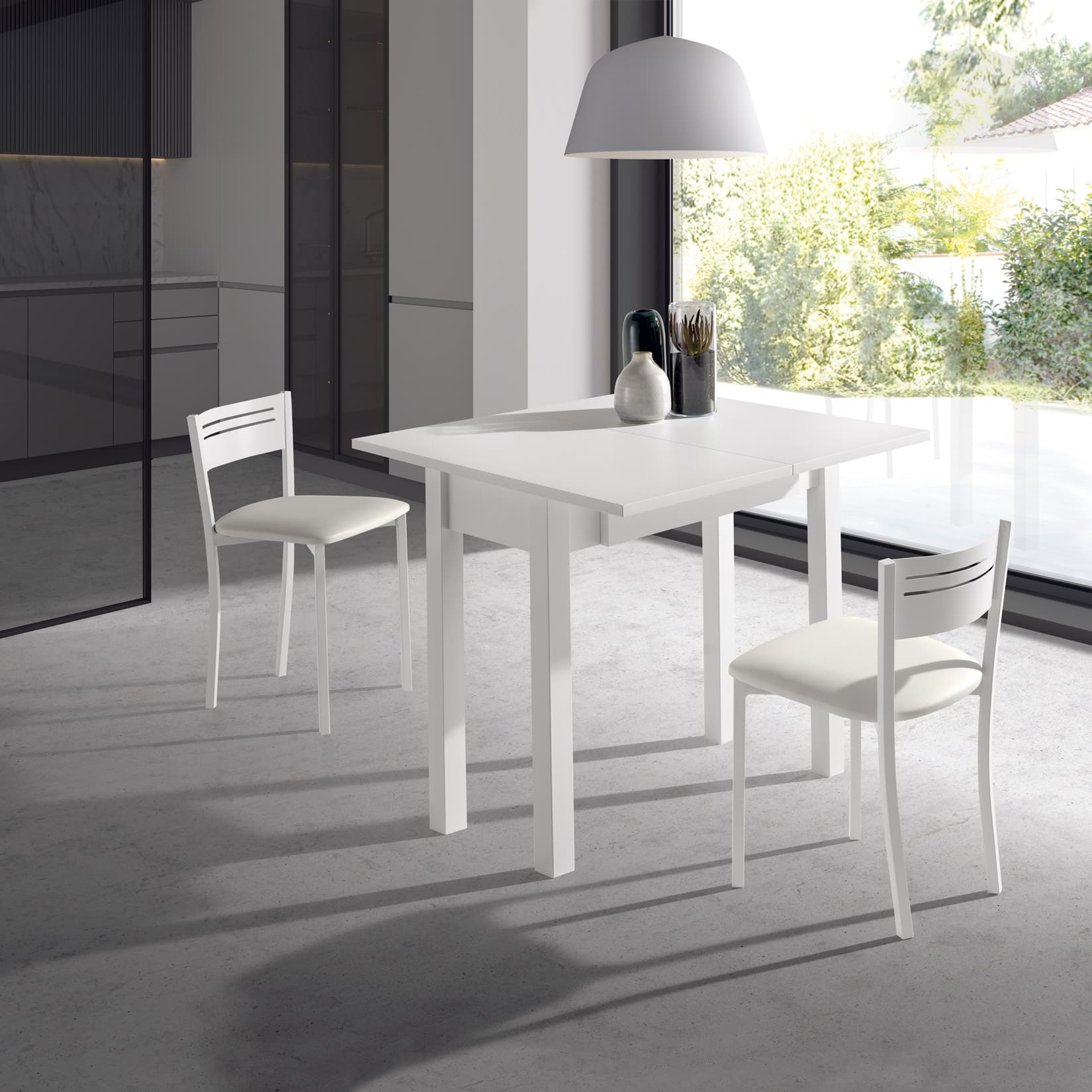 La mesa TREVINCA es una opción práctica y moderna para cocinas que buscan funcionalidad y estilo. Su diseño tipo libro extensible permite adaptarse fácilmente a diferentes necesidades de espacio, ideal para el día a día o para recibir invitados.