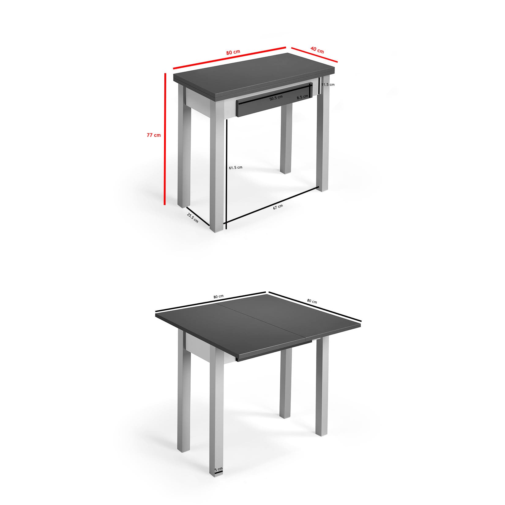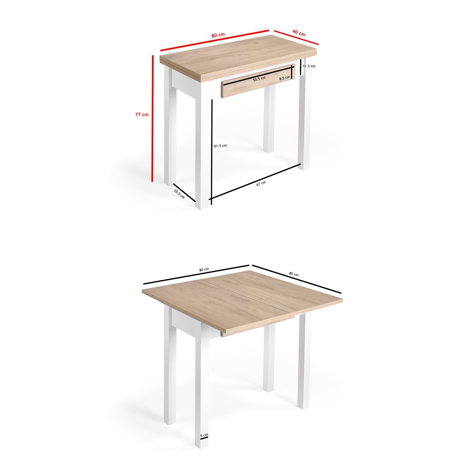 – Mesa cerrada: 80 × 40 cm