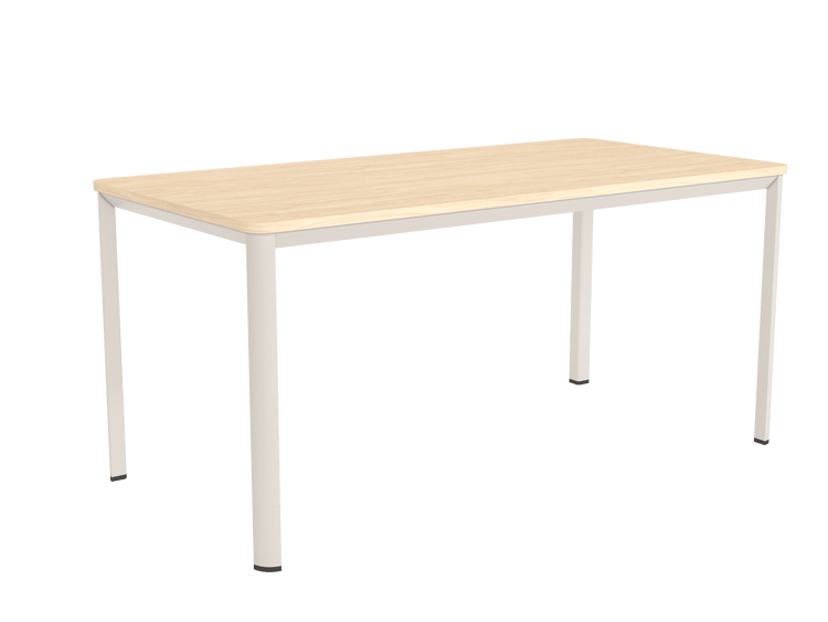 Líneas depuradas y estructura sólida hacen de DUERNA la elección perfecta para un comedor moderno y funcional. Su diseño rectangular garantiza estabilidad y un estilo sofisticado, mientras que su sobre de 22 mm en acabado melamínico, con esquinas redondeadas, aporta durabilidad y seguridad. Disponible con base metálica en marfil o negro, permitiendo adaptarse a distintos estilos de decoración.