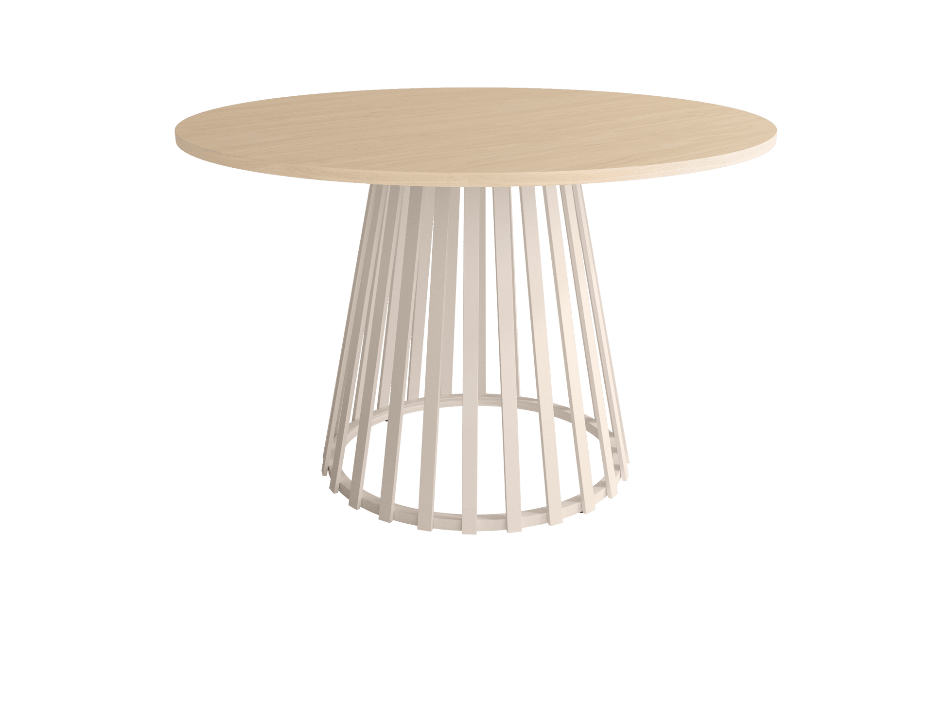 Minimalismo, solidez y estilo se unen en TERA, una mesa redonda fija que eleva cualquier espacio con su diseño moderno y estructura imponente. Su base metálica, disponible en marfil o negro, aporta un toque de sofisticación y estabilidad, mientras que su sobre en acabado melamínico de 22 mm garantiza durabilidad y resistencia.