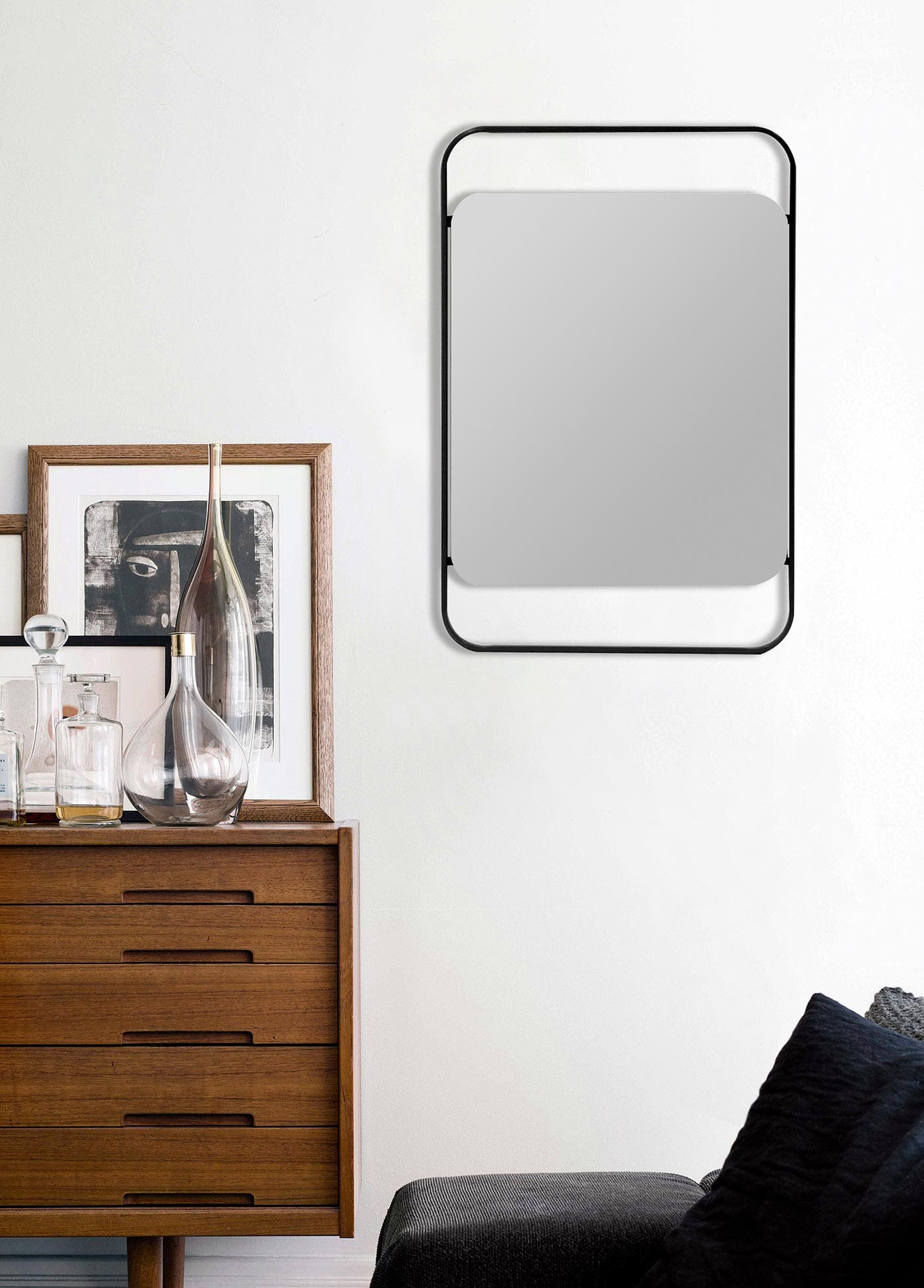 Dale un toque de sofisticación y modernidad a tu hogar con este espejo rectangular de 90x60 cm. Su diseño minimalista, realzado por un marco metálico fino en color negro, lo convierte en una pieza versátil y elegante. Perfecto para el salón, dormitorio, recibidor o baño, combina funcionalidad y estilo para adaptarse a cualquier ambiente.