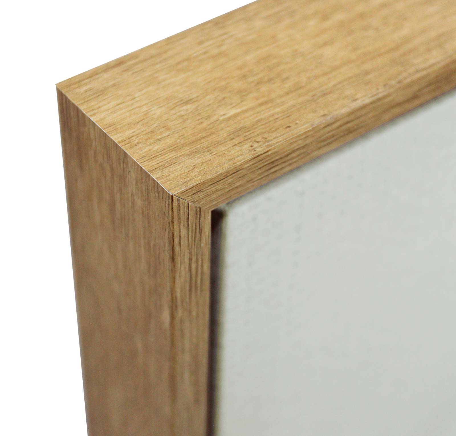 Este diseño decorativo en espuma de poliuretano con relieve geométrico 3D y acabado blanco roto aporta un toque moderno y minimalista a cualquier espacio. La base de tela sintética de poliéster, con impresión en tinta al agua en color crema, ofrece una apariencia texturizada en plano. El marco en MDF con impresión en acabado madera en tono natural y la trasera reforzada proporcionan estabilidad y durabilidad, haciendo de esta pieza una opción ideal para ambientes contemporáneos.