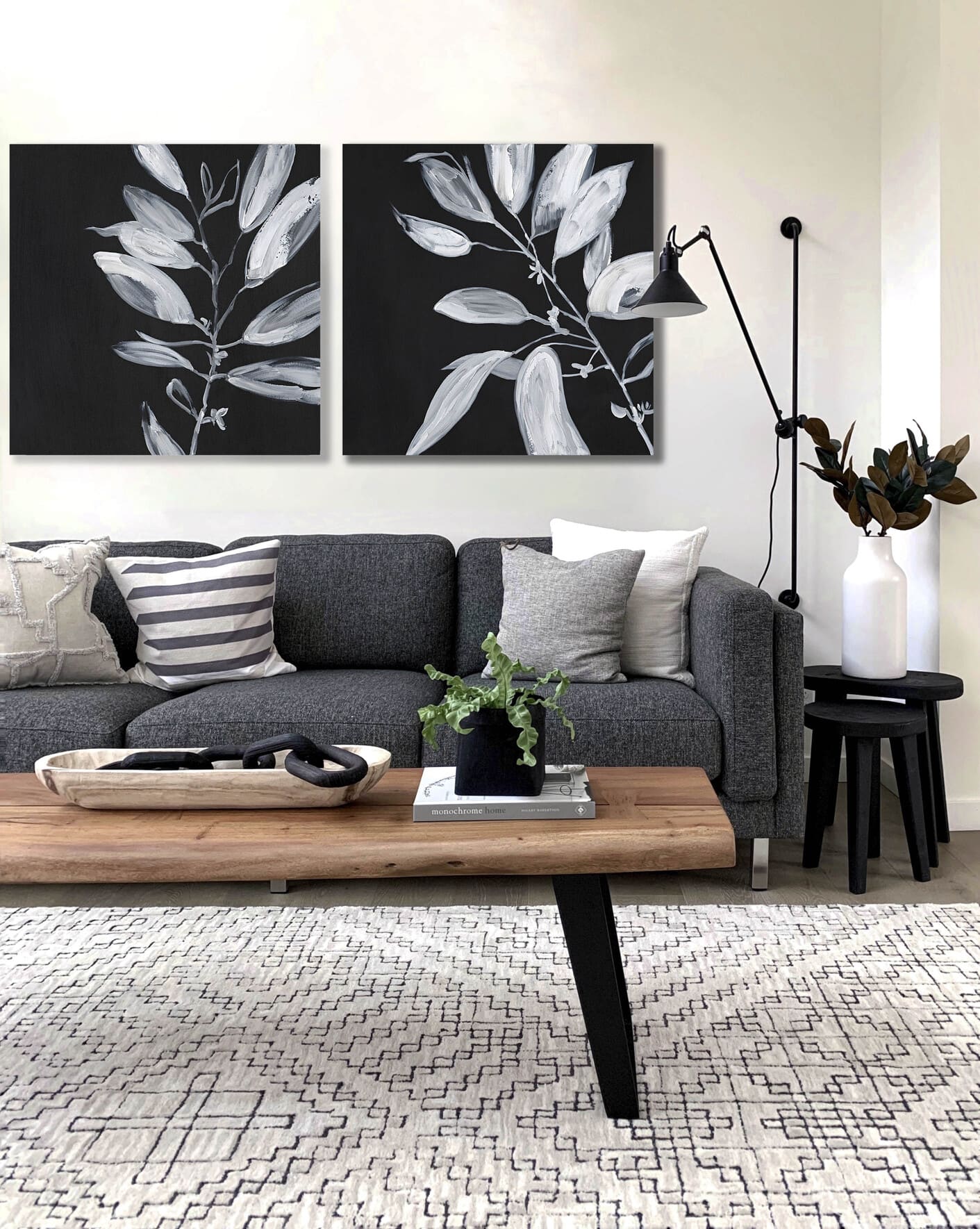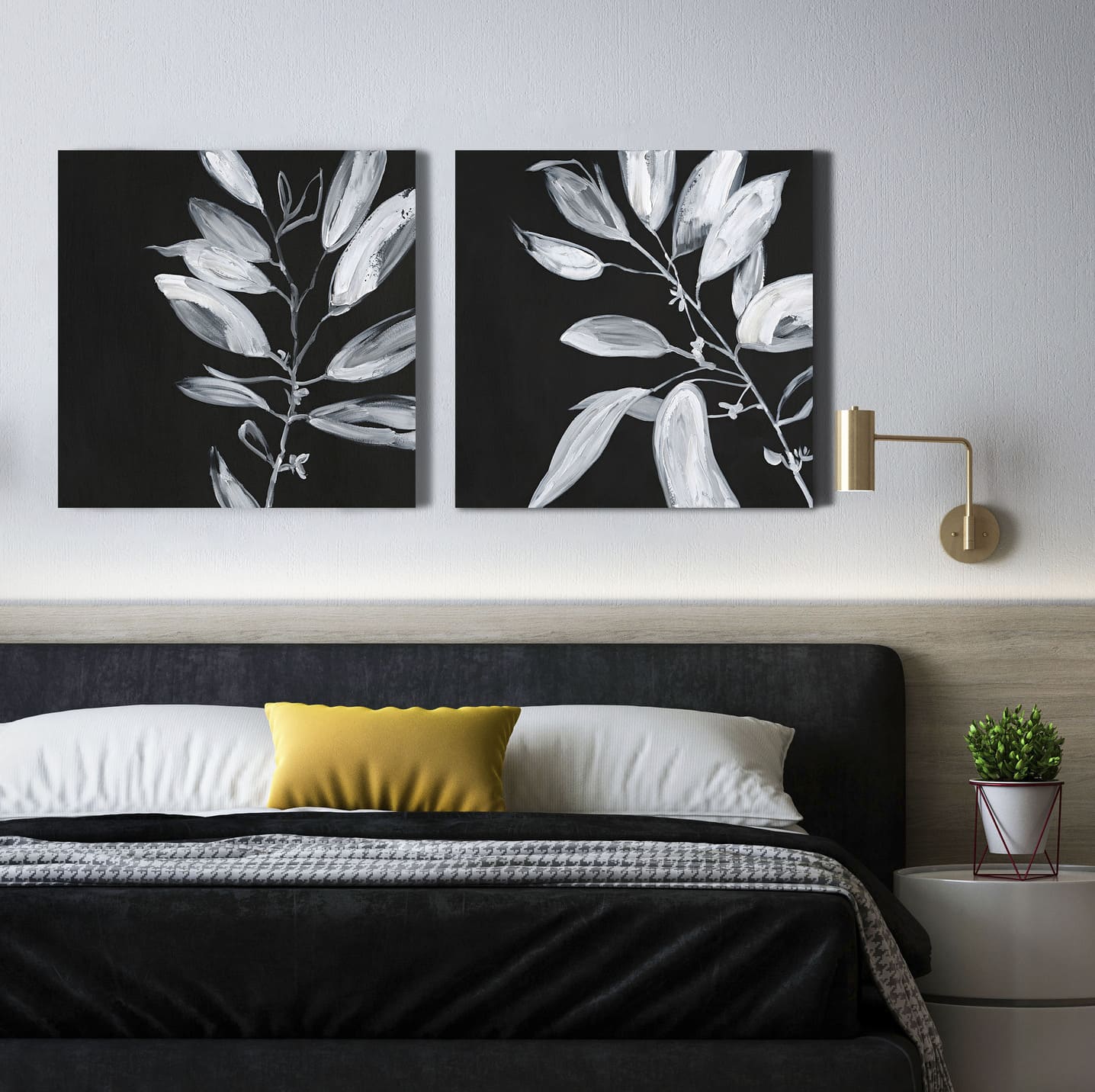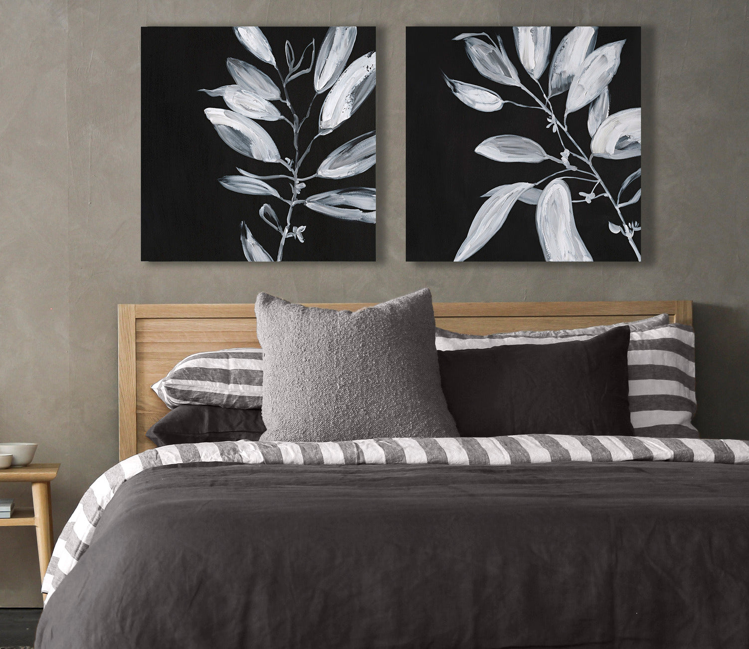 CRUZ - Set de 2 cuadros con motivo de hojas. Impresión con retoque.