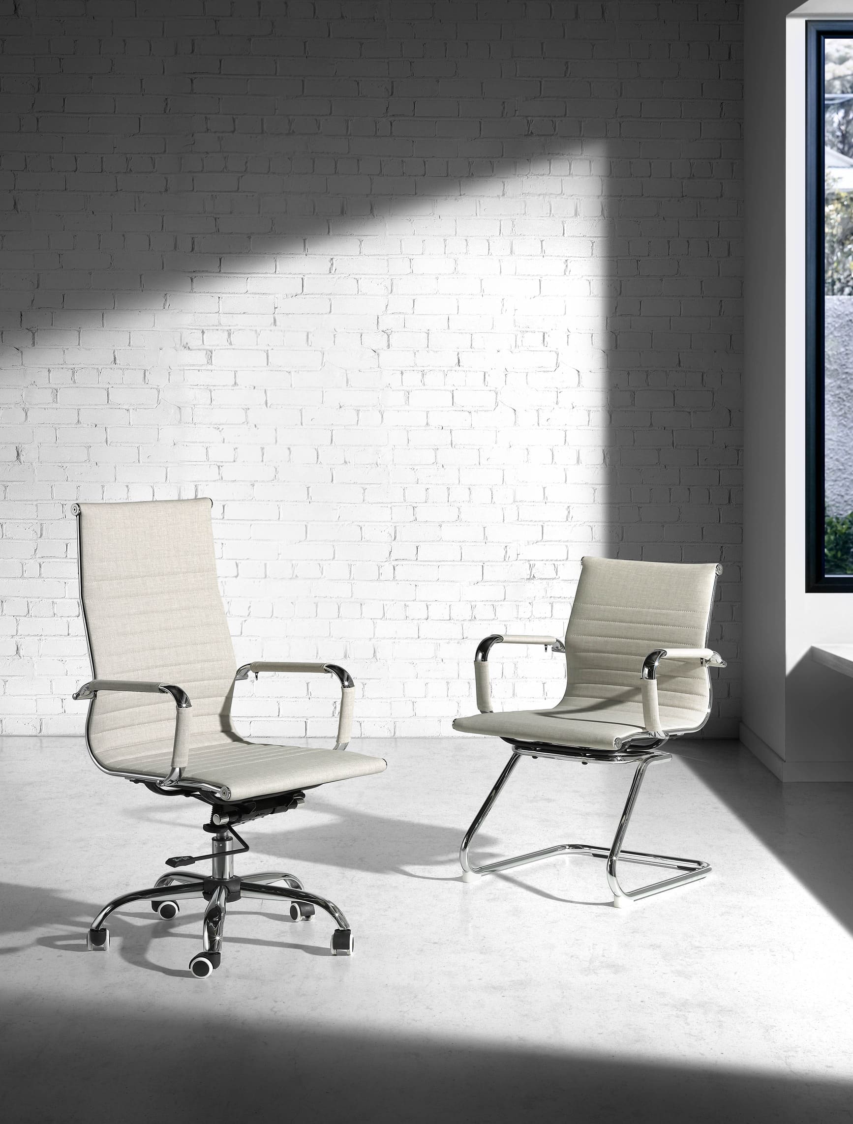 La silla confidente JANDÍA es una opción elegante y funcional para salas de espera, reuniones o despachos. Está disponible en polipiel beige, negra, blanca o gris, con cubrebrazos tapizados para un extra de confort. Su estructura metálica garantiza robustez y estabilidad, mientras que su diseño limpio y moderno se adapta fácilmente a distintos entornos profesionales.