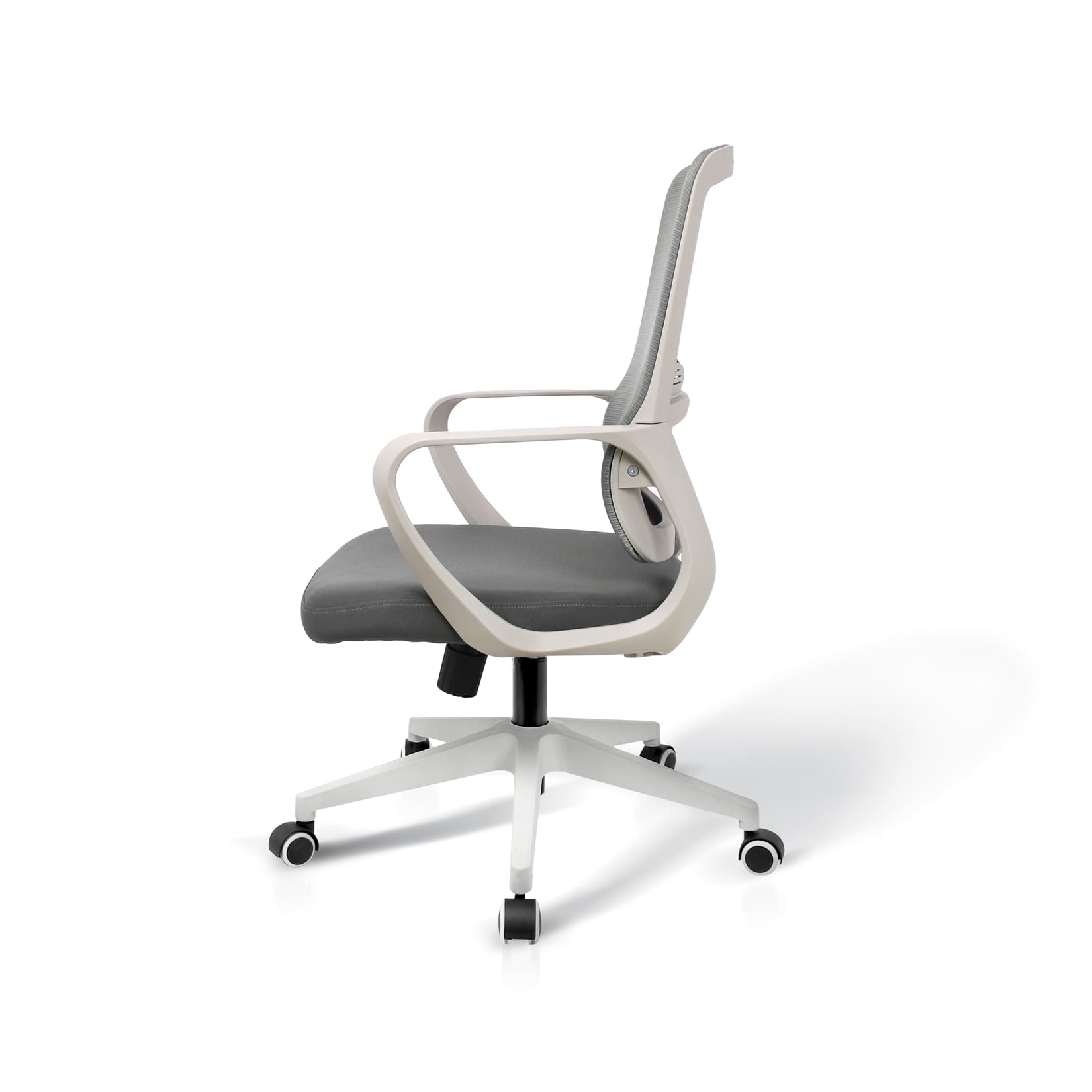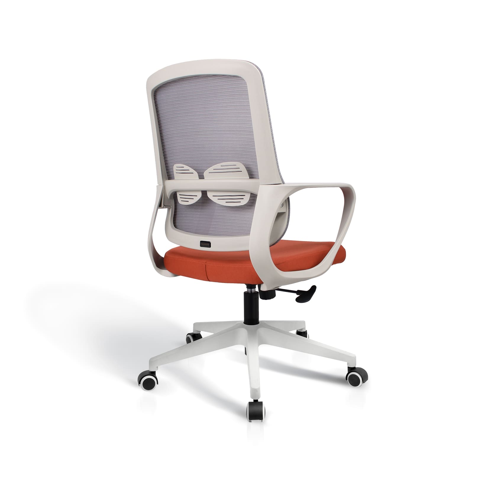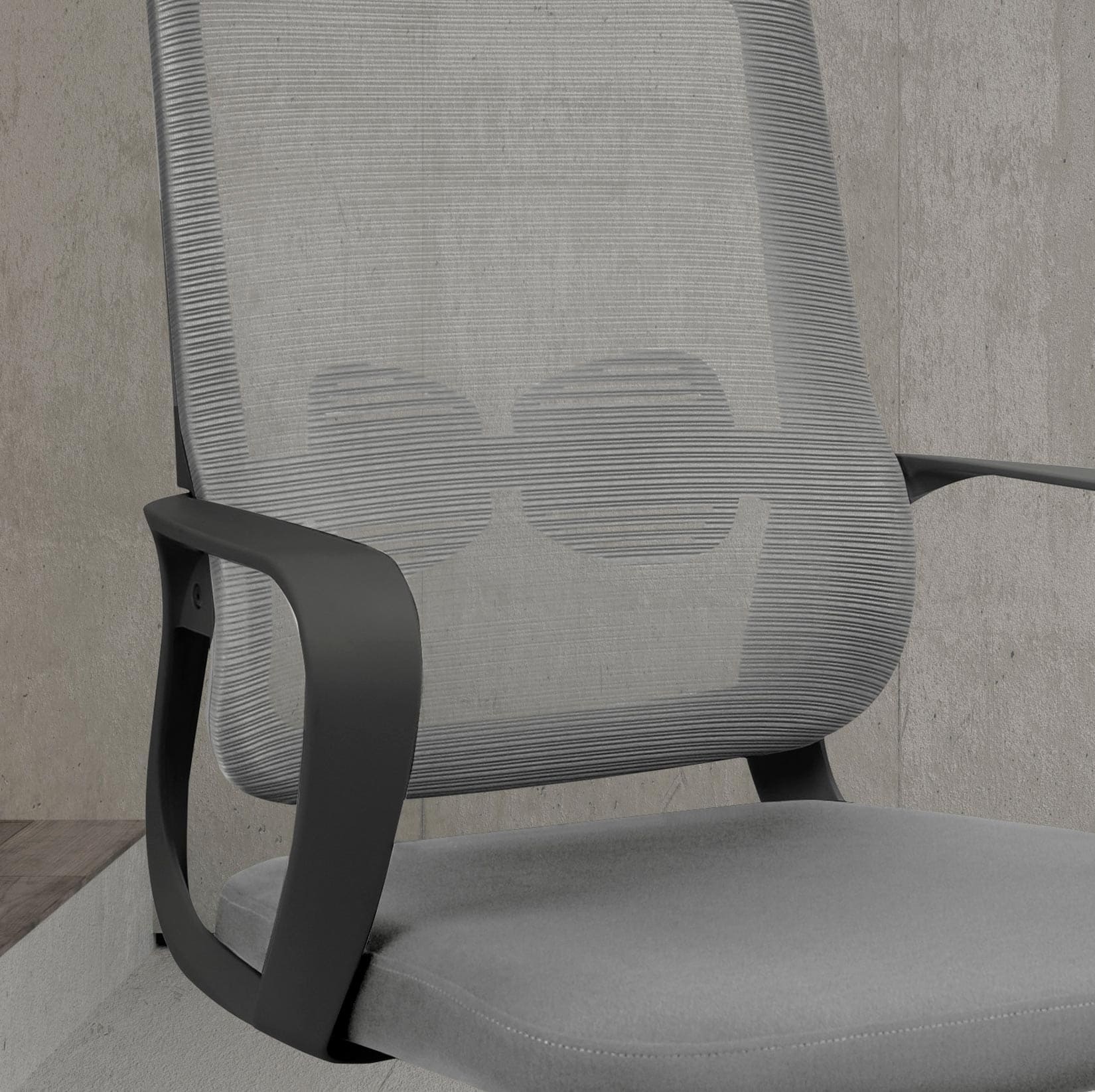 La silla CHULLO destaca por su diseño funcional y sus acabados modernos. Su respaldo transpirable favorece la circulación del aire, mientras que el asiento tapizado proporciona comodidad durante toda la jornada laboral.