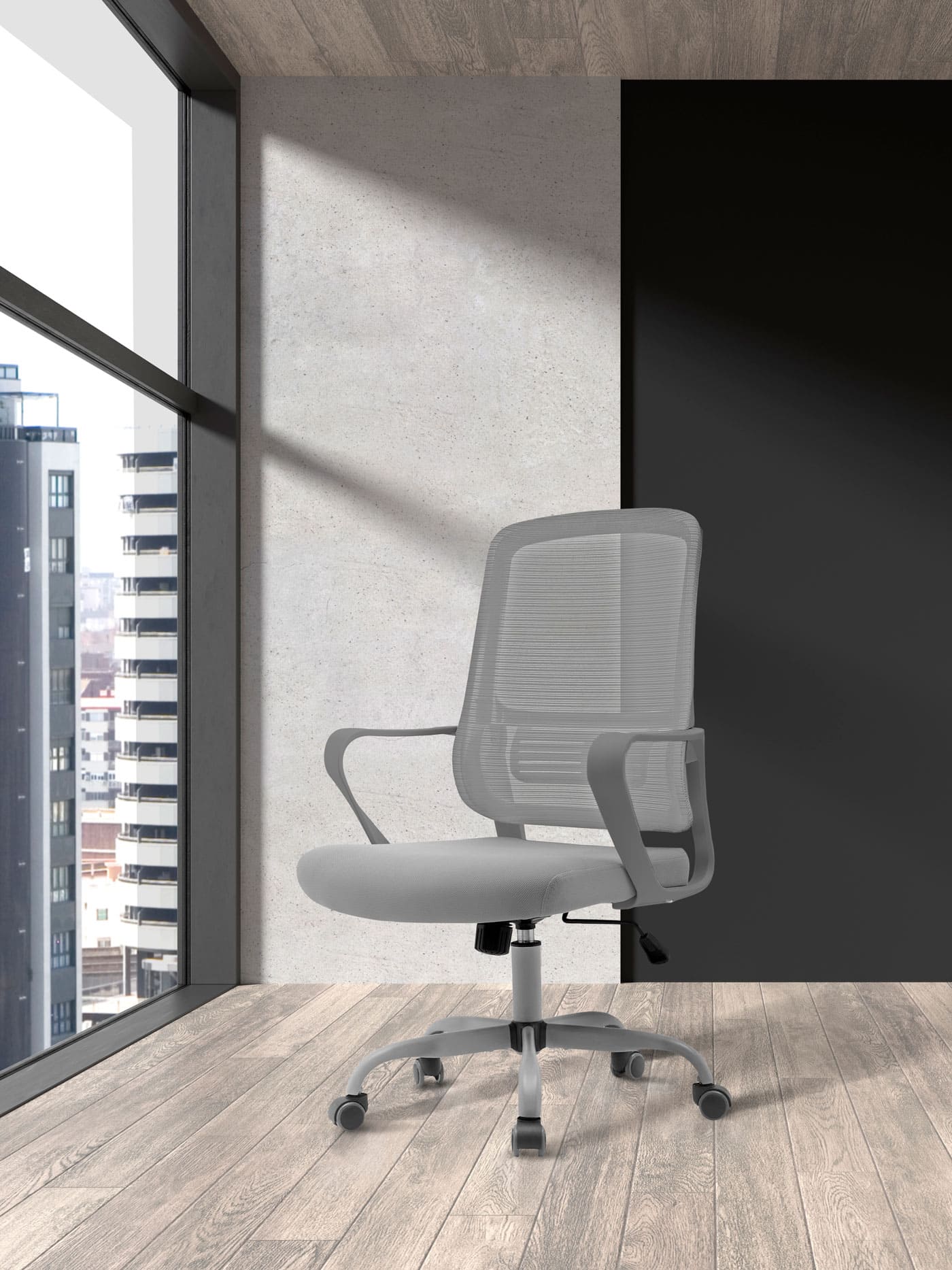 La silla ALCAZABA combina comodidad y resistencia en un diseño moderno pensado para el día a día en el escritorio. Su respaldo transpirable promueve una adecuada ventilación, mientras que el asiento tapizado ofrece suavidad y confort prolongado.