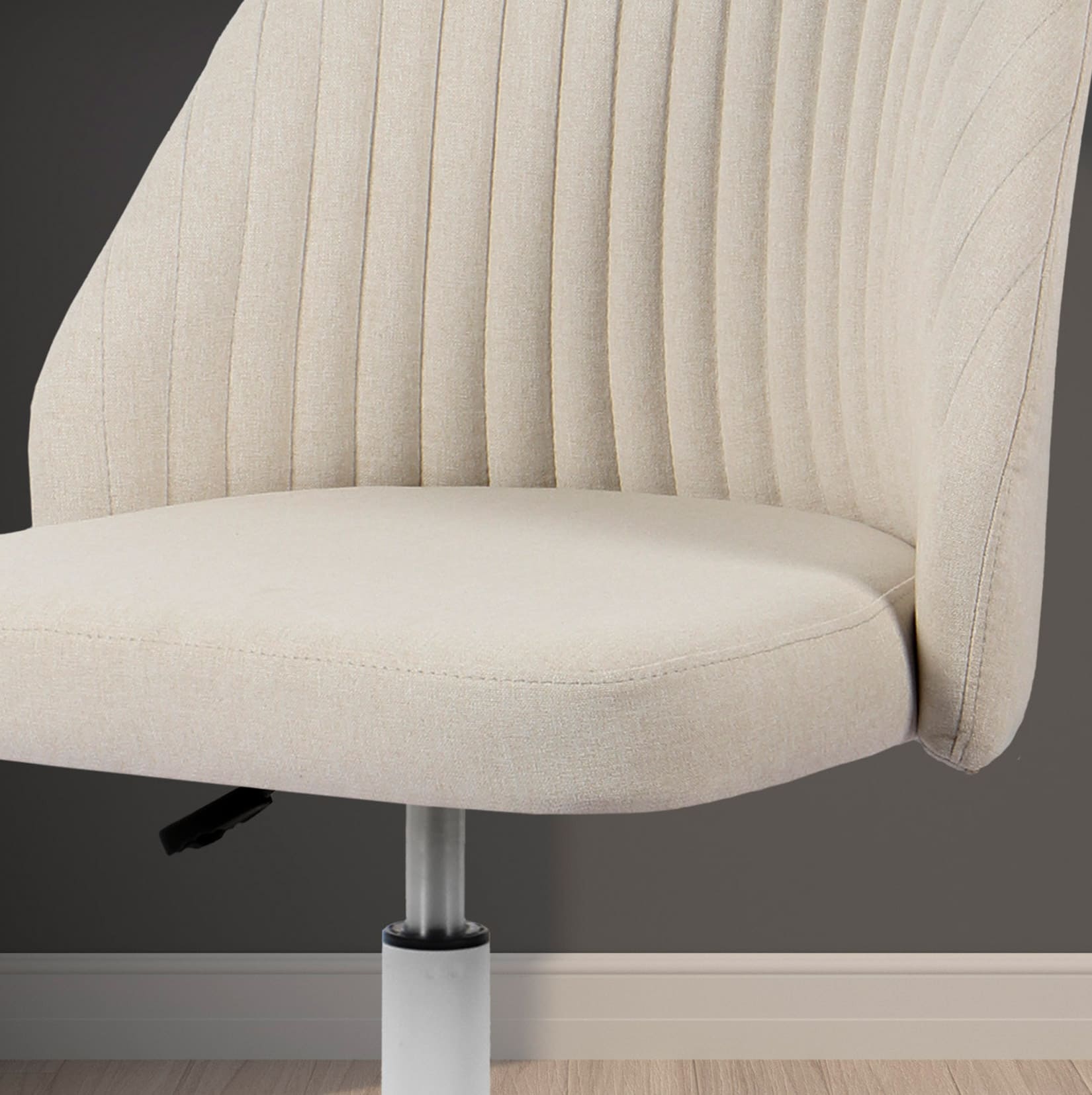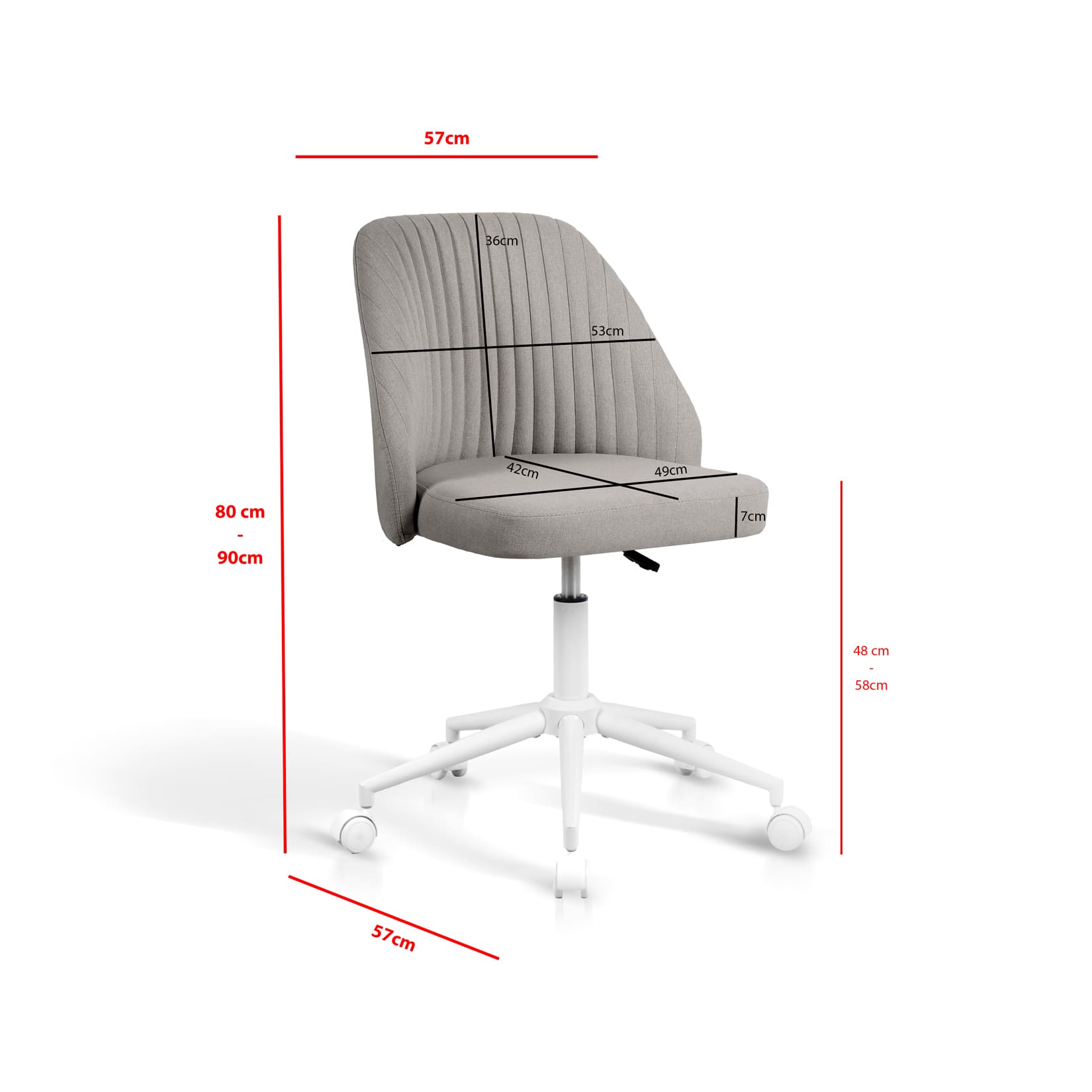 La silla MOLATÓN ofrece una solución práctica y estilizada para el estudio o el trabajo. Disponible en tela gris o beige, presenta un diseño sin brazos con respaldo y asiento tapizados que proporcionan comodidad en sesiones prolongadas. Su sistema de regulación de altura mediante pistón de gas permite ajustar la posición según tus necesidades. Además, cuenta con ruedas de silicona, ideales para un desplazamiento suave y seguro sobre cualquier tipo de suelo, incluido el parquet.
