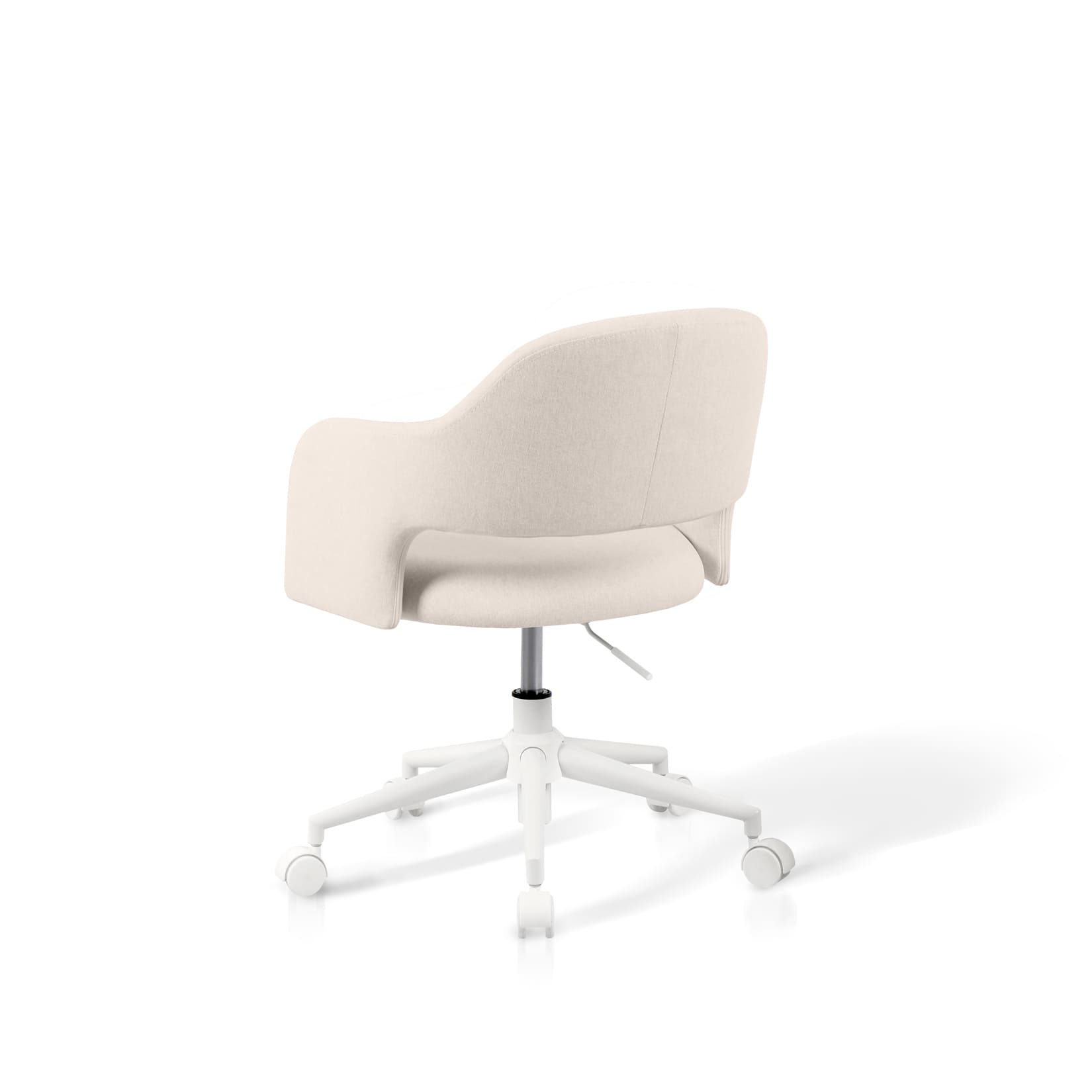 Diseñada para combinar estética y funcionalidad, la silla SELVA destaca por su forma envolvente y su estilo tipo butaca, perfecta para estudiar o trabajar con estilo y confort. Su base blanca con ruedas de nylon ofrece movilidad suave, mientras que el sistema de regulación mediante pistón de gas permite ajustar la altura con facilidad.
