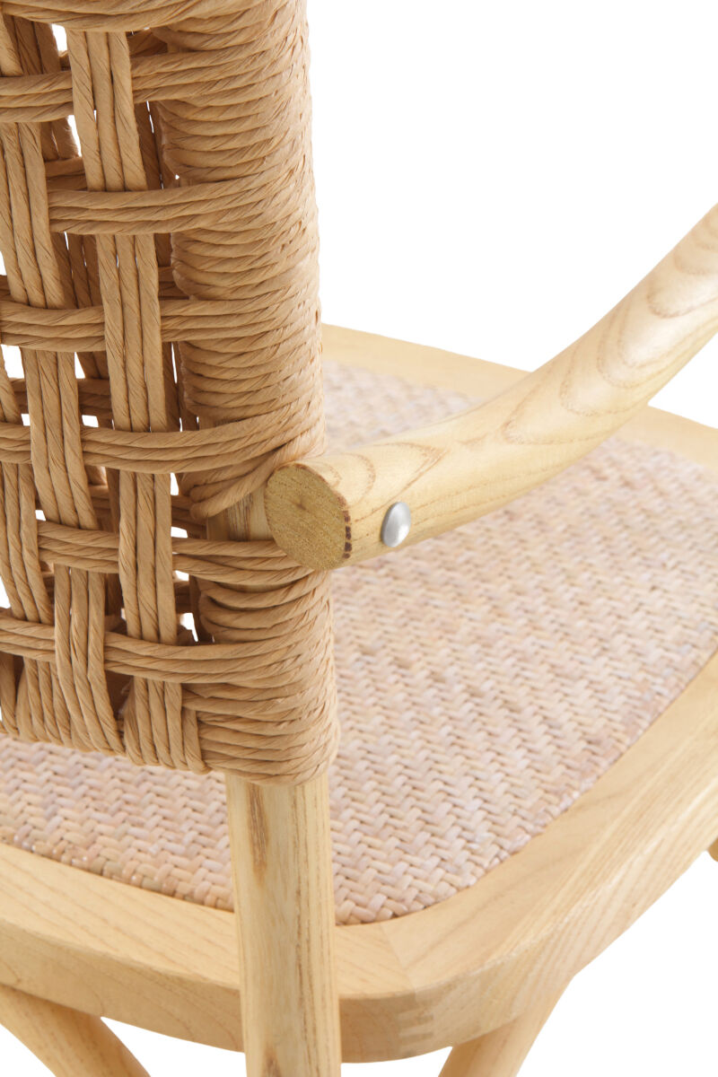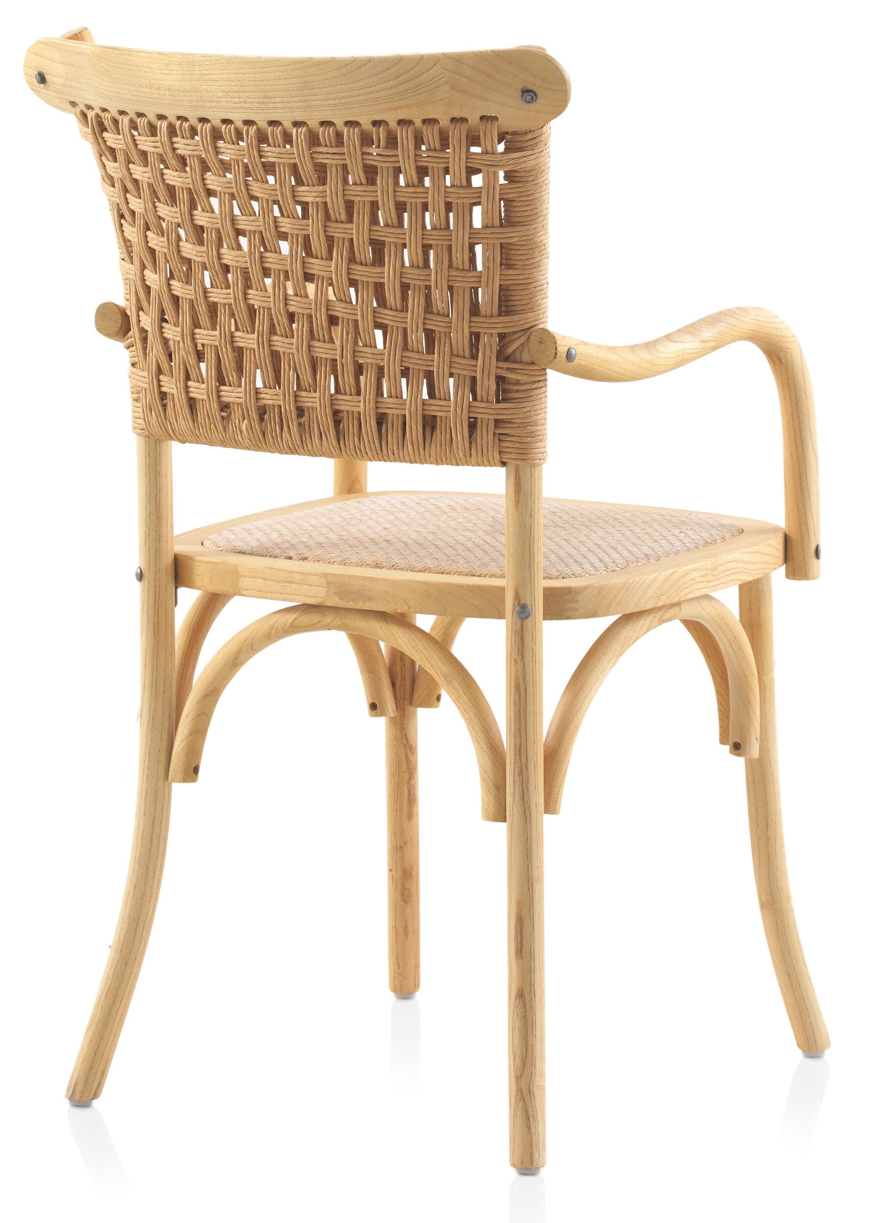 El sillón CONCHIQUINA destaca por su estructura de madera de olmo maciza y su asiento y respaldo en fibra trenzada, que aportan carácter artesanal y natural al espacio. Gracias a sus apoyabrazos integrados y respaldo alto, ofrece un plus de confort en ambientes de comedor, salón o terraza cubierta. No requiere montaje.