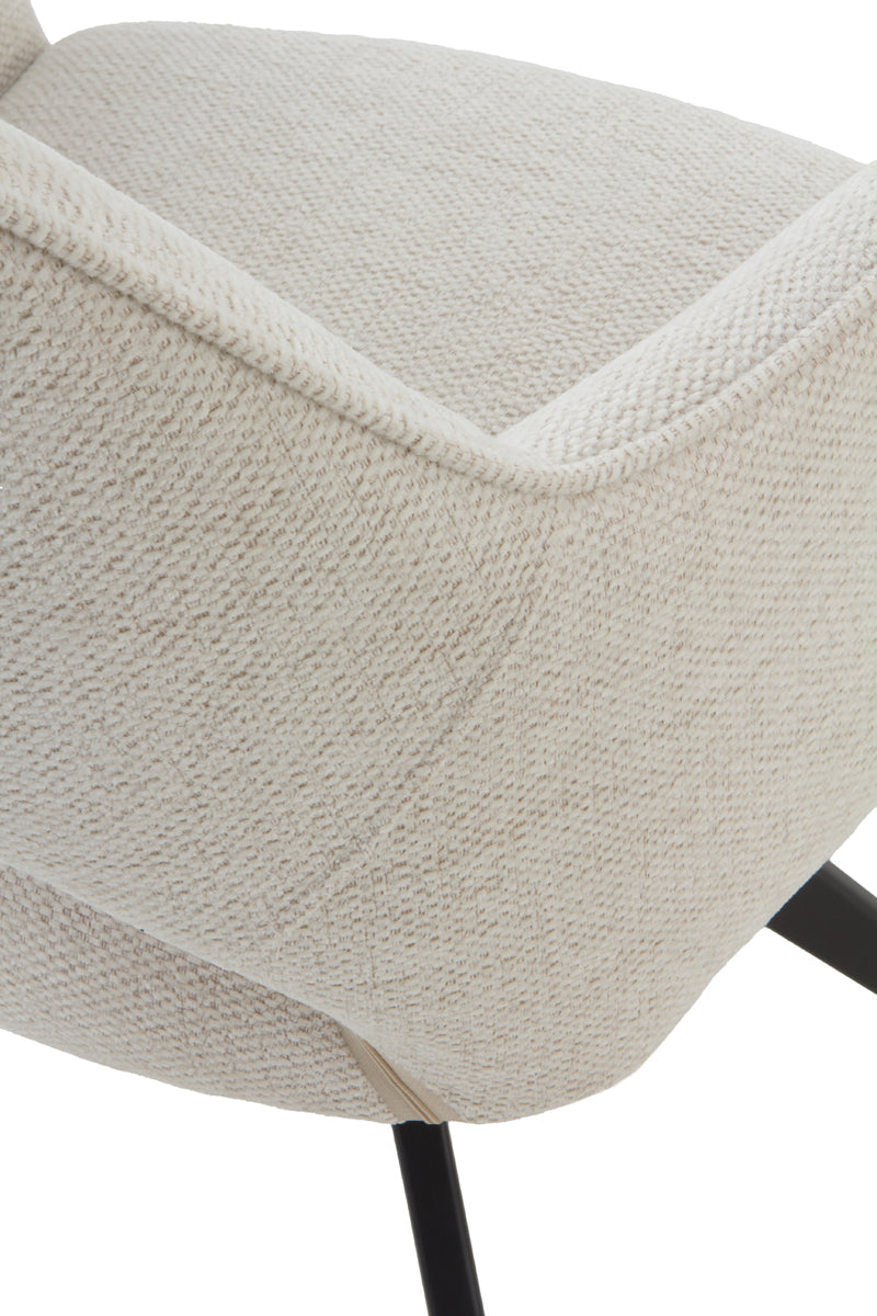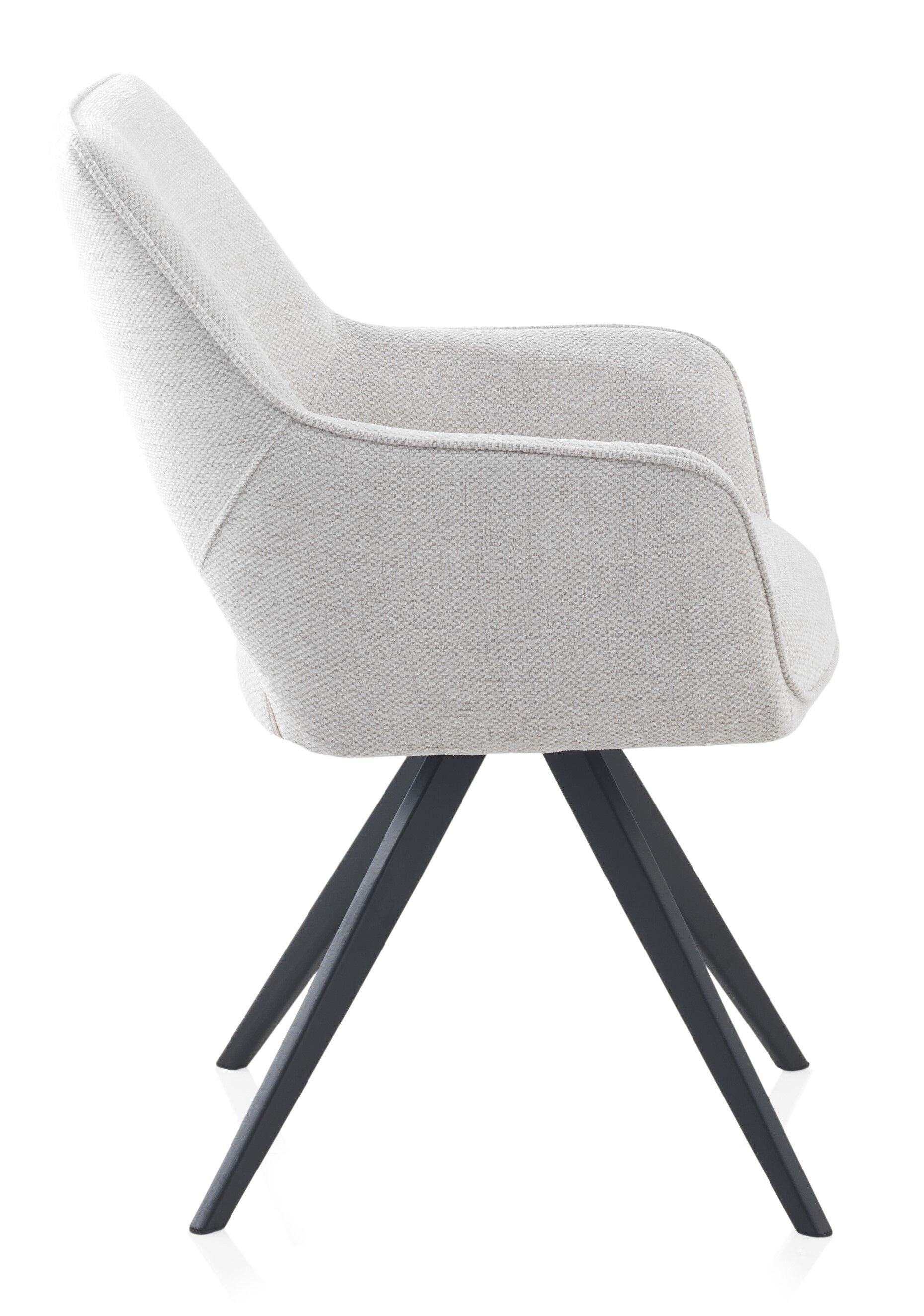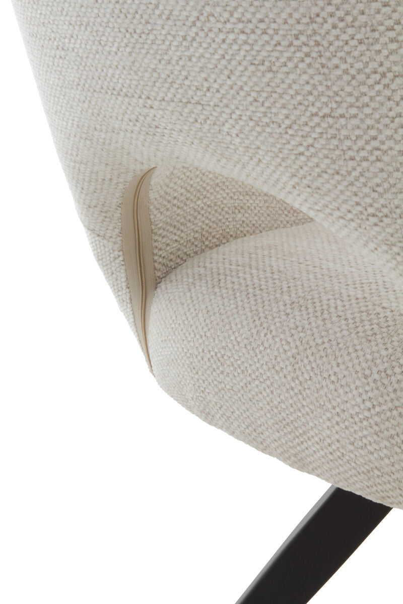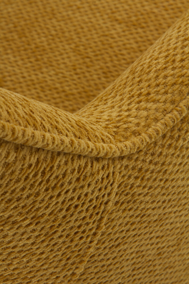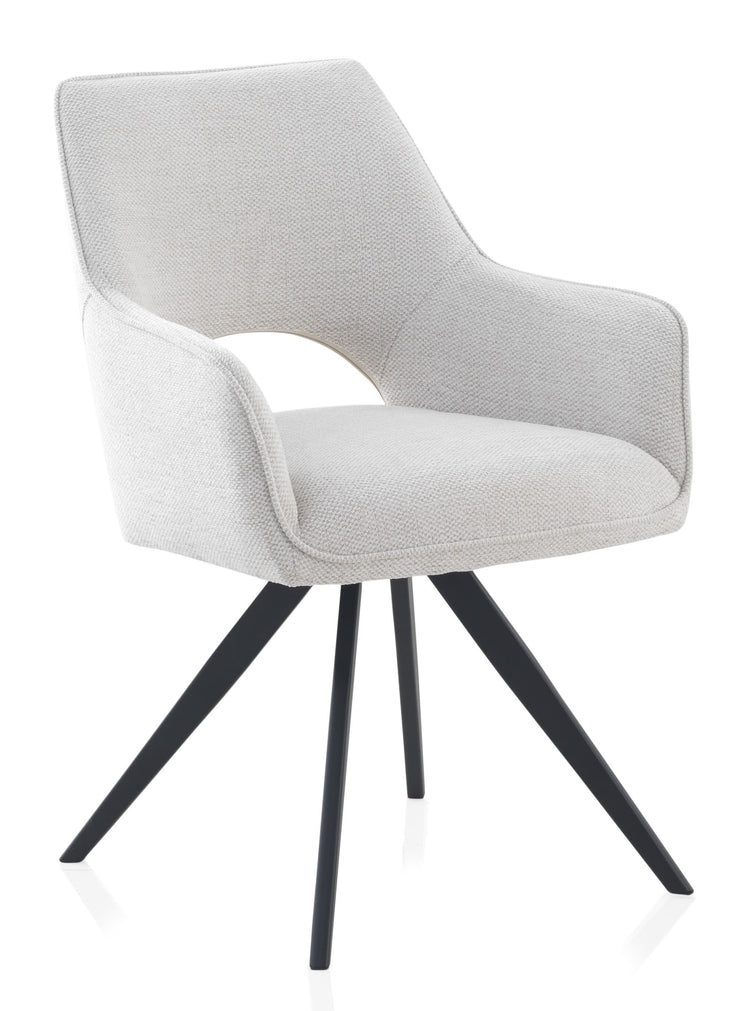 El sillón giratorio VENEIRO combina funcionalidad y diseño moderno. Su sistema giratorio con retorno automático a la posición inicial ofrece comodidad y practicidad en el uso diario. Está tapizado en tejido 100% poliéster disponible en color beige o mostaza, y se apoya sobre una estructura metálica negra que aporta estabilidad y estilo.