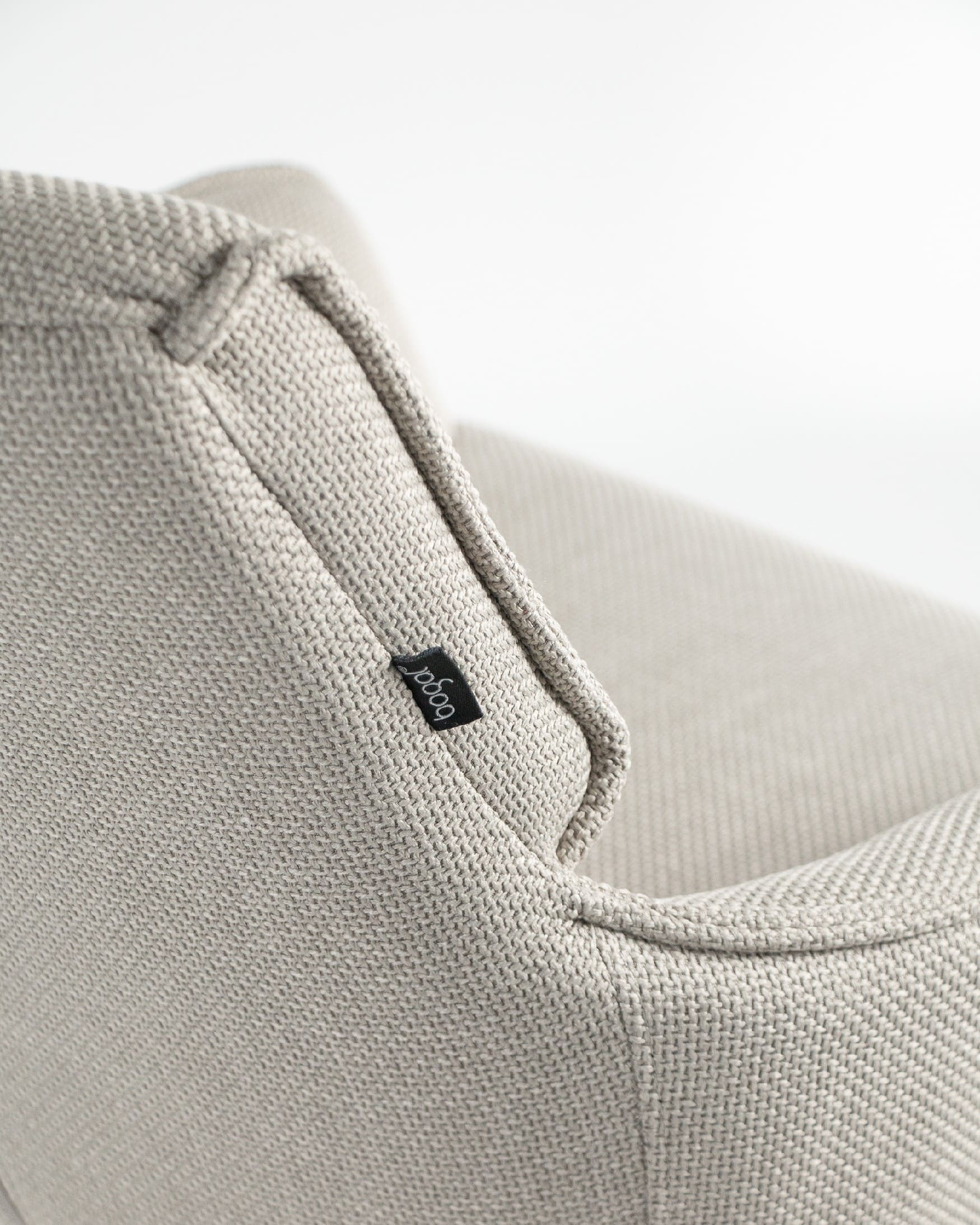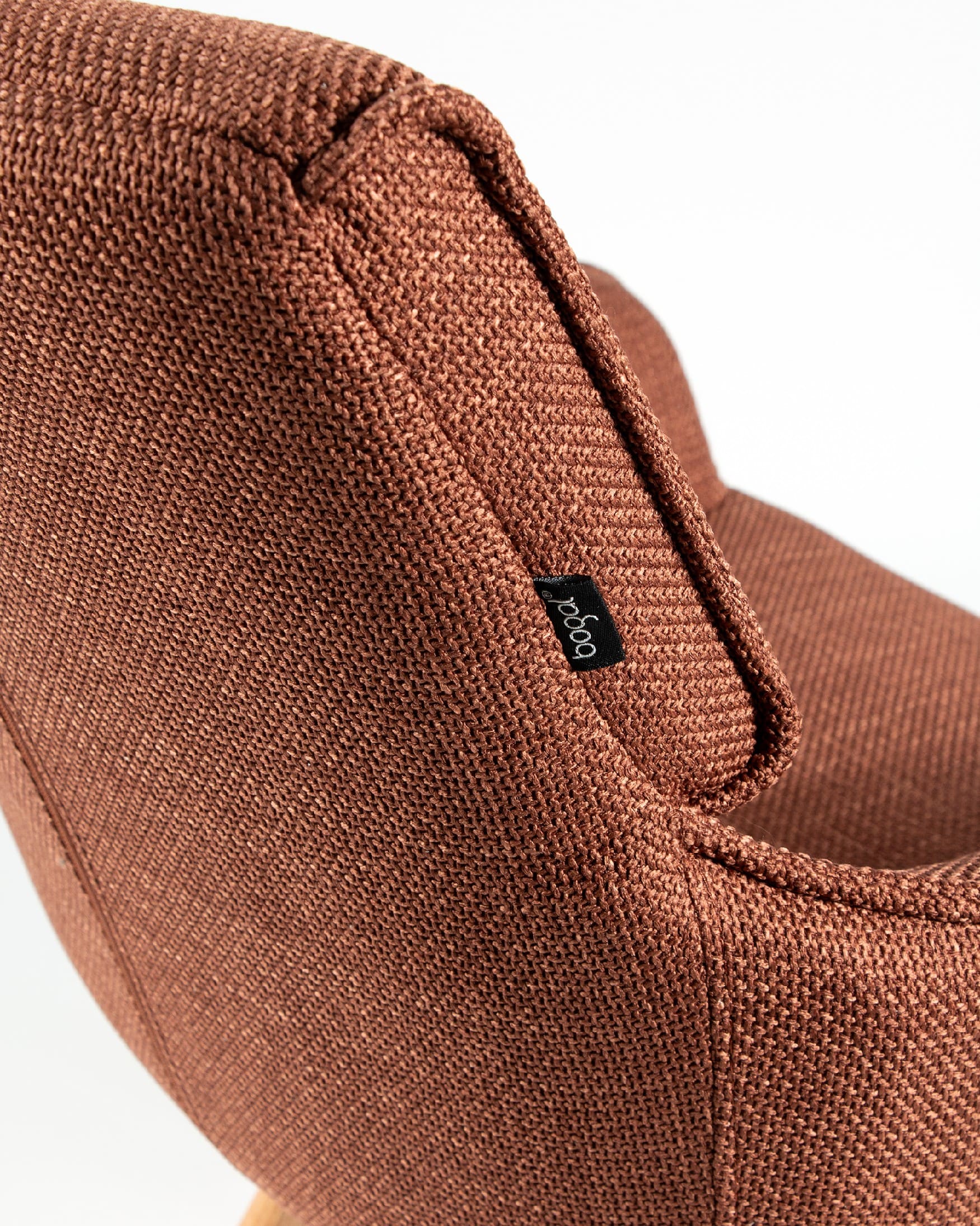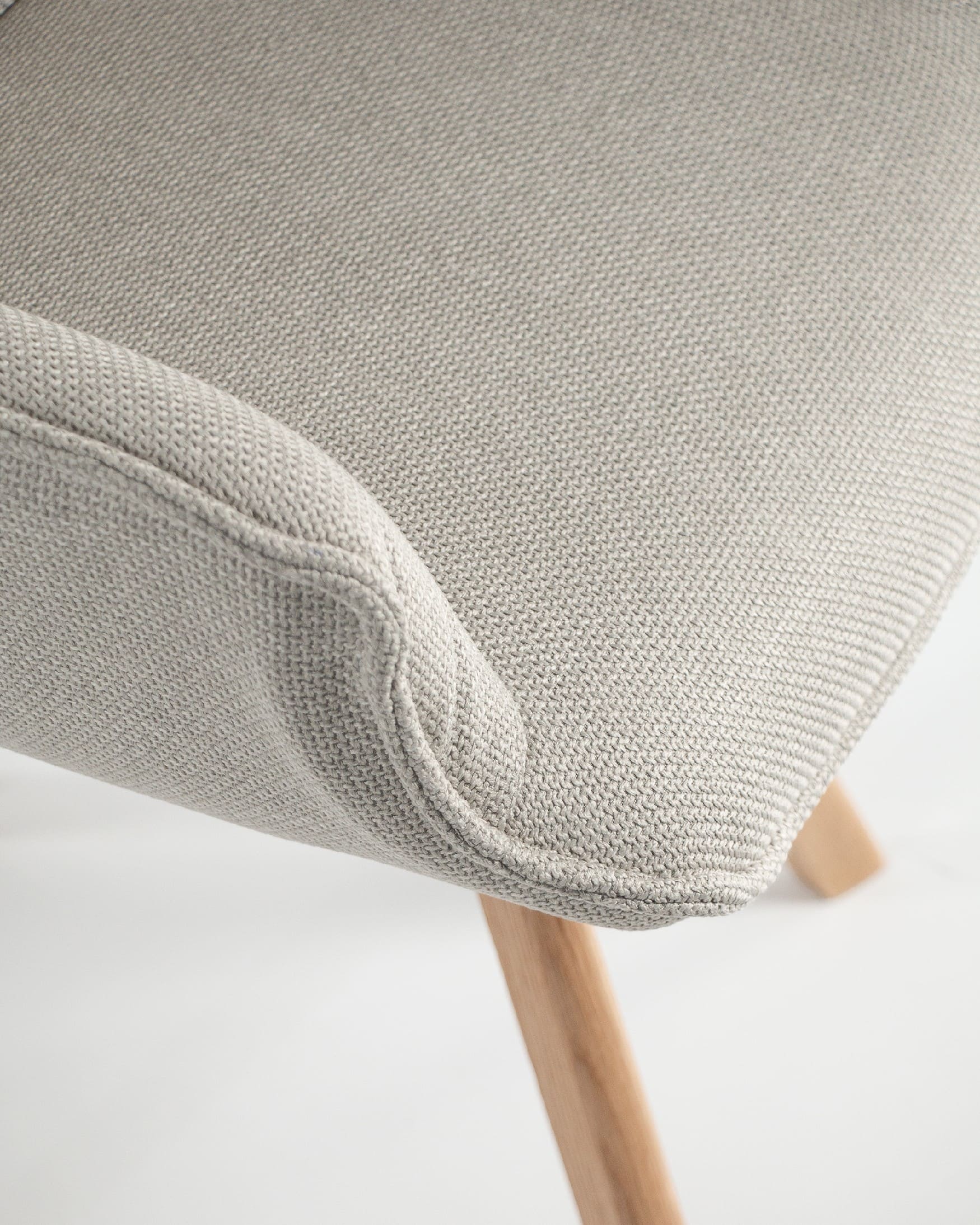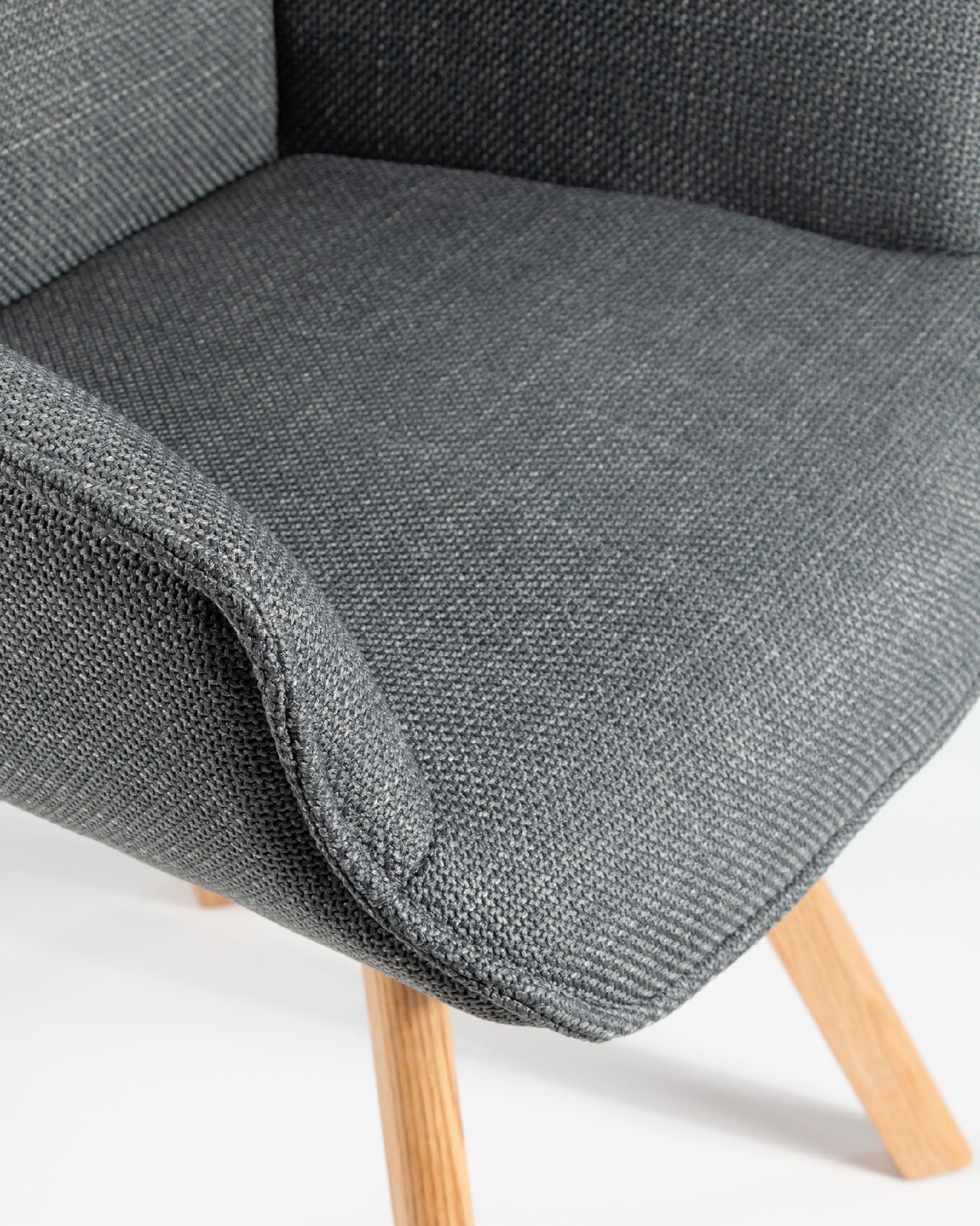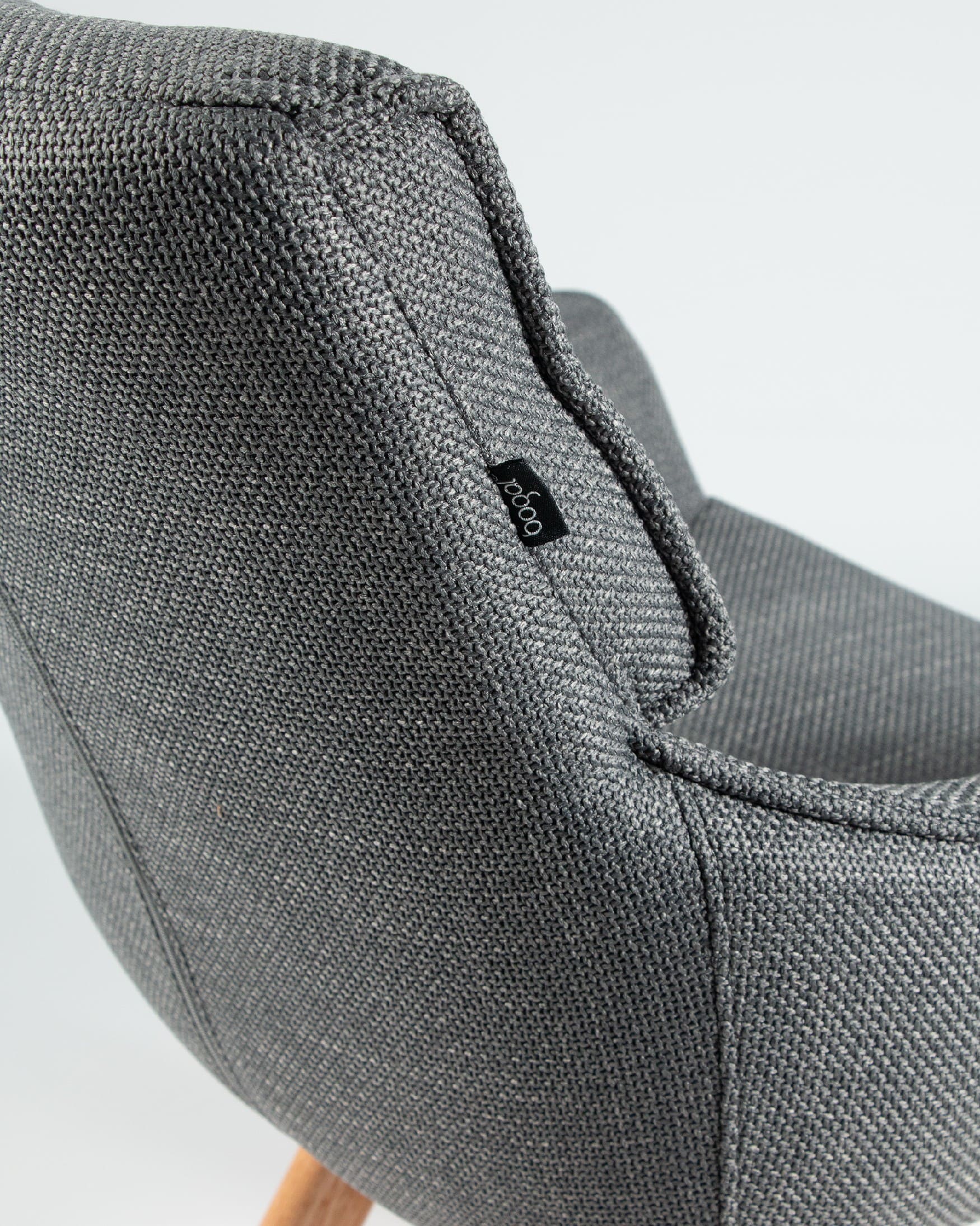 El asiento y el respaldo están tapizados en un tejido 100% poliéster, con un peso de 360 g/m². Este material es robusto, resistente y no elástico, con una superficie ligeramente brillante y estructurada, ofreciendo un tacto sólido y estable. Además, cuenta con certificaciones de calidad ECO y OEKO-TEX®️ STANDARD 100, garantizando su seguridad y sostenibilidad.