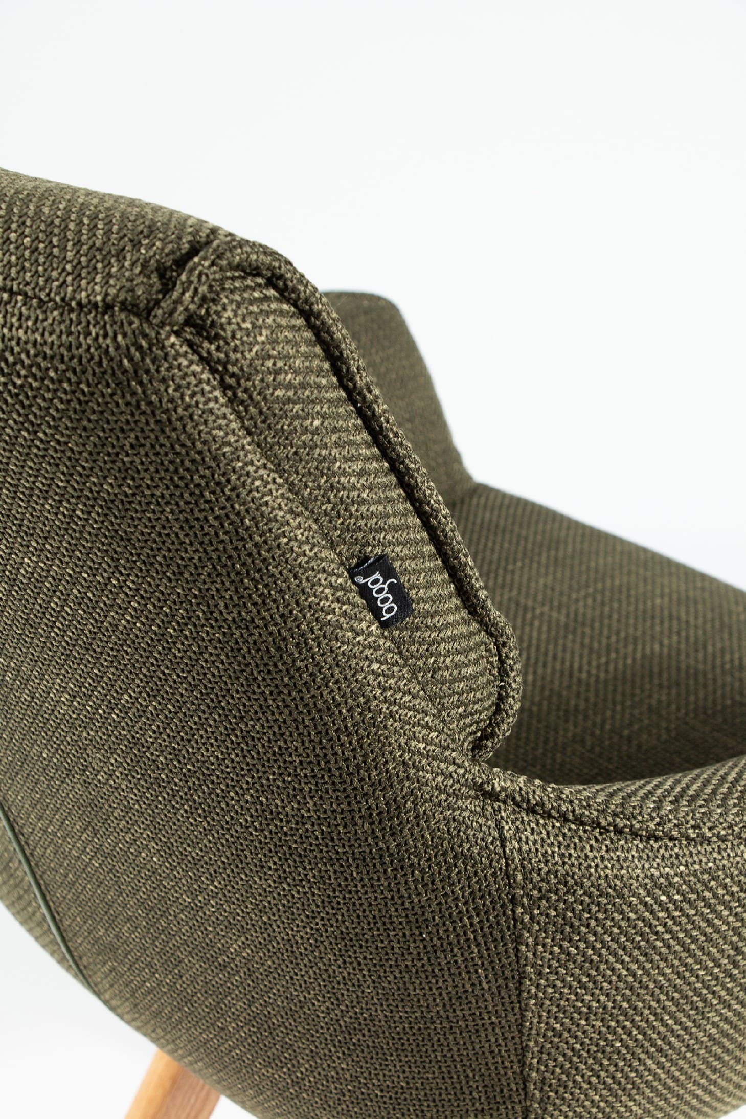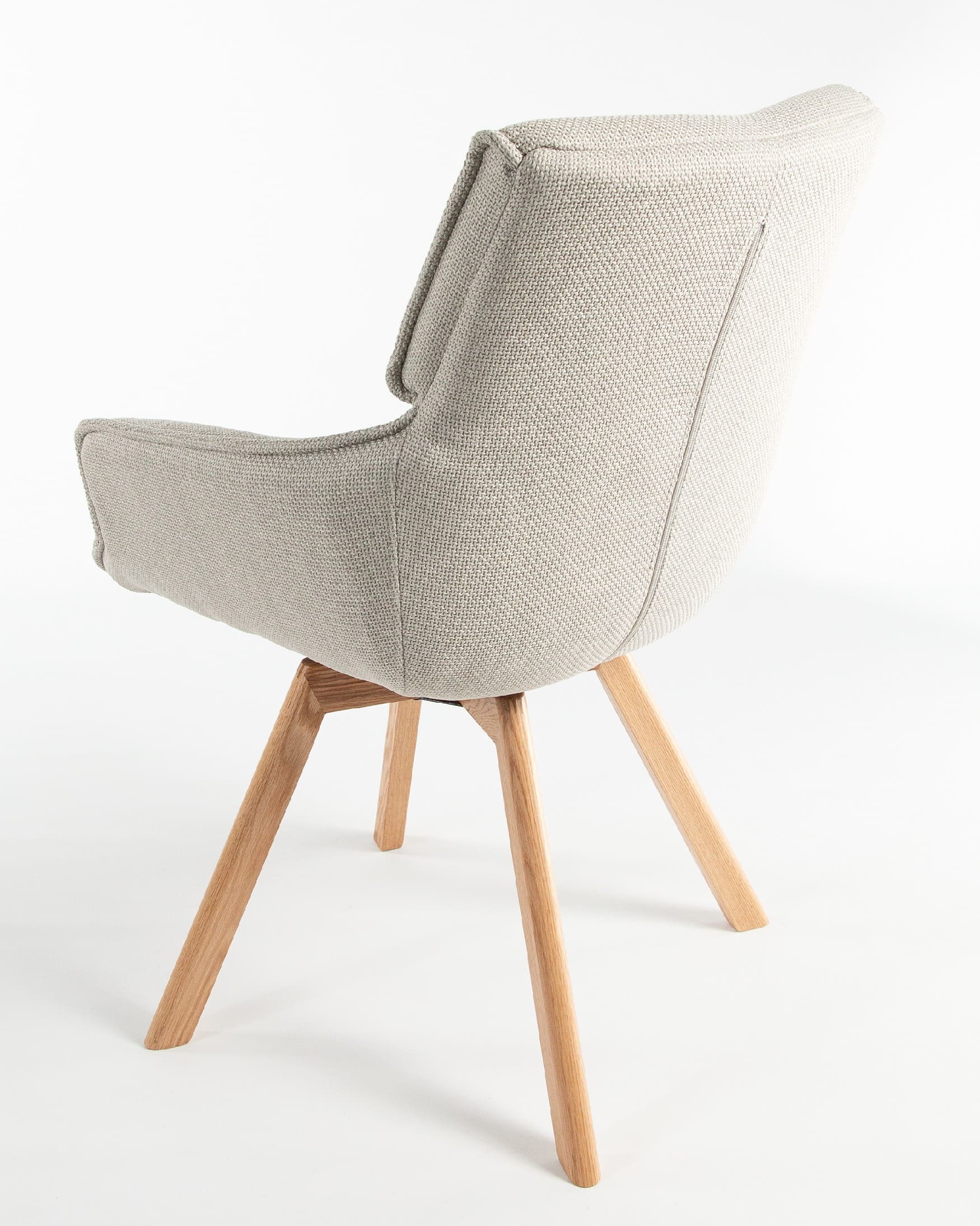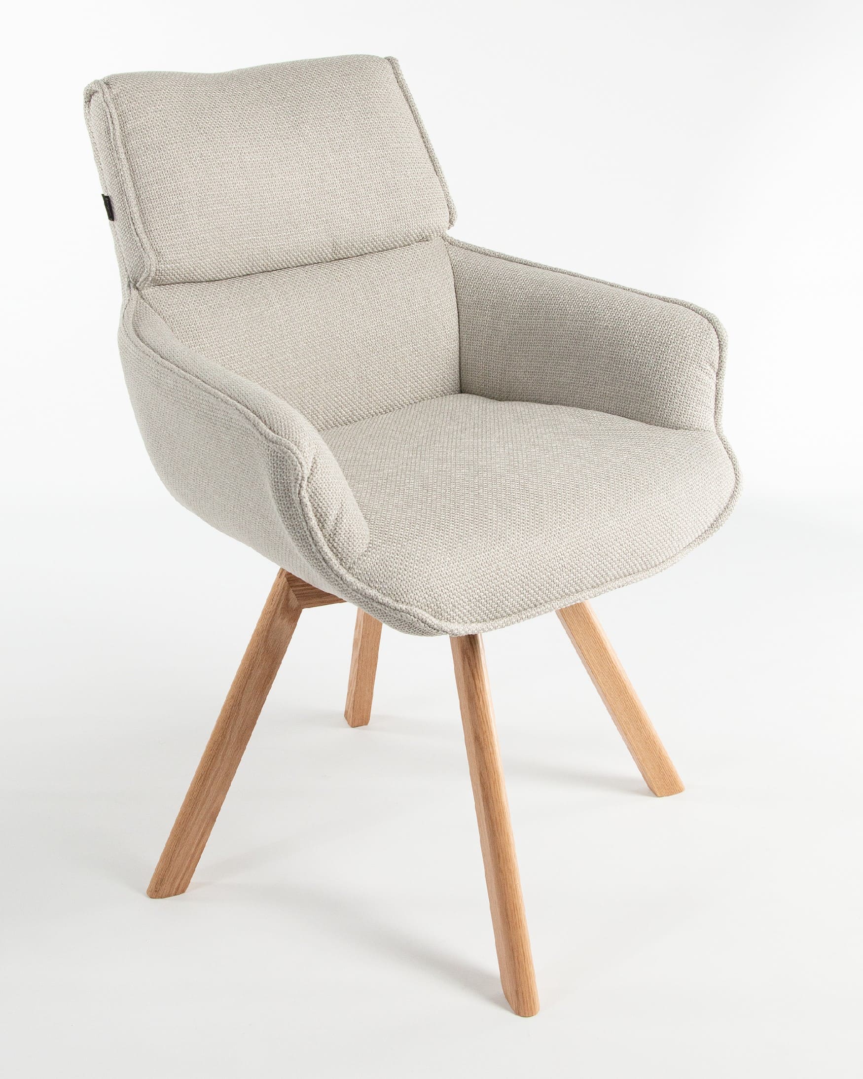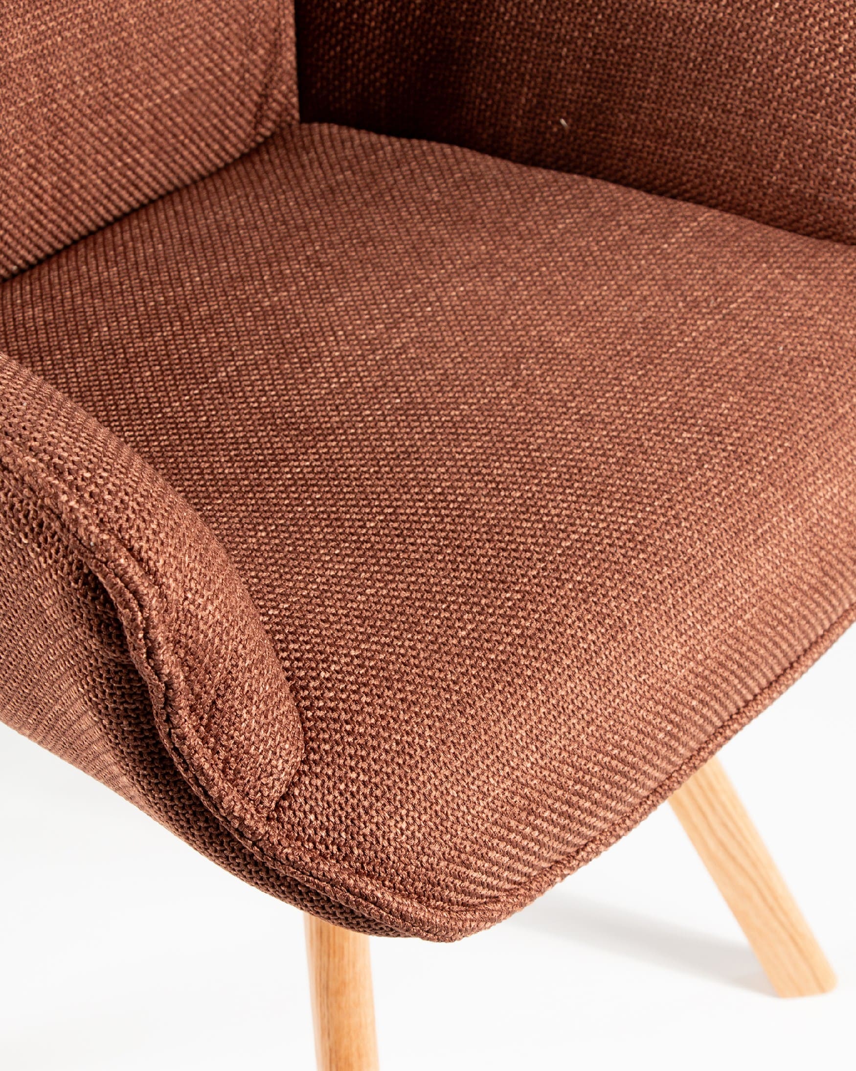 El asiento y el respaldo están tapizados en un tejido 100% poliéster, con un peso de 360 g/m². Este material es robusto, resistente y no elástico, con una superficie ligeramente brillante y estructurada, ofreciendo un tacto sólido y estable. Además, cuenta con certificaciones de calidad ECO y OEKO-TEX®️ STANDARD 100, garantizando su seguridad y sostenibilidad.