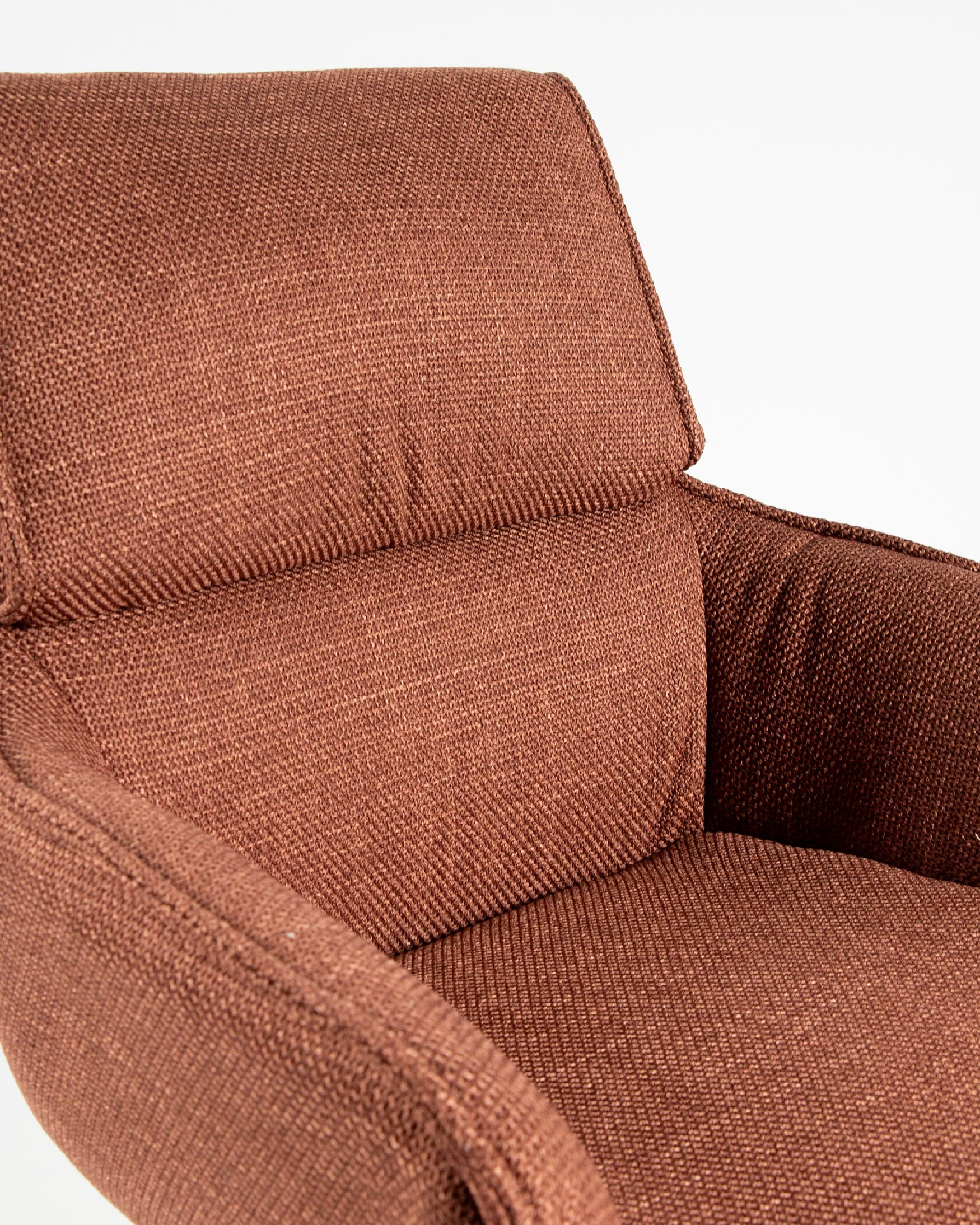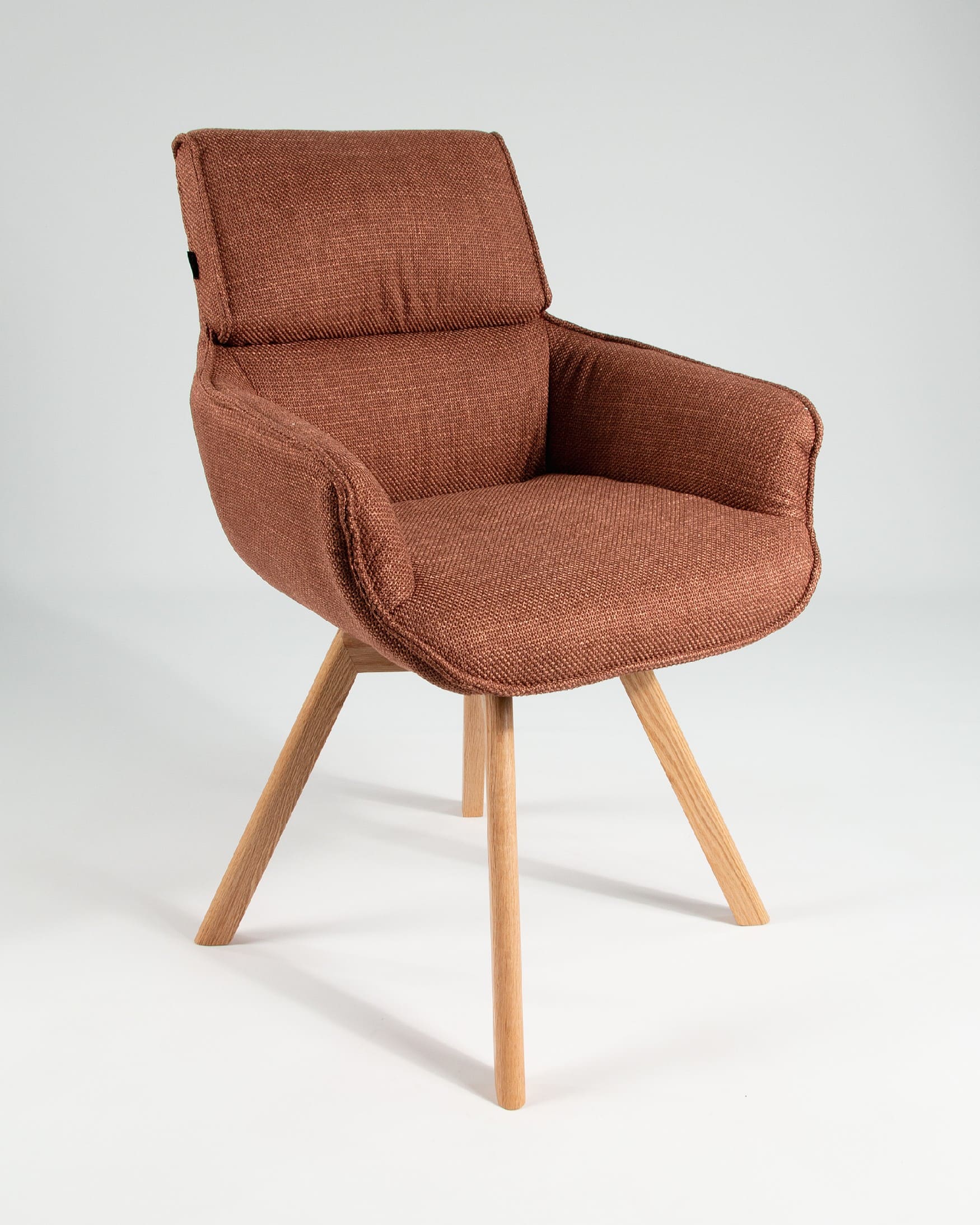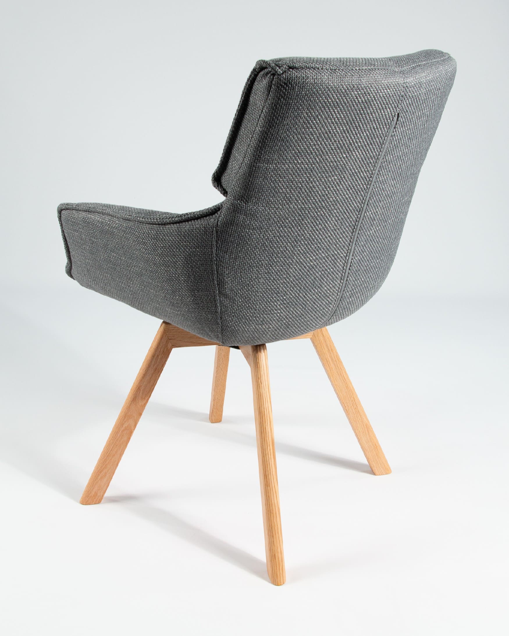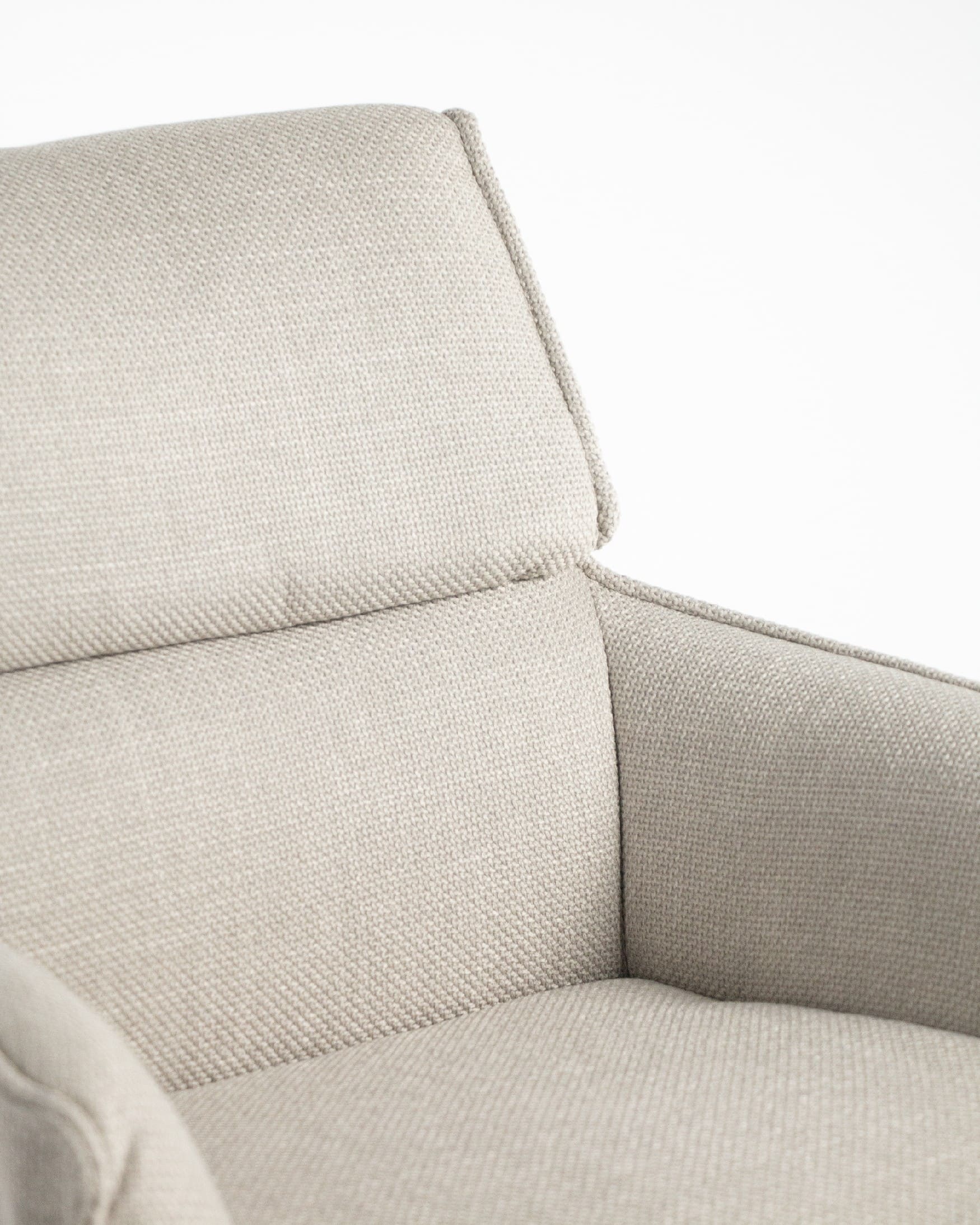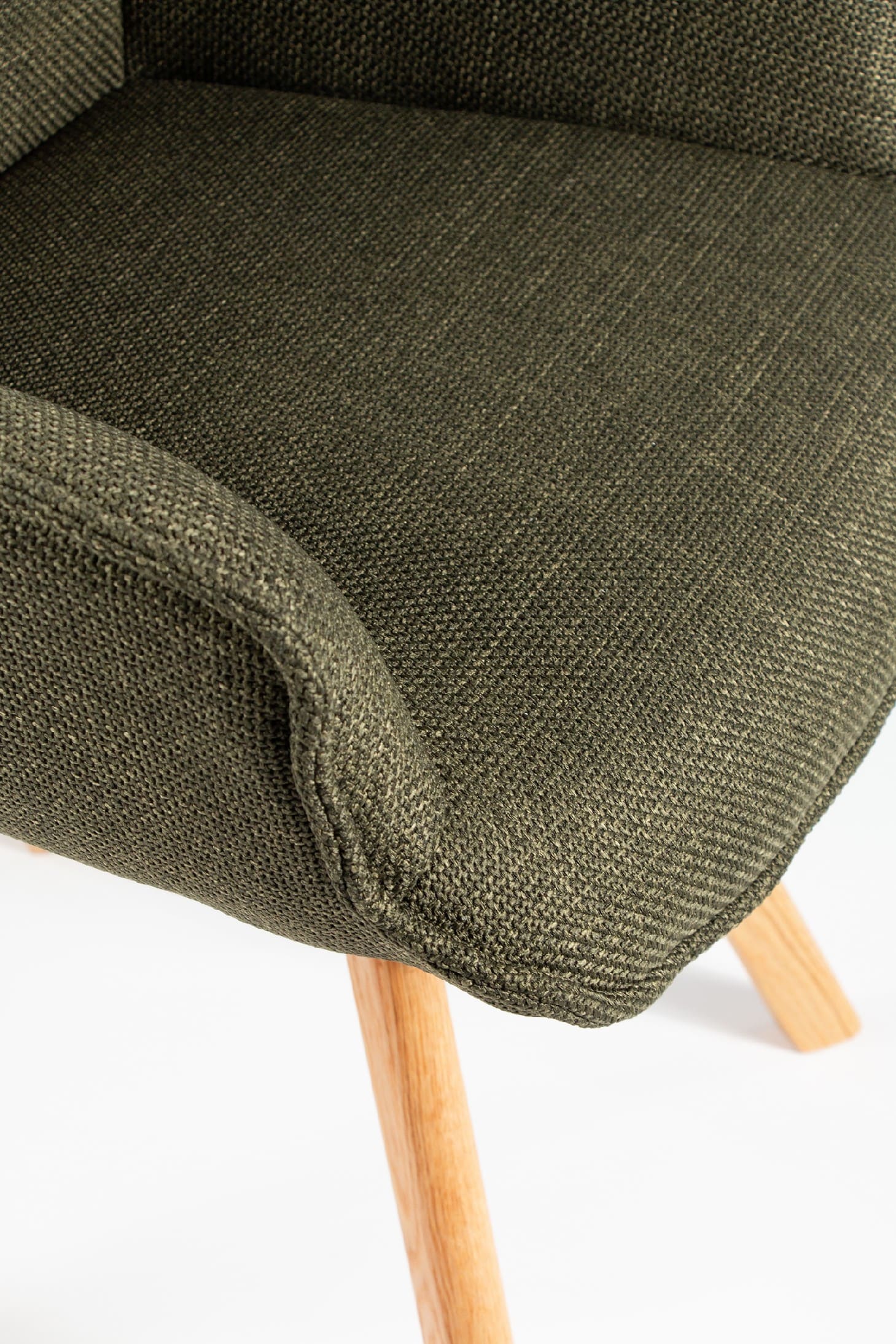 El asiento y el respaldo están tapizados en un tejido 100% poliéster, con un peso de 360 g/m². Este material es robusto, resistente y no elástico, con una superficie ligeramente brillante y estructurada, ofreciendo un tacto sólido y estable. Además, cuenta con certificaciones de calidad ECO y OEKO-TEX®️ STANDARD 100, garantizando su seguridad y sostenibilidad.