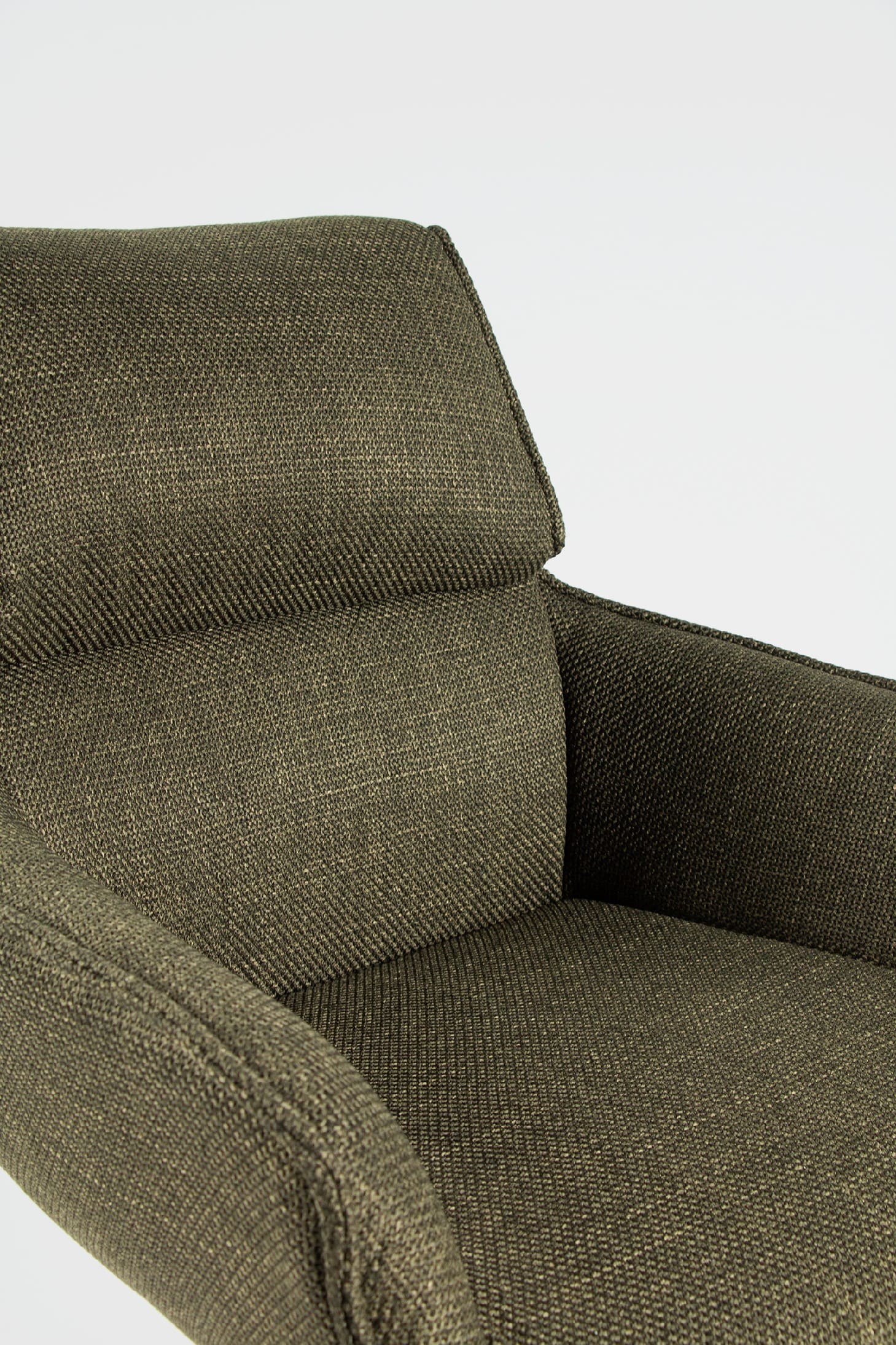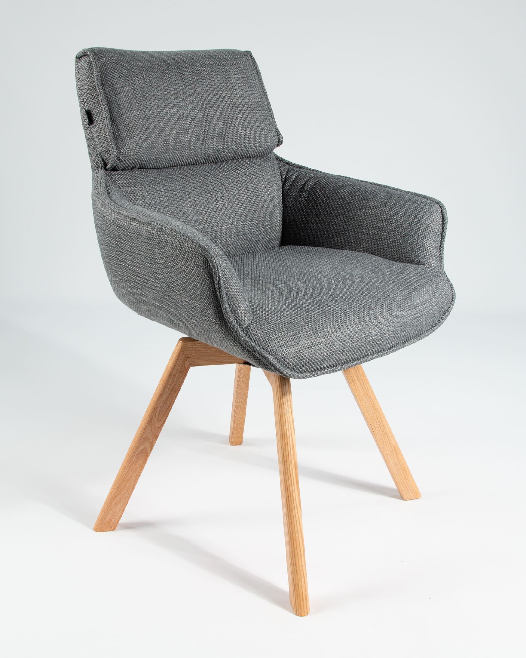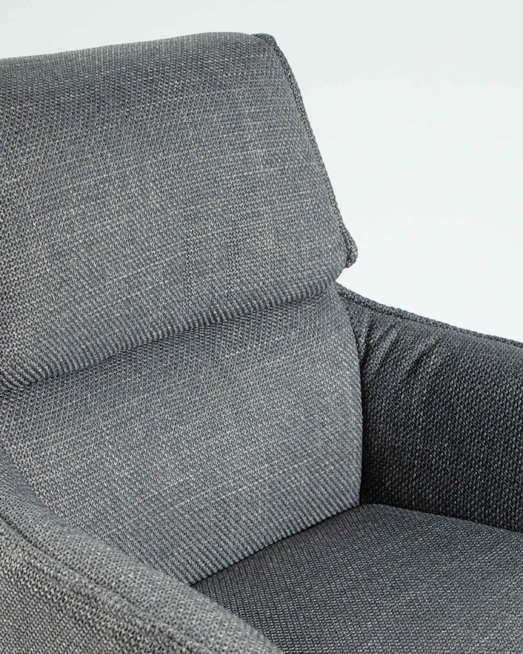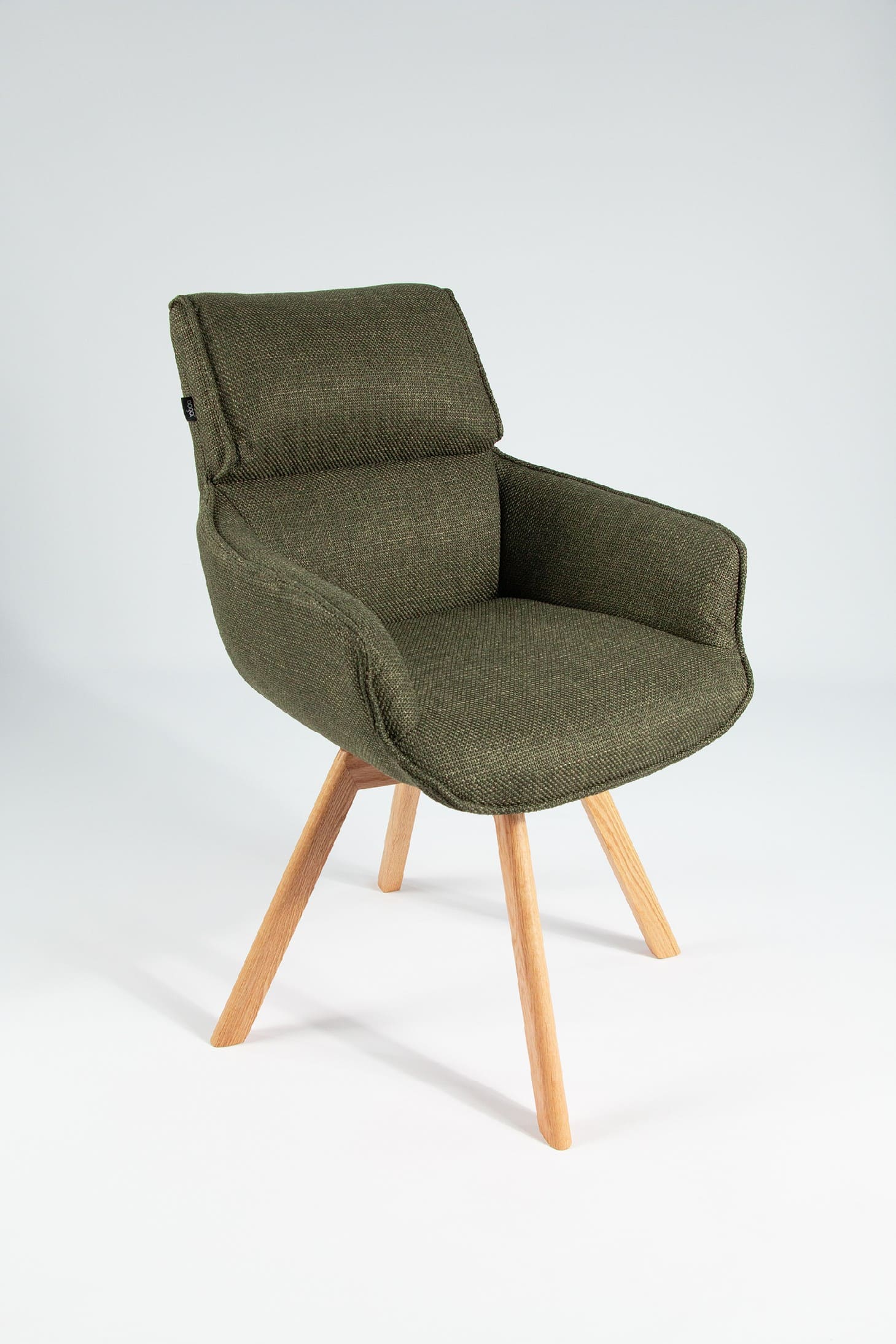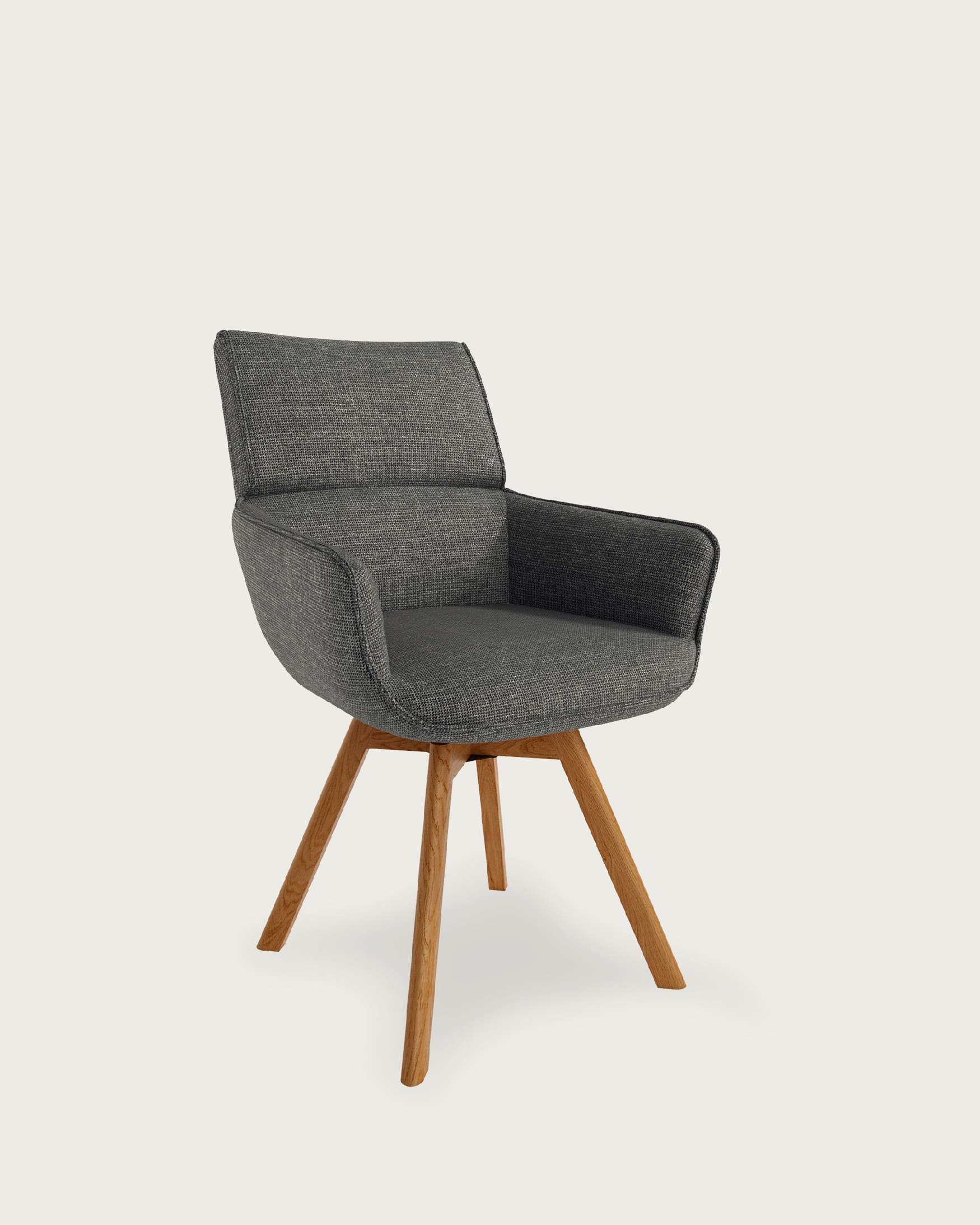 El asiento y el respaldo están tapizados en un tejido 100% poliéster, con un peso de 360 g/m². Este material es robusto, resistente y no elástico, con una superficie ligeramente brillante y estructurada, ofreciendo un tacto sólido y estable. Además, cuenta con certificaciones de calidad ECO y OEKO-TEX®️ STANDARD 100, garantizando su seguridad y sostenibilidad.