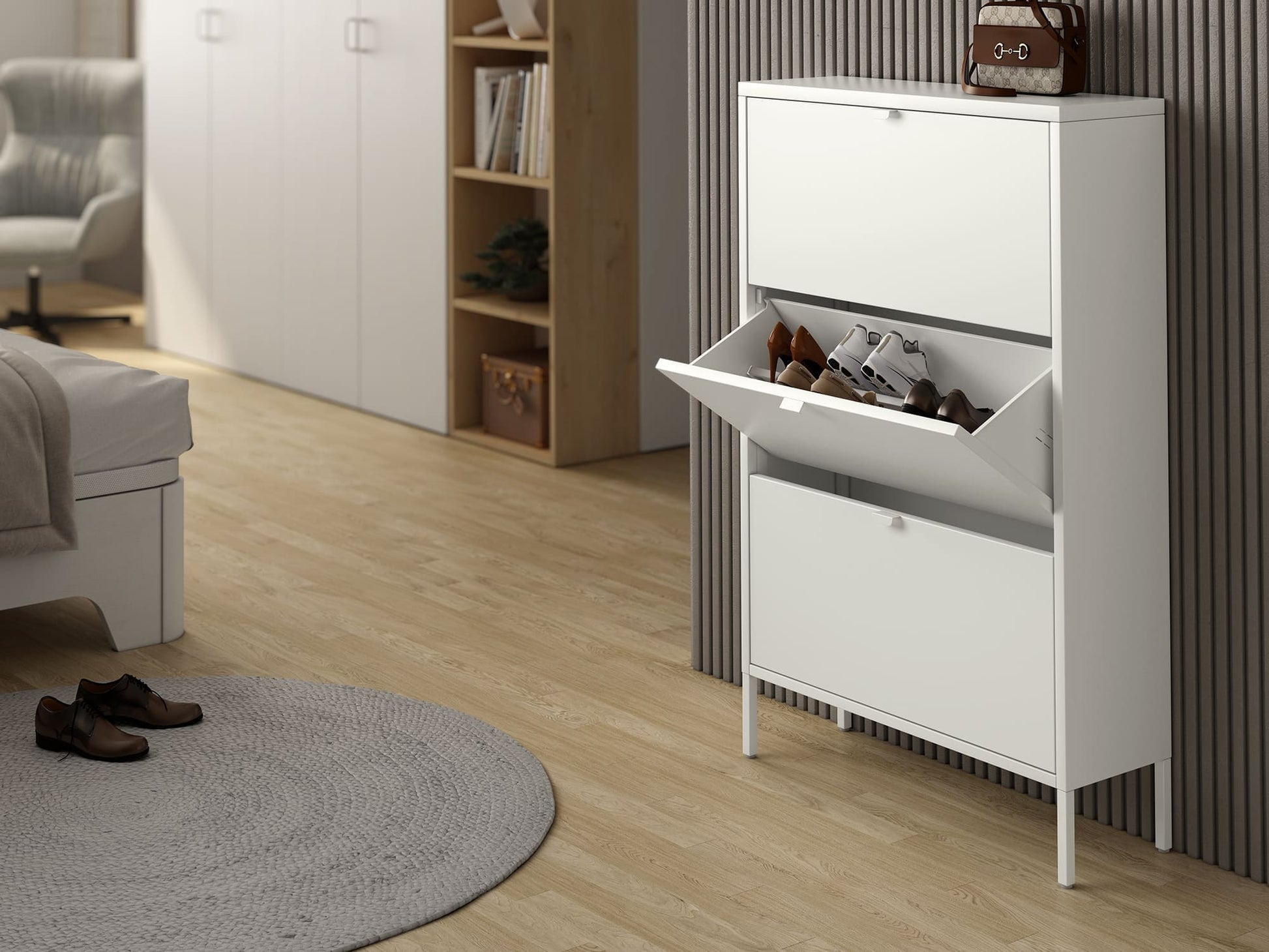 El zapatero TORROX de 3 puertas es ideal para hogares que necesitan una solución eficiente y estilizada para el almacenamiento diario de calzado.